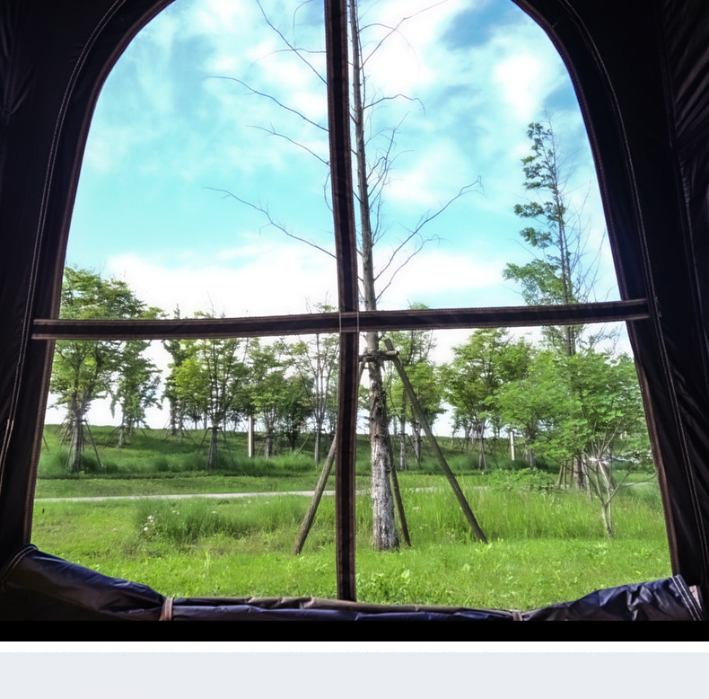 • 라이트 베이지 천장부터 바닥까지 내려 오는 창문 검은 고무 육각형 텐트 캐노피