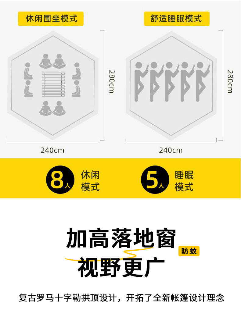 • 2.8*2.4*1.55 m 큰 (4-6 명)
