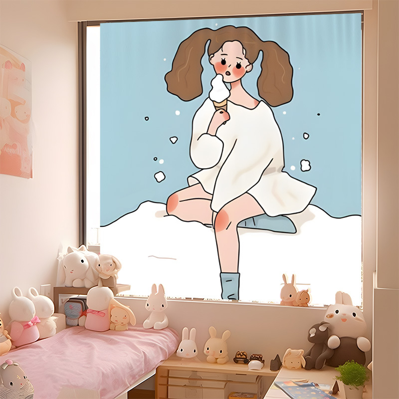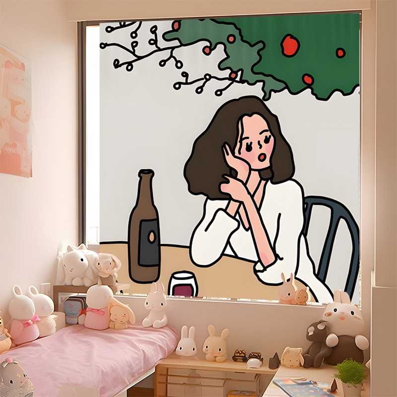 한국식 Ins 스타일 벨크로 커튼 원단 비 천공 짧은 커튼 작은 짧은 커튼 간단한 붙여 넣기 그늘 옷감