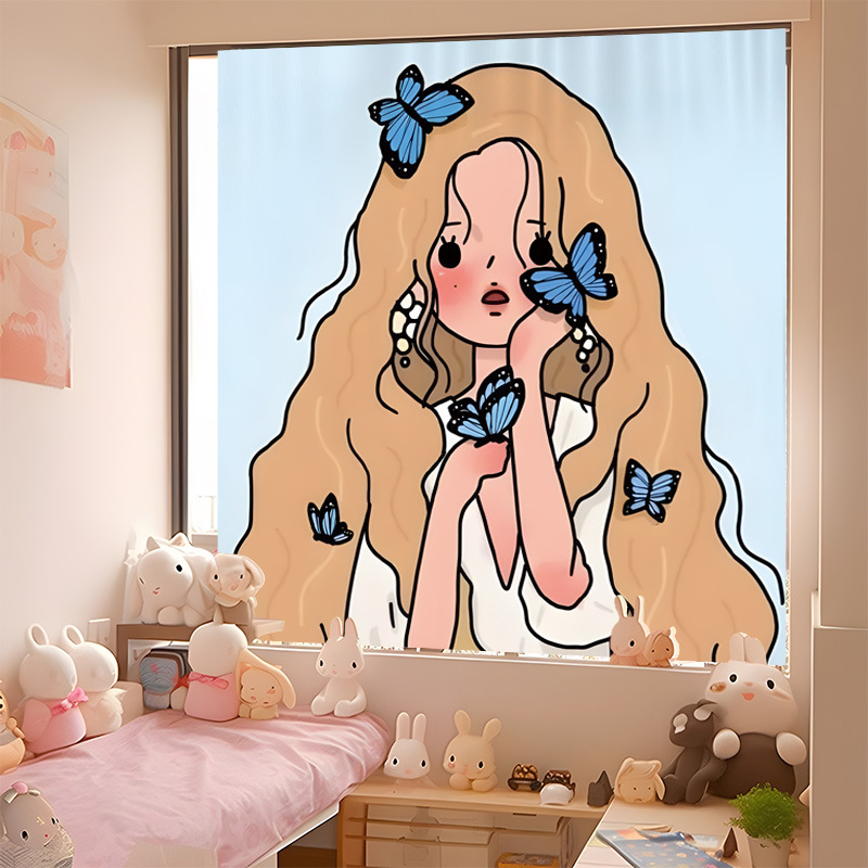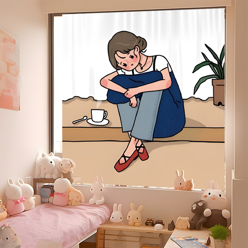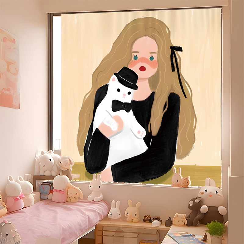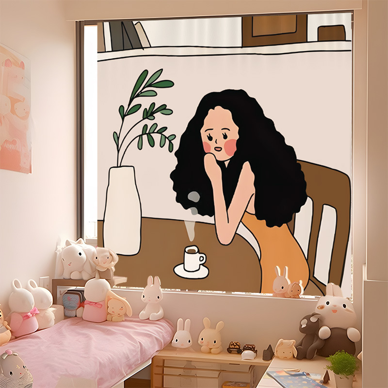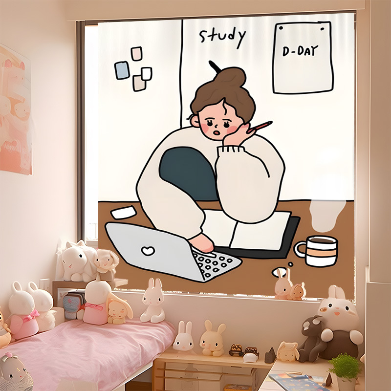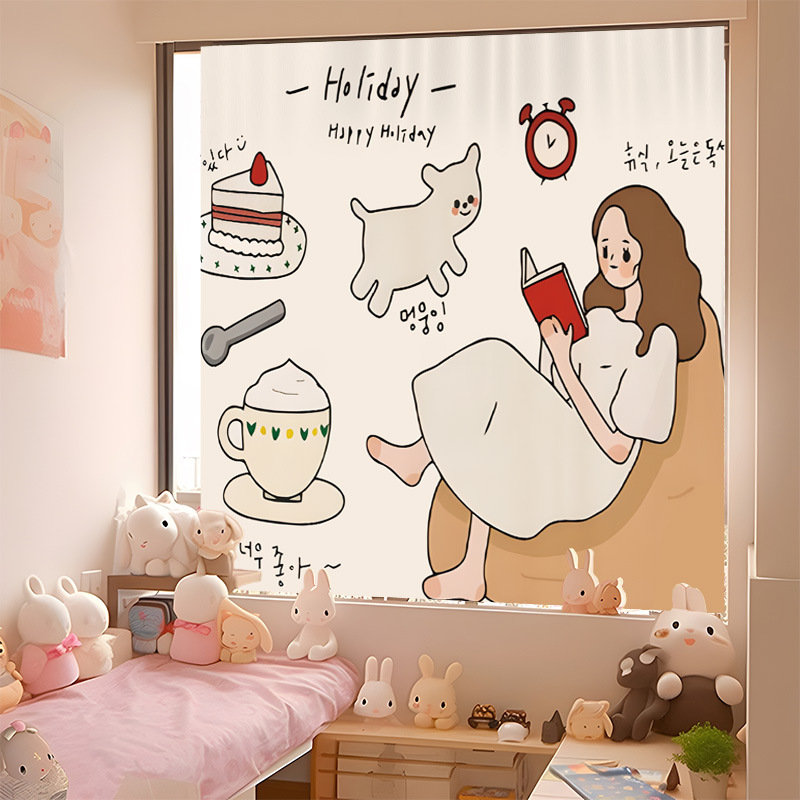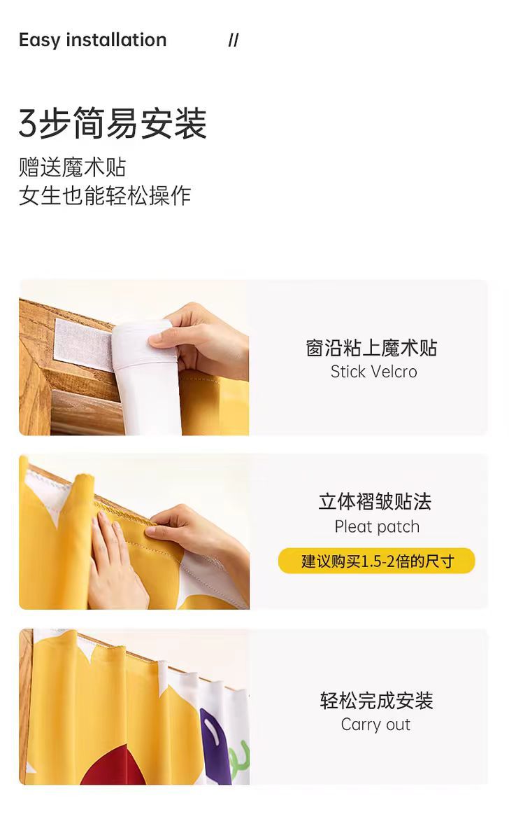 한국식 Ins 스타일 벨크로 커튼 원단 비 천공 짧은 커튼 작은 짧은 커튼 간단한 붙여 넣기 그늘 옷감스토어 가기