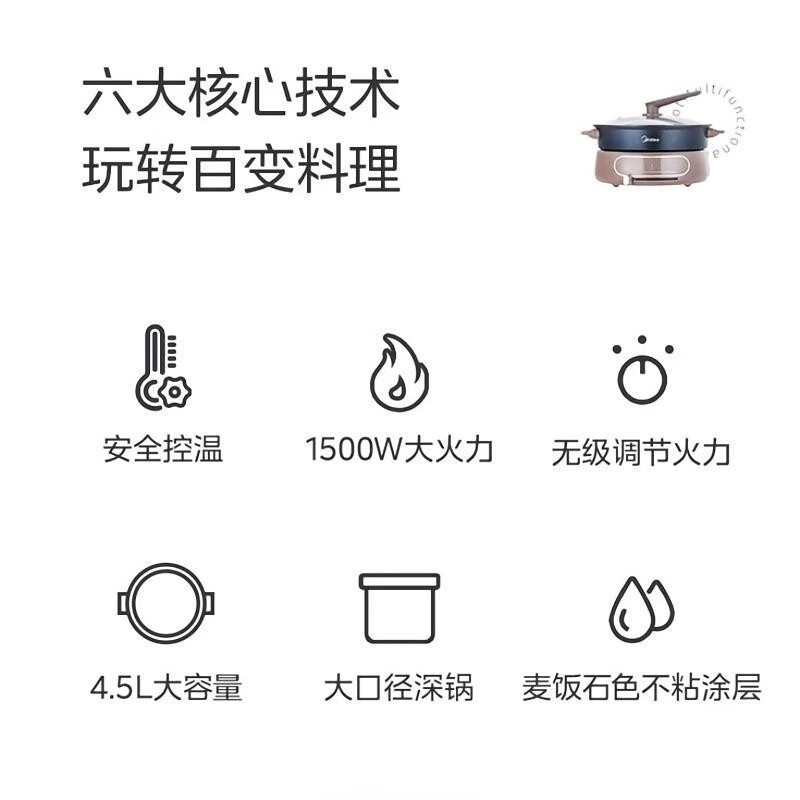 Midea DHE30H4 전기 뜨거운 냄비 다기능 가정용 4.5L 전기 요리 냄비 대용량 분할 전기 뜨거운 냄비