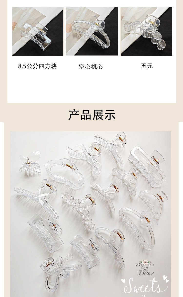 투명한 머리핀, 중대형 사이즈, 머리카락이 많이 나는 사람들을 위한 샤크클립, 뒷머리 묶음용 헤어 액세서리, 다양한 색상, 모발 손상 없음