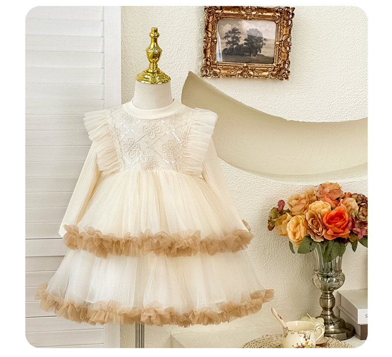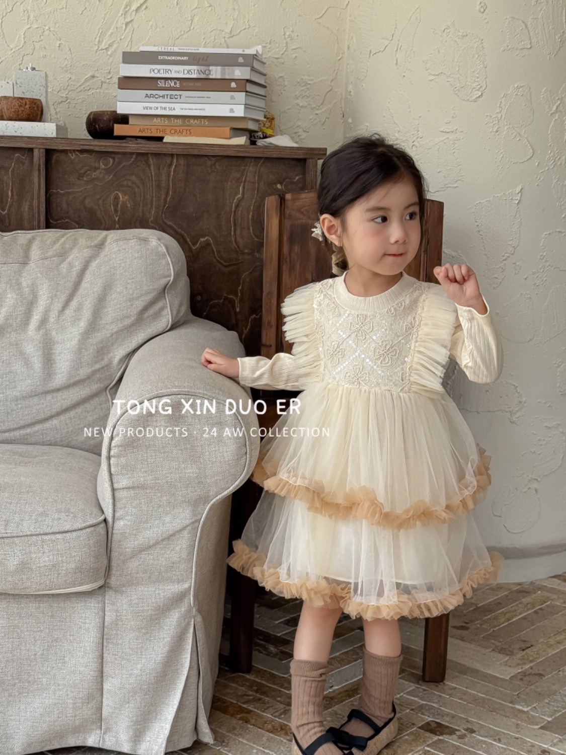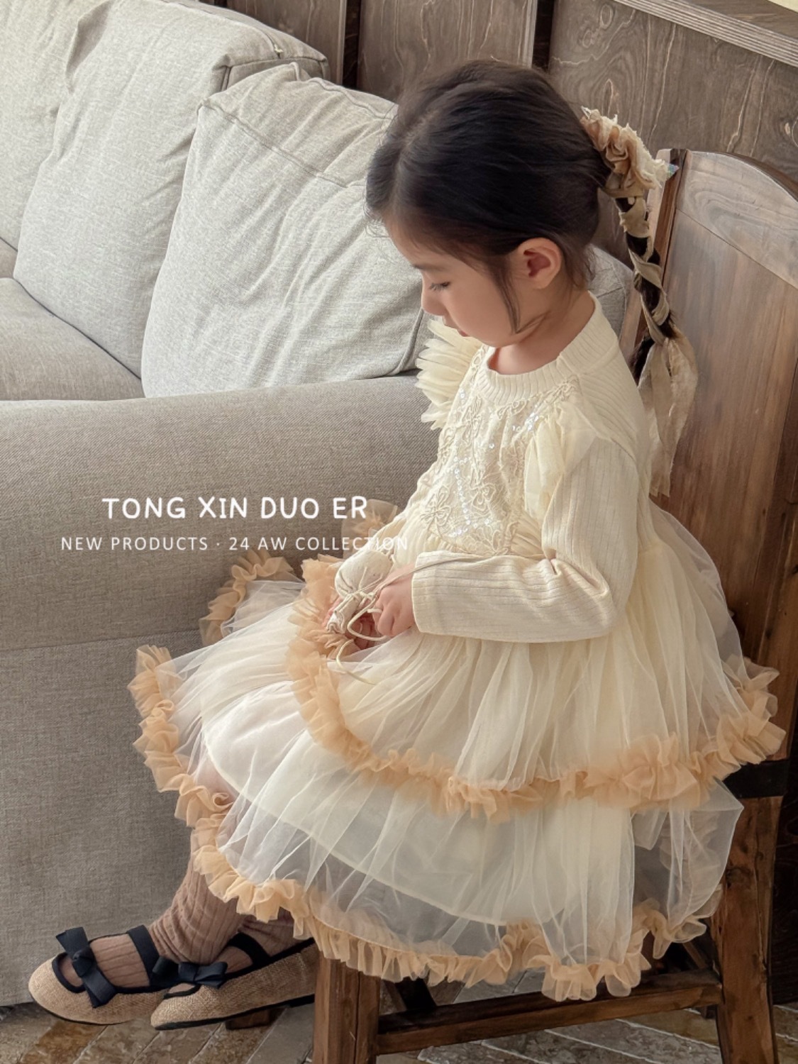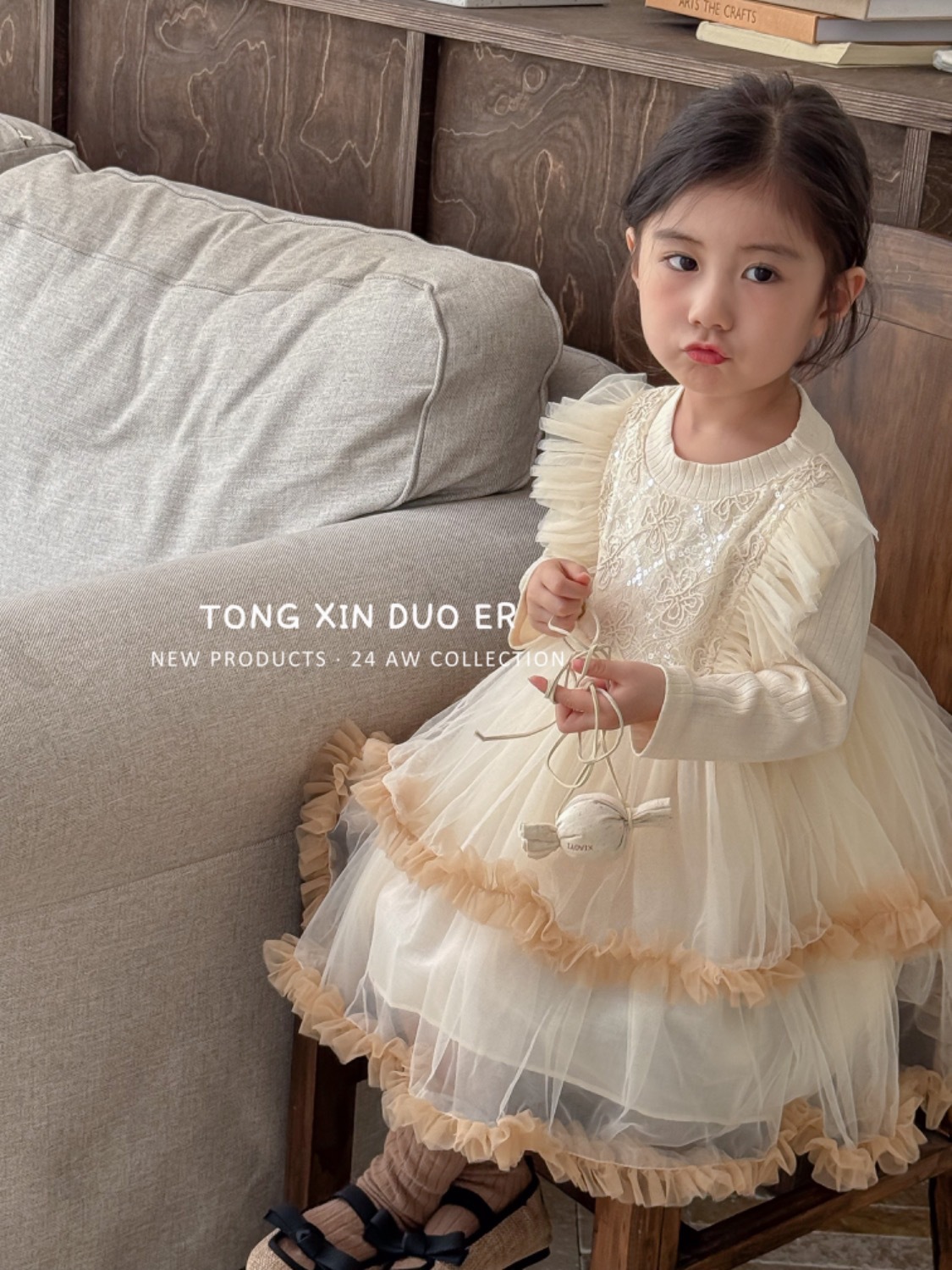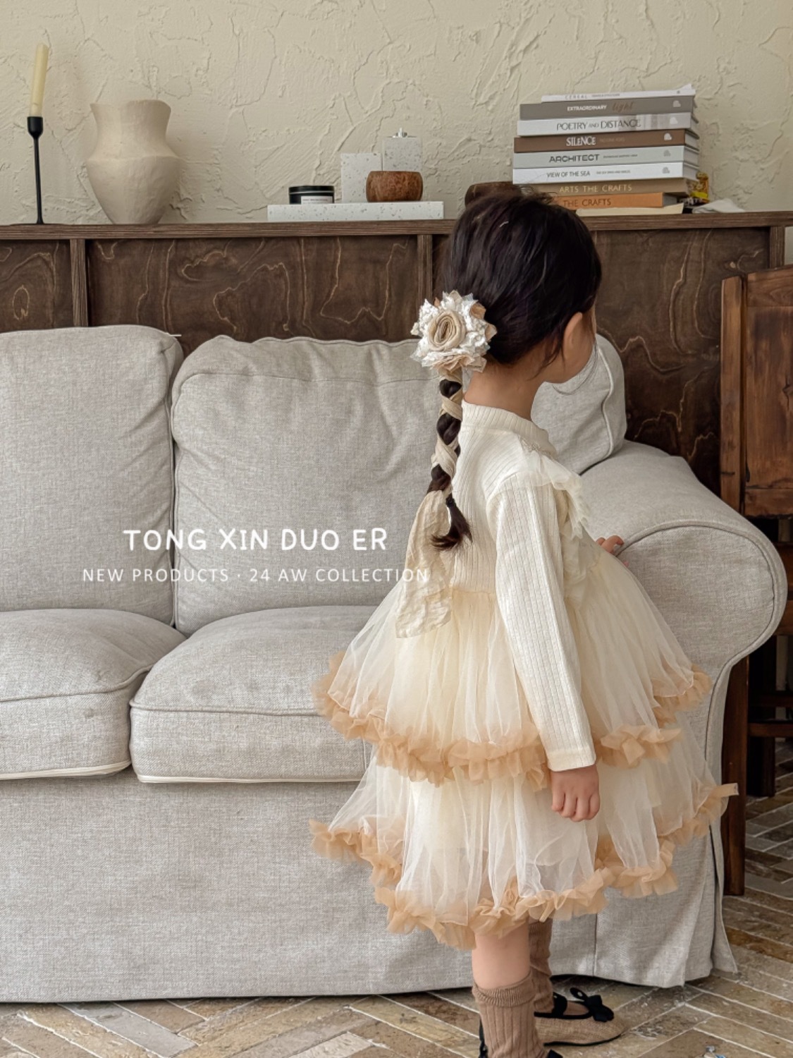 여자 드레스 2025 가을 새로운 부드러운 요정 스타일 아기 소녀 투투 스커트 손으로 수 놓은 소녀 투투 스커트스토어 가기