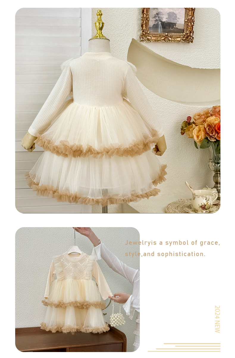 여자 드레스 2025 가을 새로운 부드러운 요정 스타일 아기 소녀 투투 스커트 손으로 수 놓은 소녀 투투 스커트