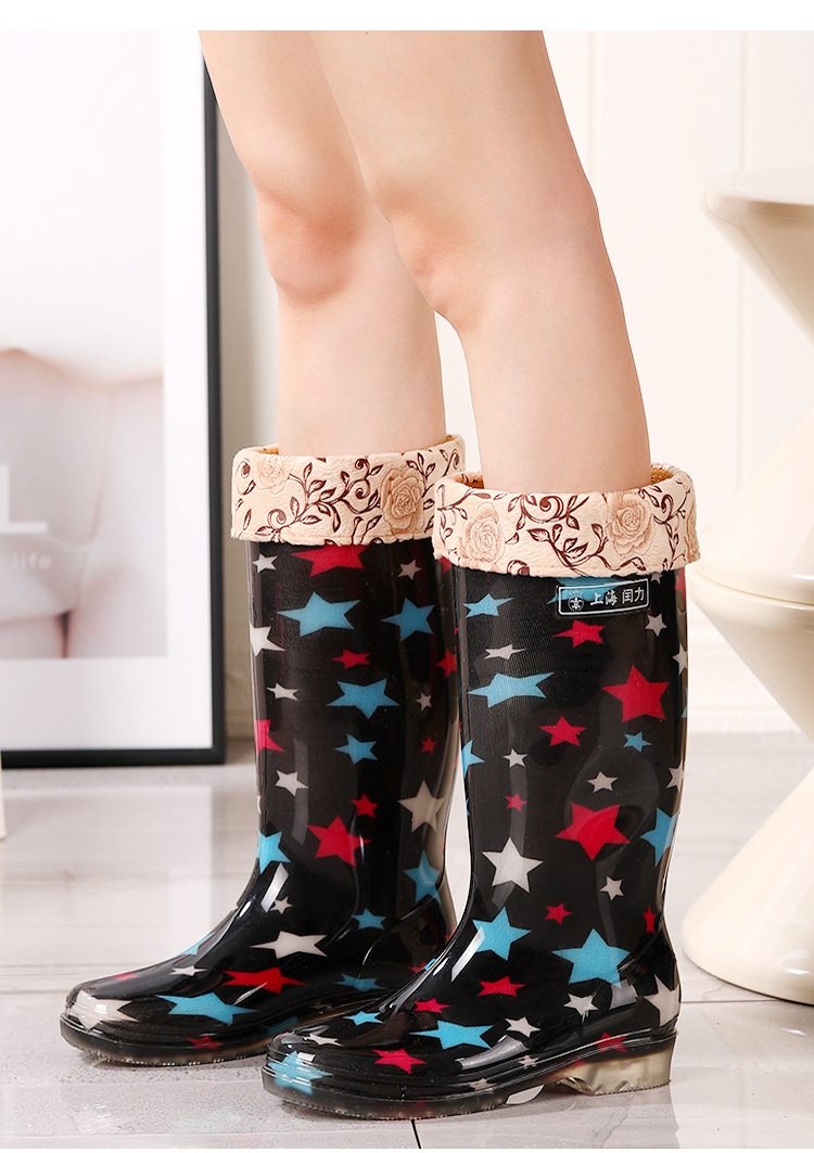높은 패션 물 신발 비 신발 여성 성인 비 부츠 여성의 긴 튜브 방수 신발 주방 미끄럼 방지 고무 신발 세차스토어 가기