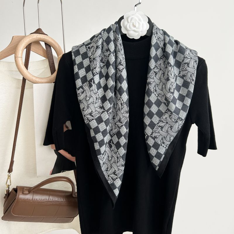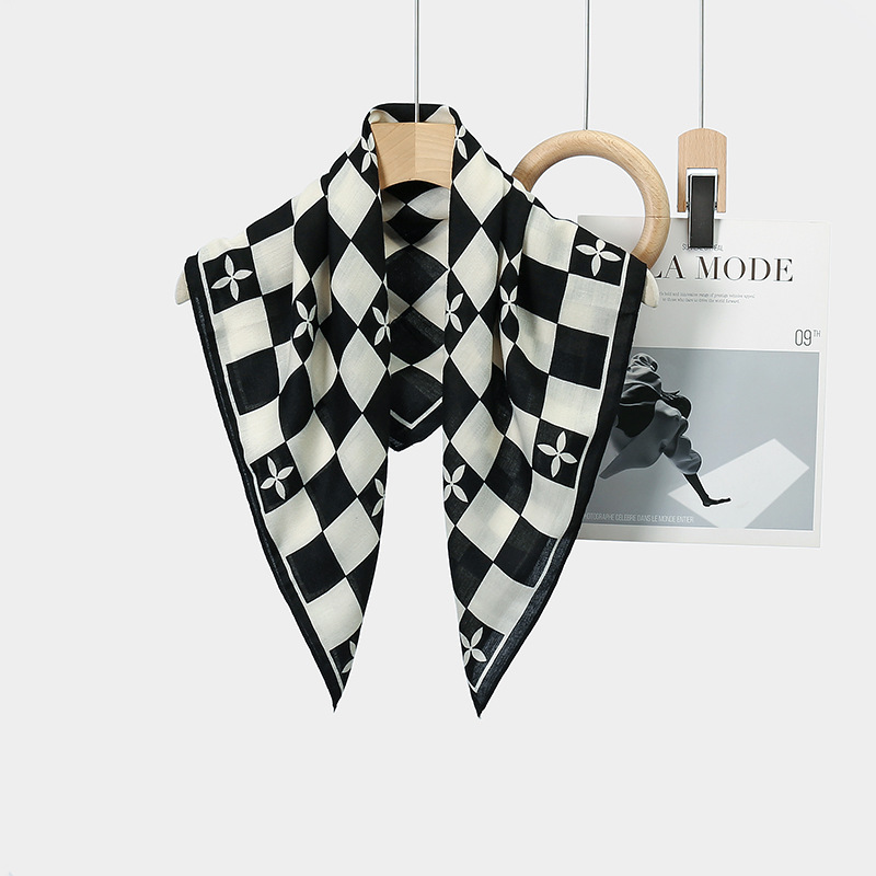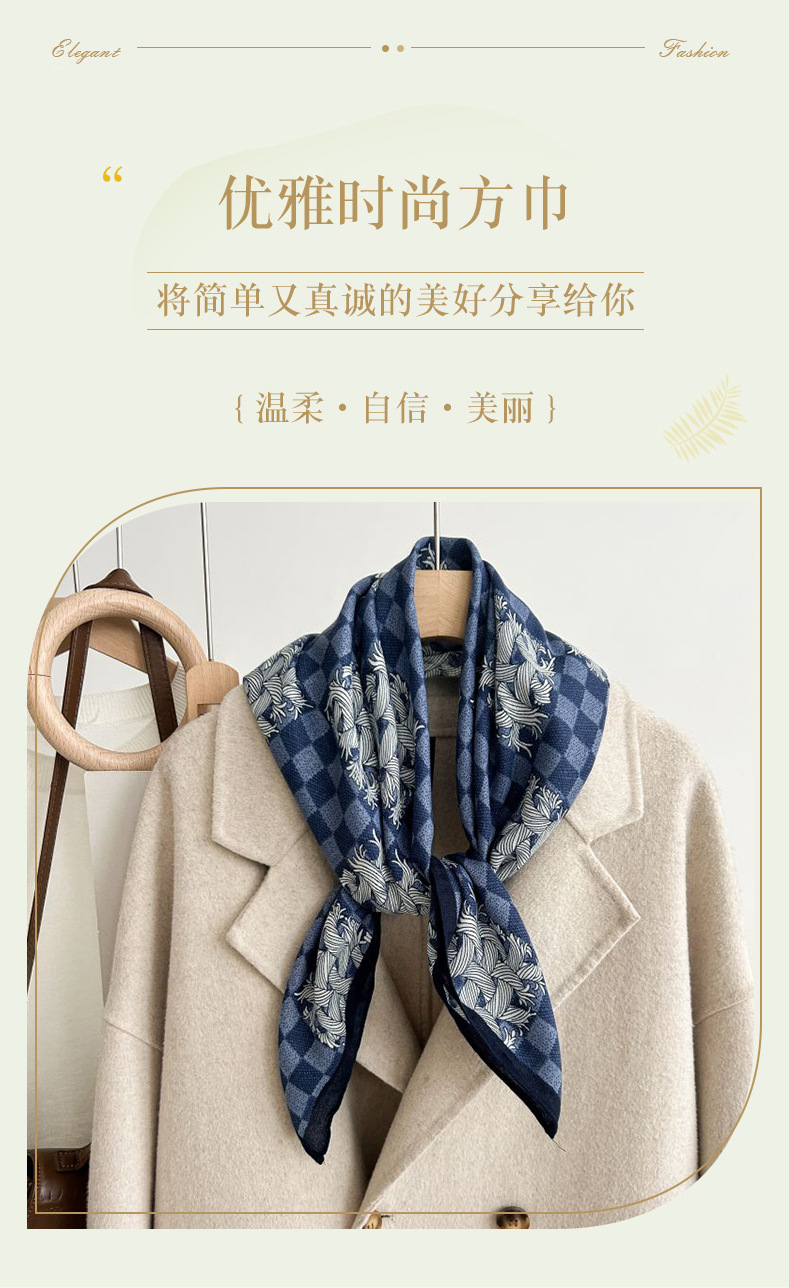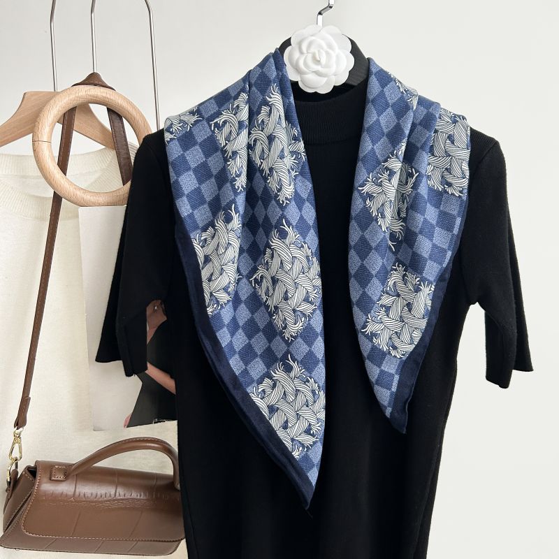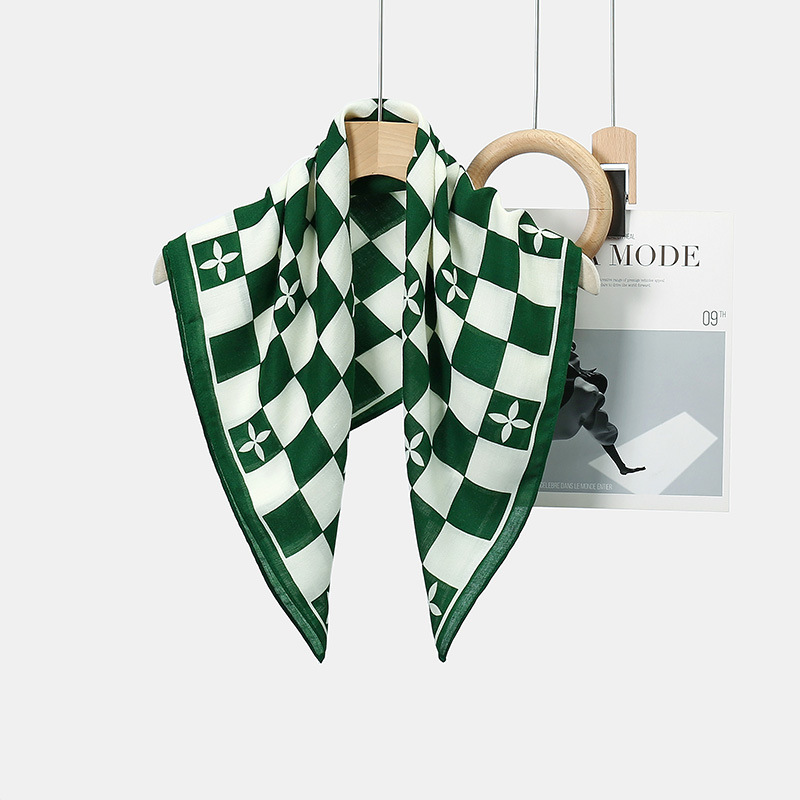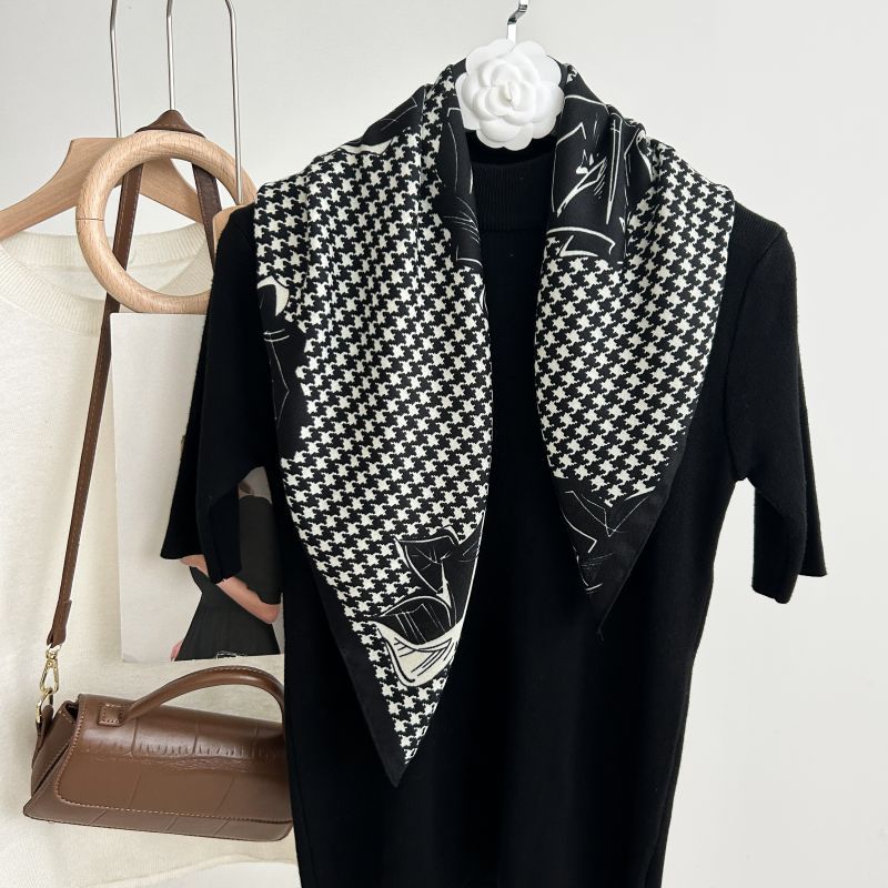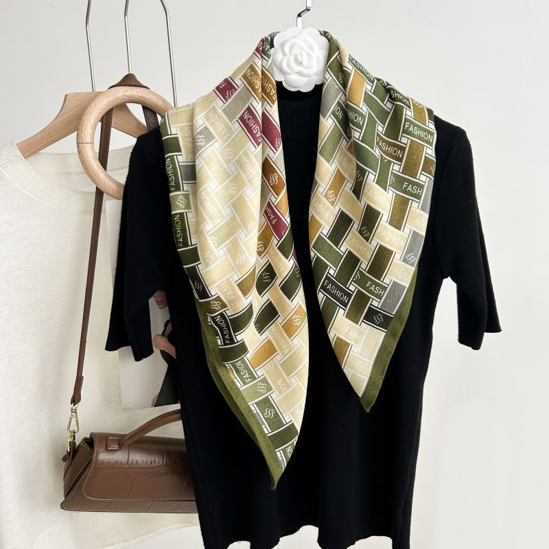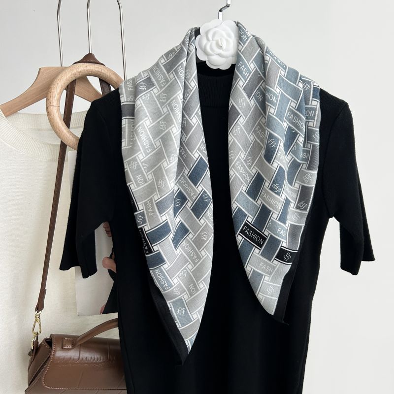 뜨거운 판매 새로운 패션 큰 브랜드 가벼운 고급 스타일 바둑판 인쇄 실크 울 질감 65*65 여성 장식 작은 실크 스카프스토어 가기