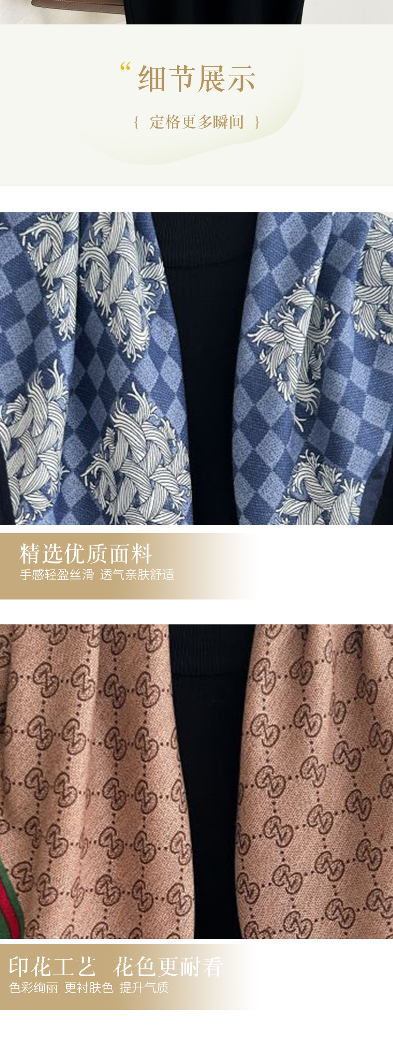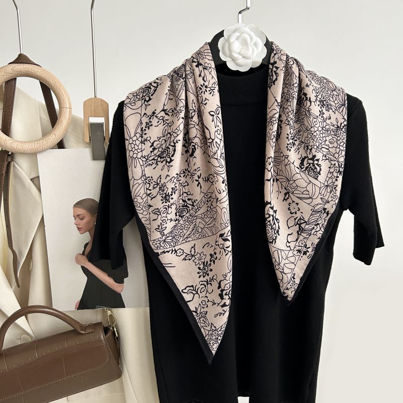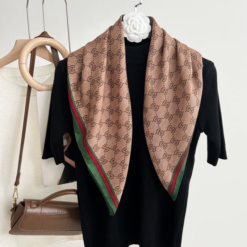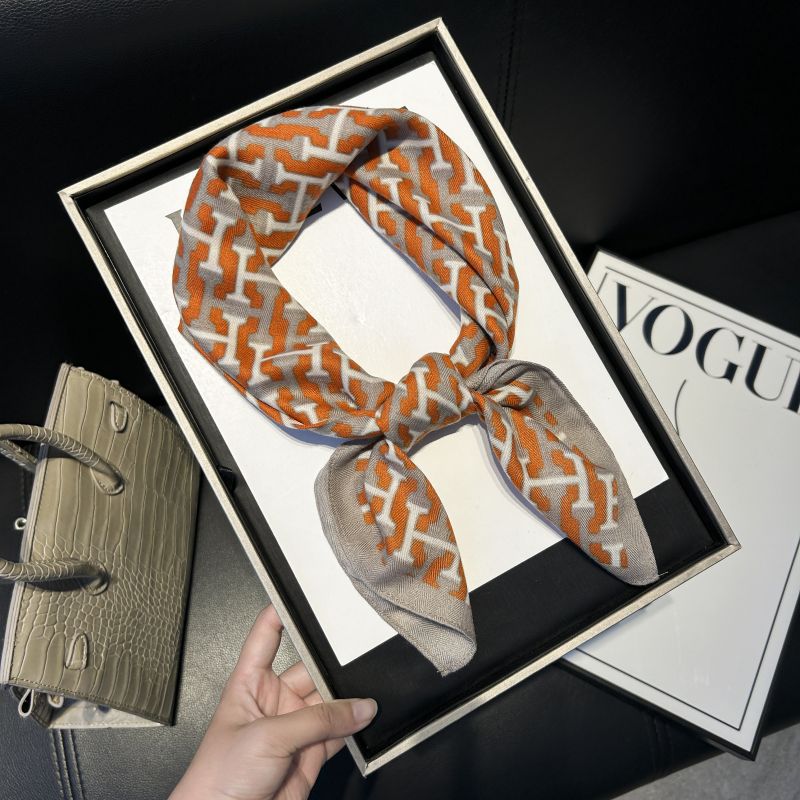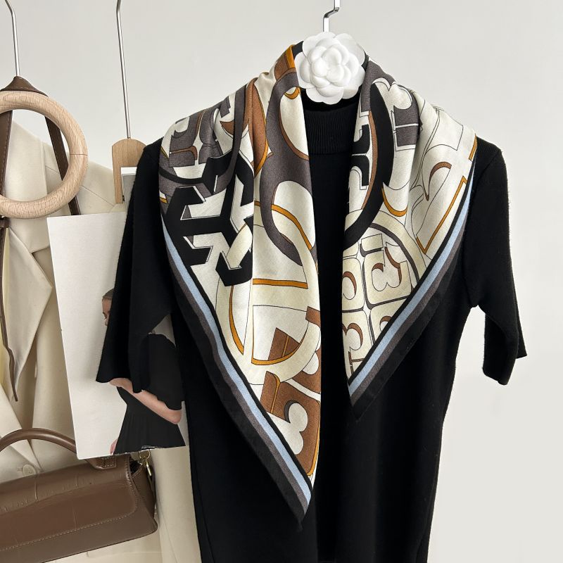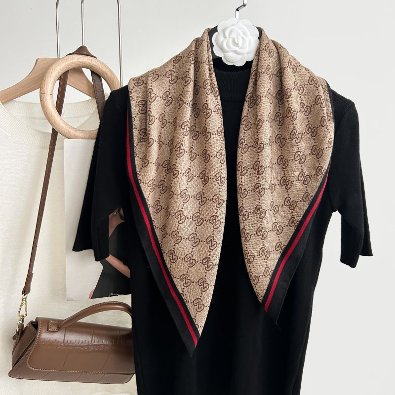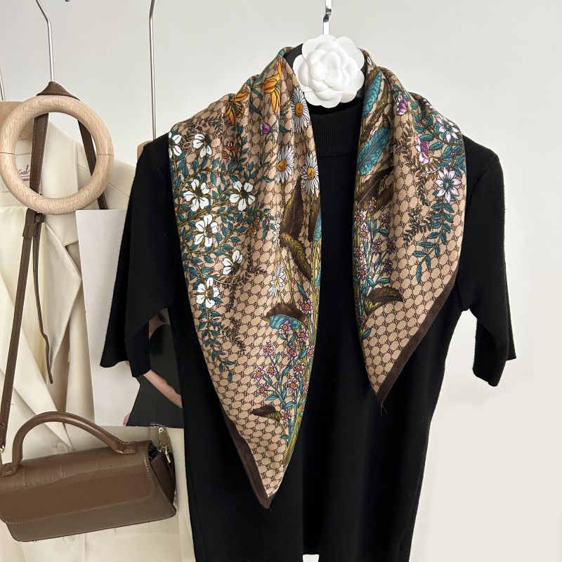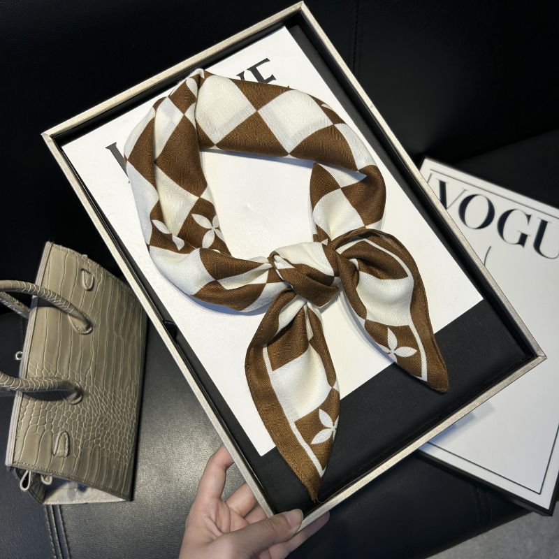 뜨거운 판매 새로운 패션 큰 브랜드 가벼운 고급 스타일 바둑판 인쇄 실크 울 질감 65*65 여성 장식 작은 실크 스카프스토어 가기