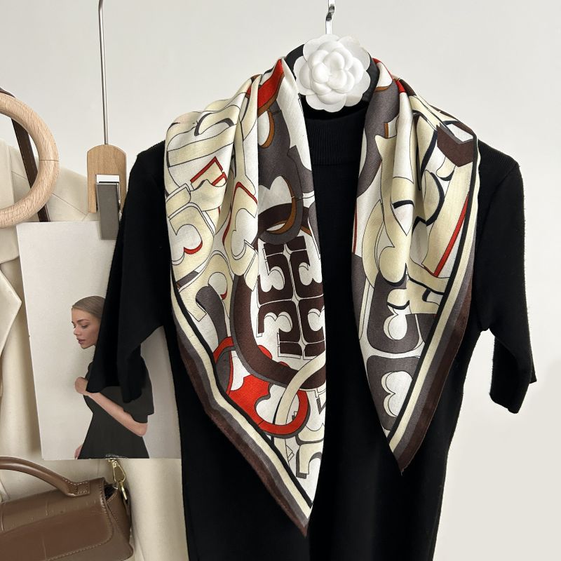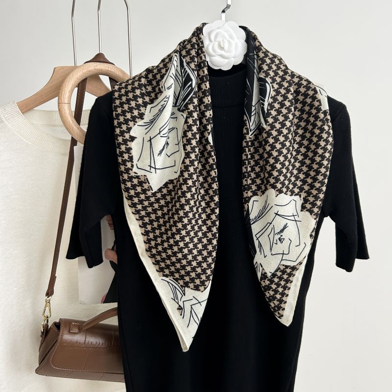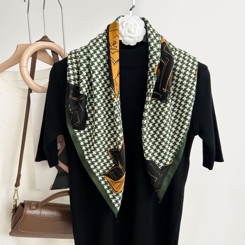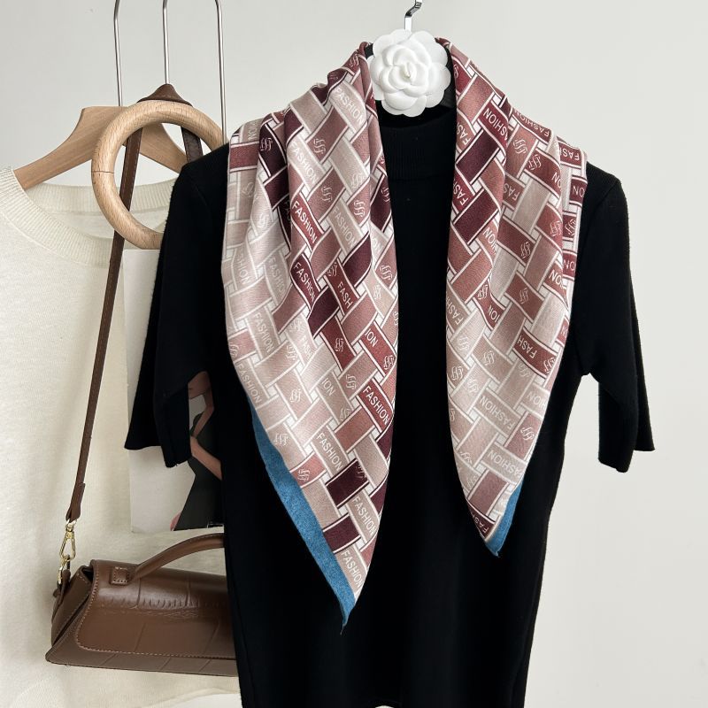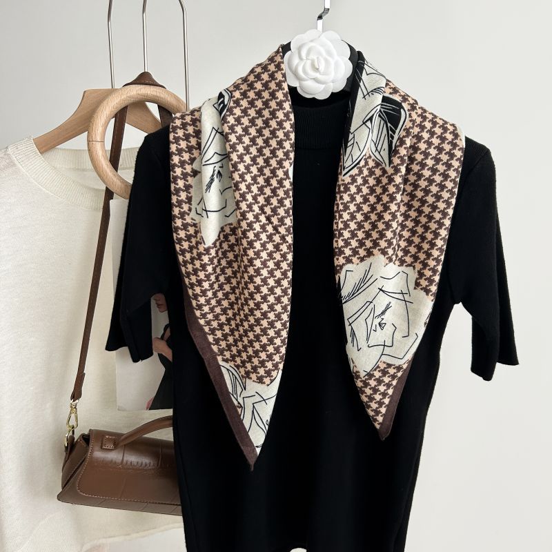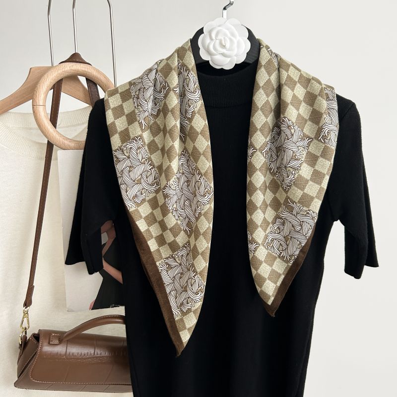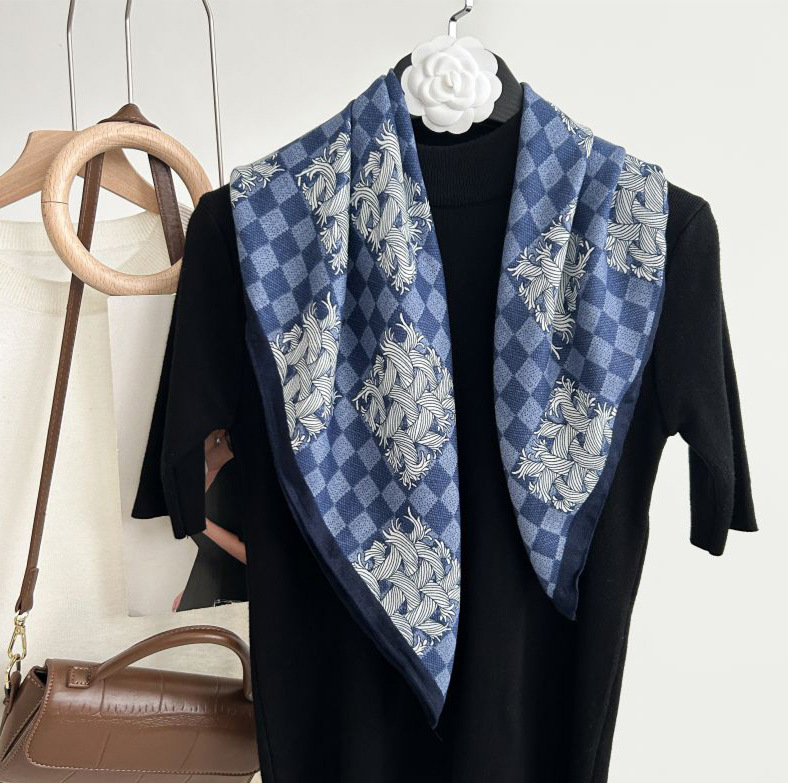 뜨거운 판매 새로운 패션 큰 브랜드 가벼운 고급 스타일 바둑판 인쇄 실크 울 질감 65*65 여성 장식 작은 실크 스카프