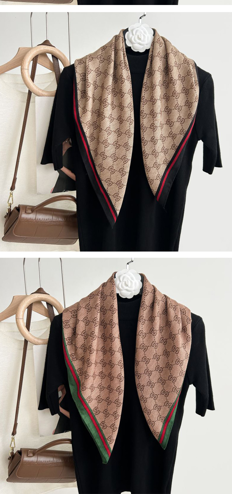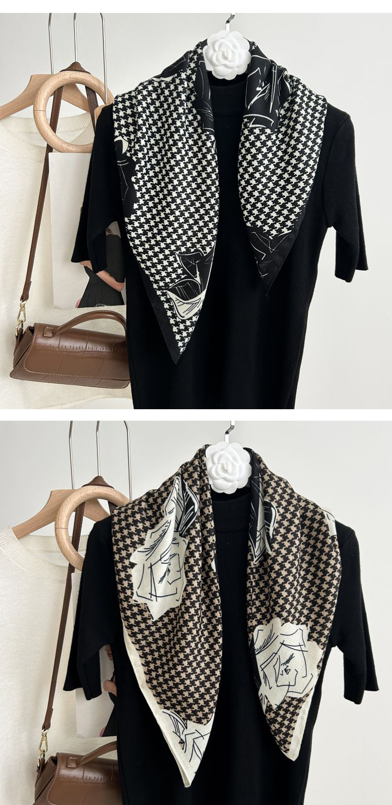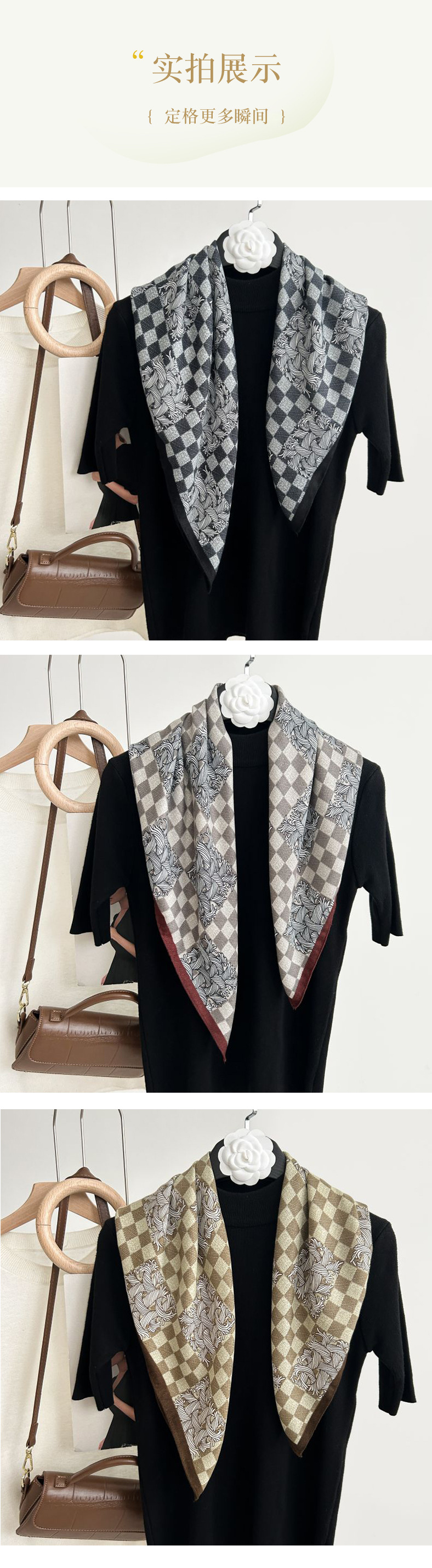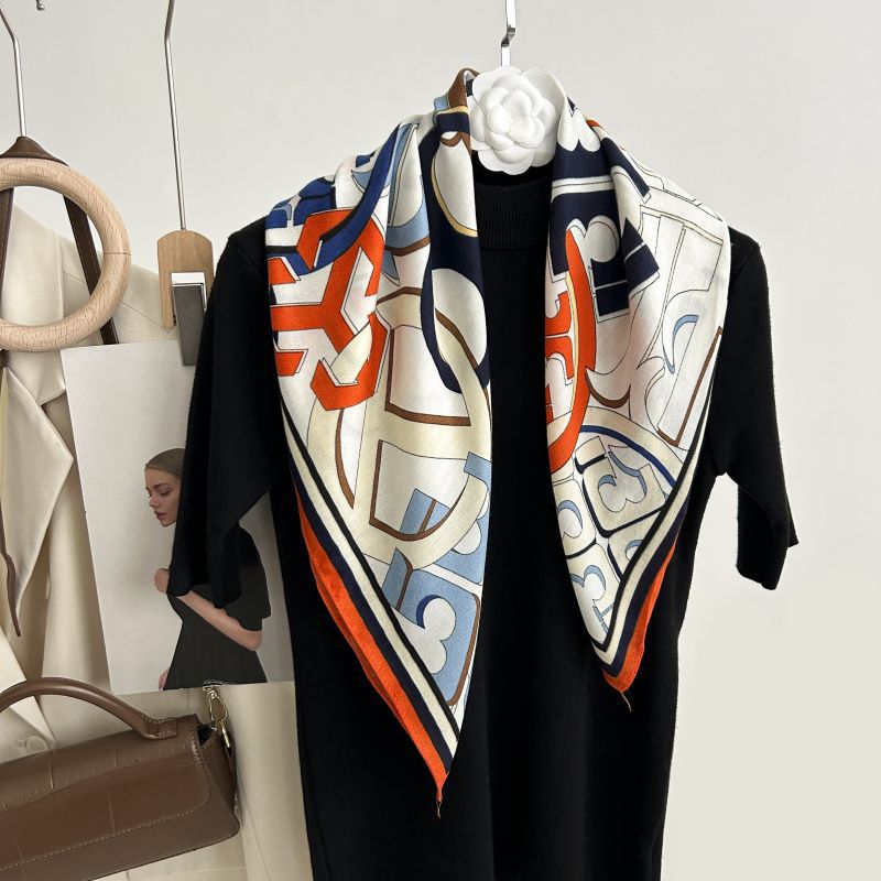 뜨거운 판매 새로운 패션 큰 브랜드 가벼운 고급 스타일 바둑판 인쇄 실크 울 질감 65*65 여성 장식 작은 실크 스카프