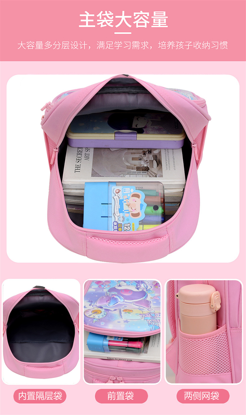 트렌디 한 새로운 어린이 스쿨백 3D 만화 귀여운 소녀 배낭 초등 학생 1 학년 및 2 학년 배낭