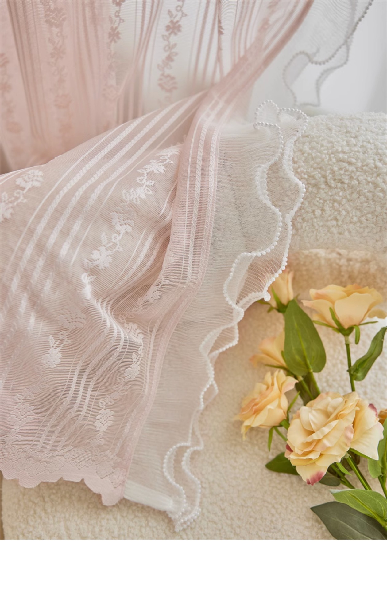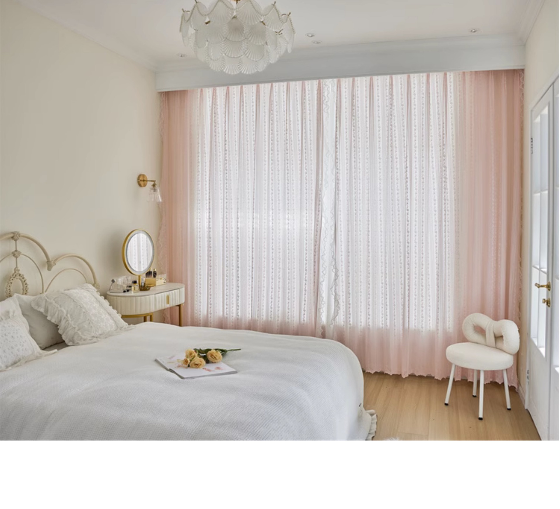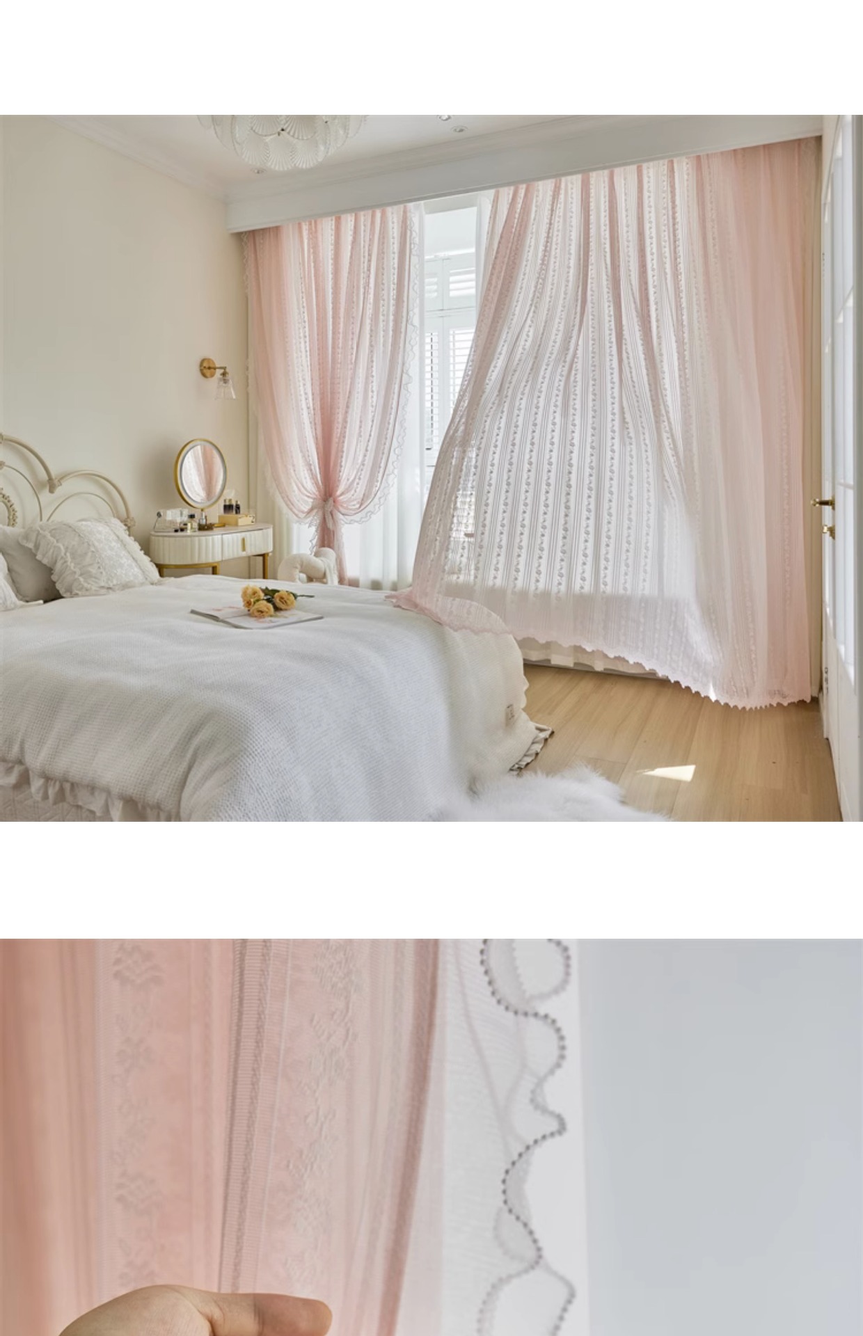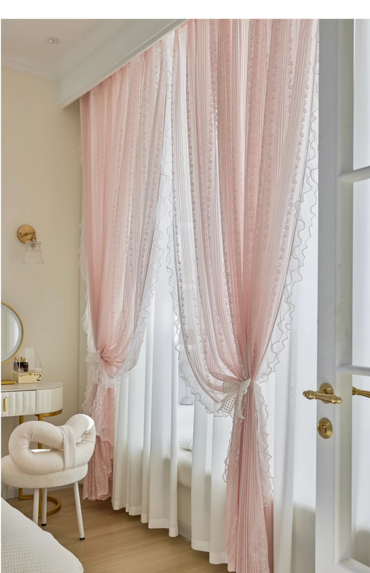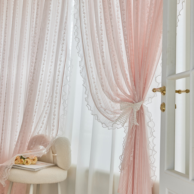 프랑스 소녀 파우더 레이스 창 화면 더블 거즈 커튼 투명 불투명 한 도매 침실 반 음영 공주 바람 신제품