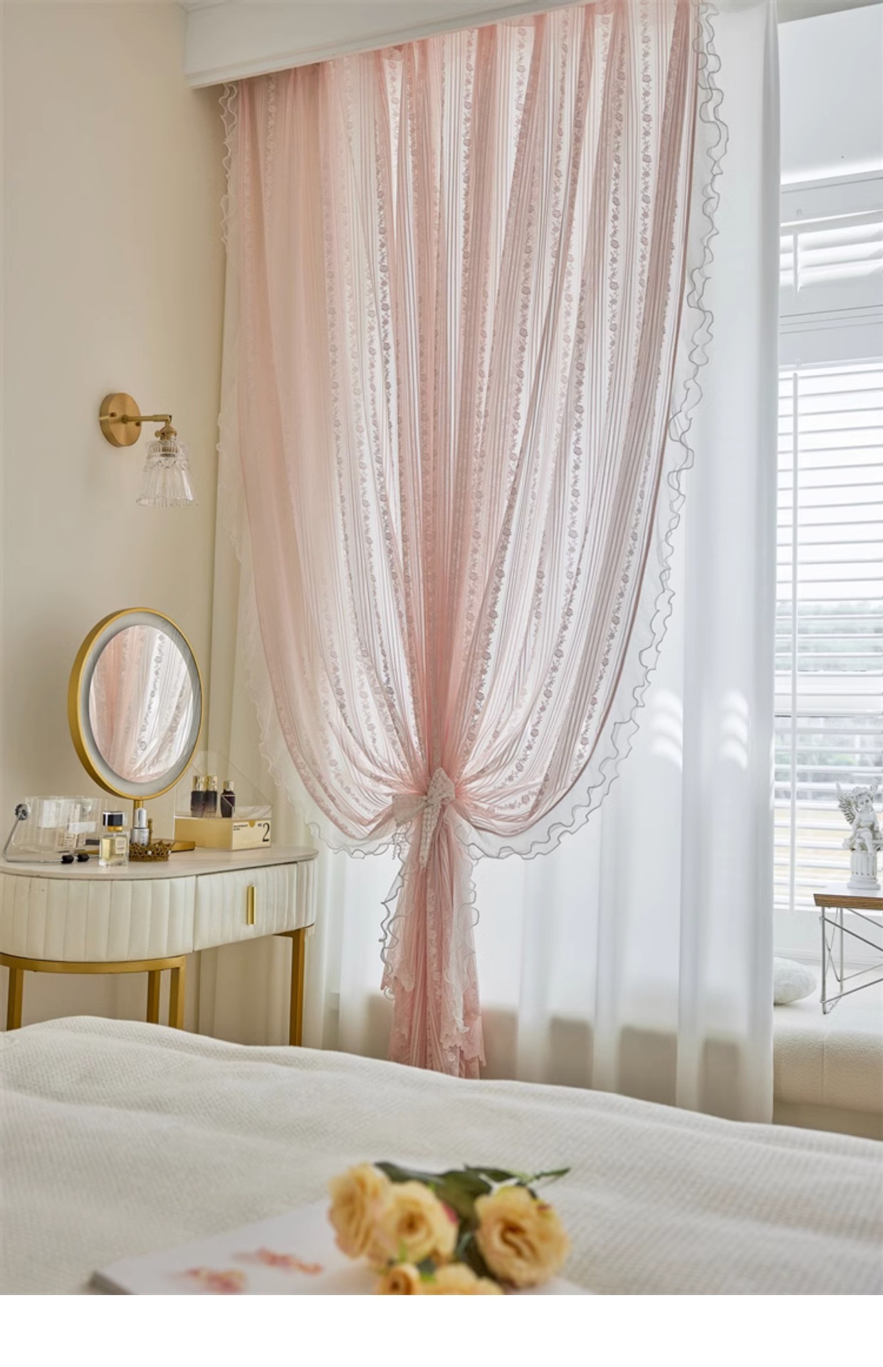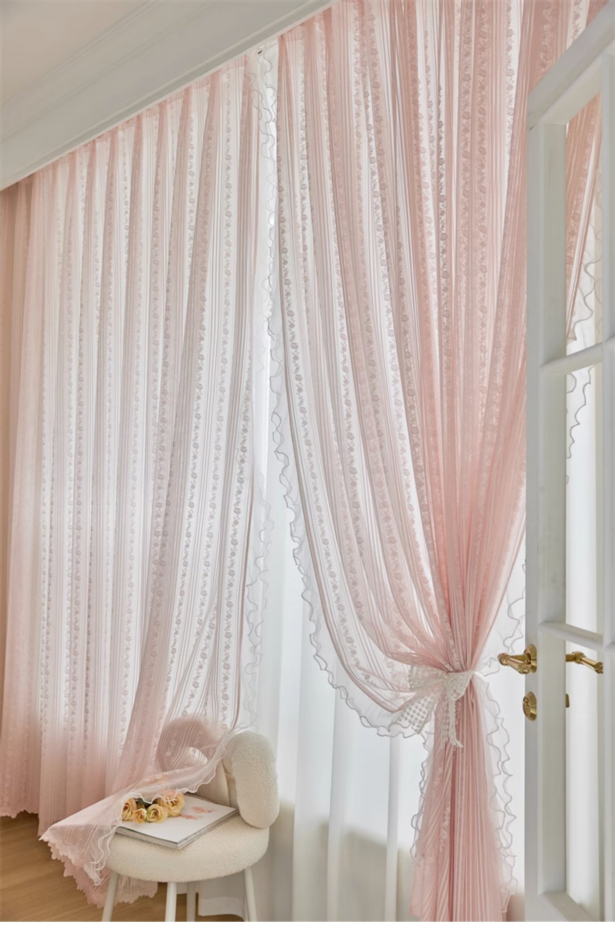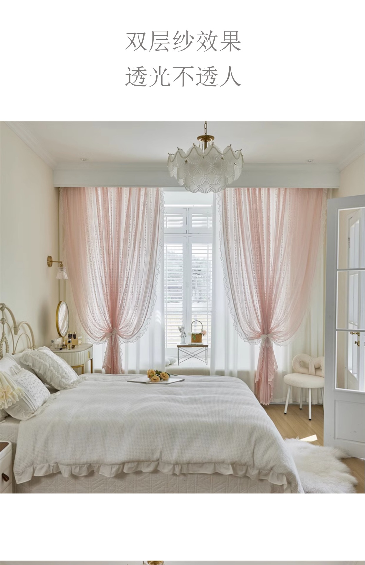 프랑스 소녀 파우더 레이스 창 화면 더블 거즈 커튼 투명 불투명 한 도매 침실 반 음영 공주 바람 신제품스토어 가기