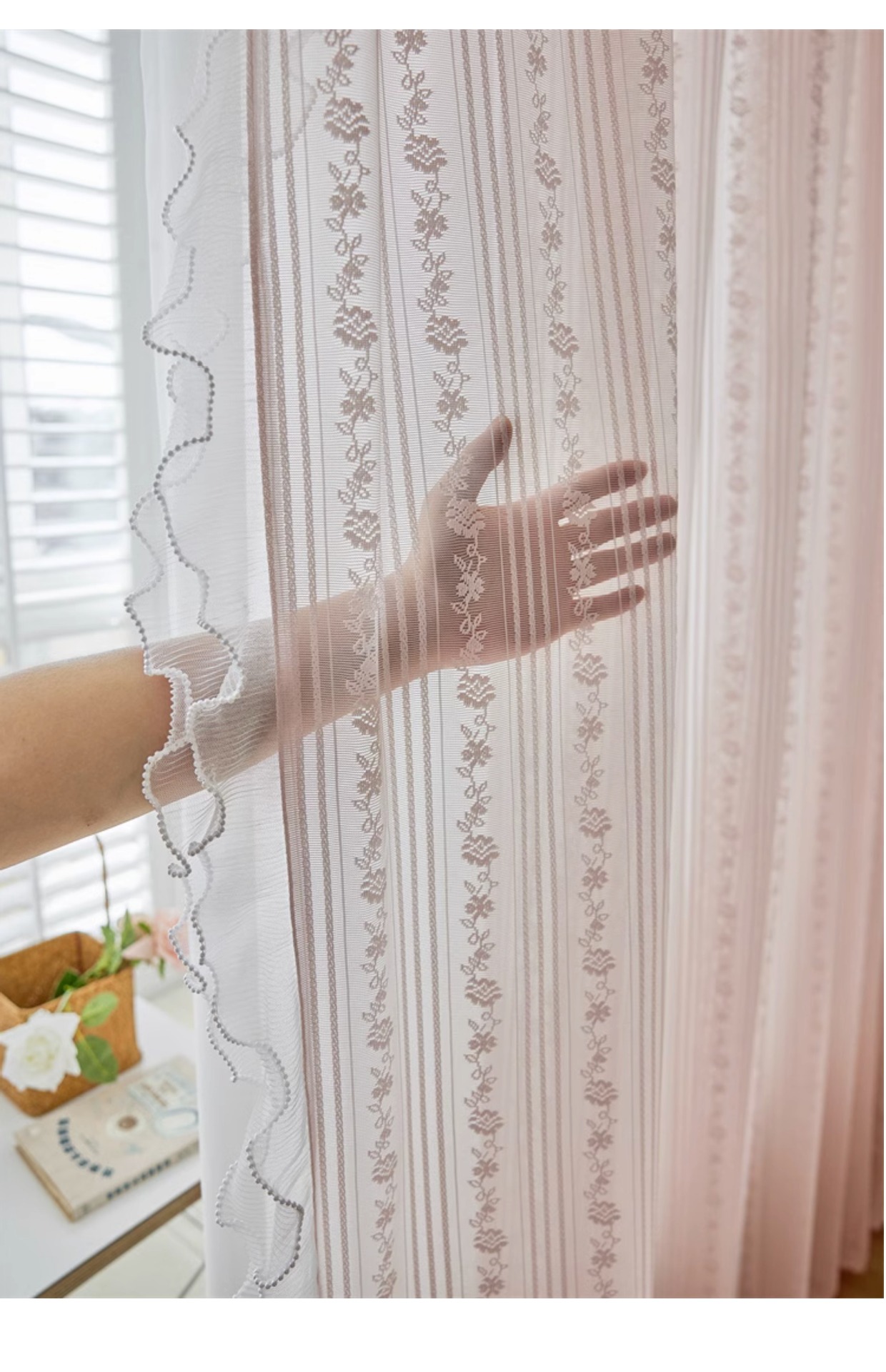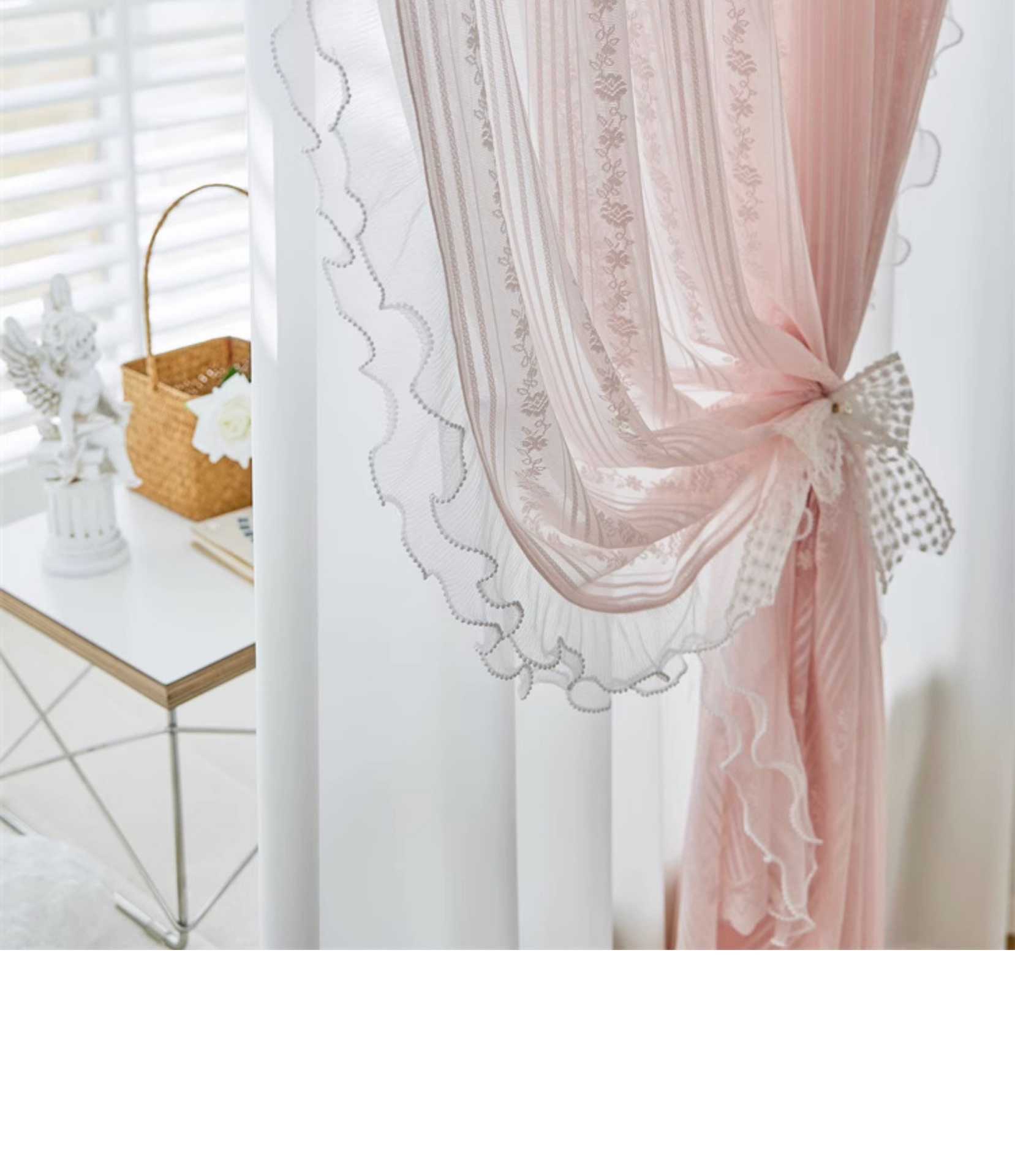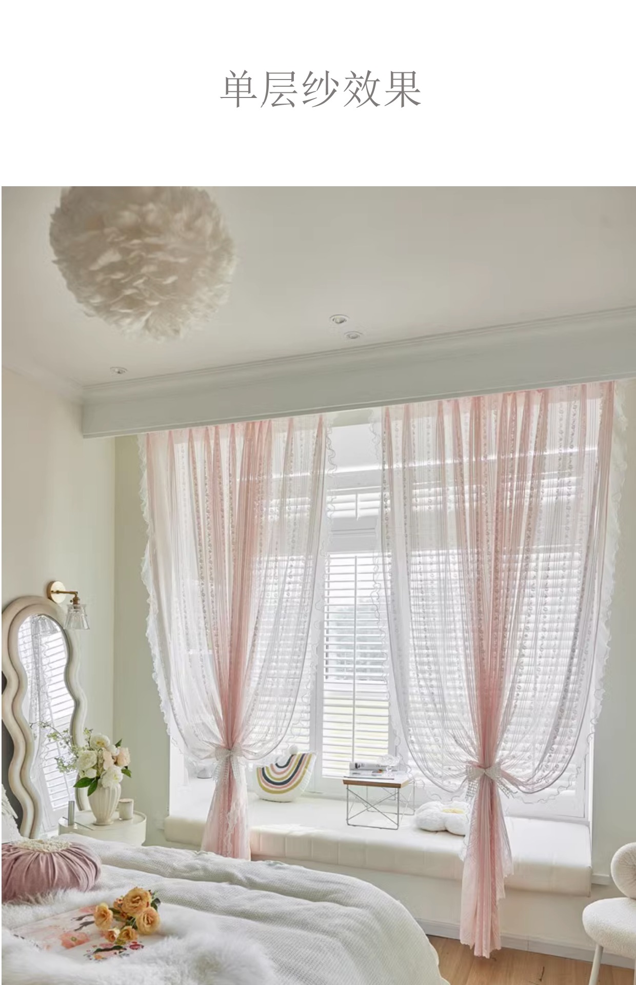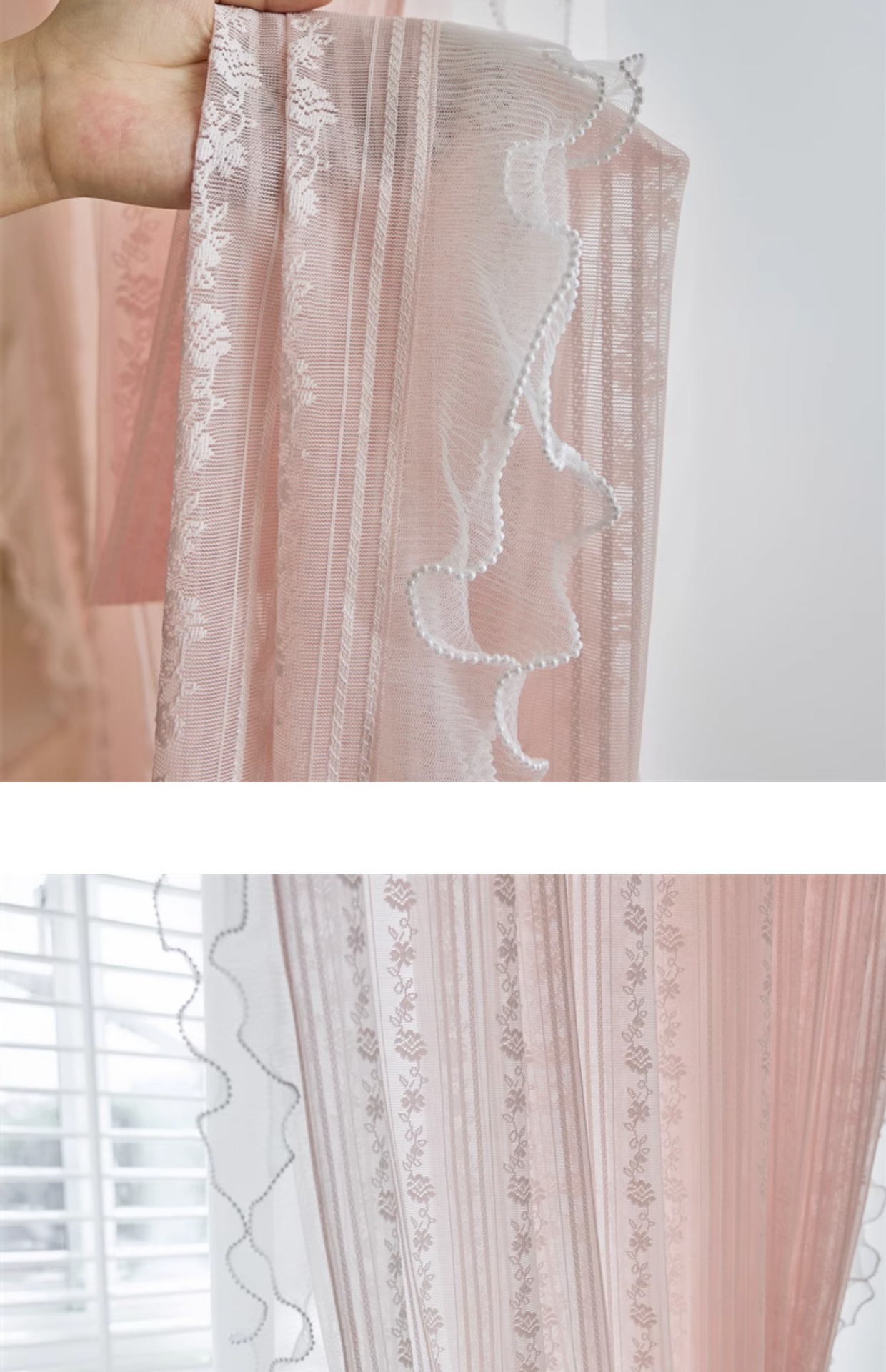 프랑스 소녀 파우더 레이스 창 화면 더블 거즈 커튼 투명 불투명 한 도매 침실 반 음영 공주 바람 신제품스토어 가기