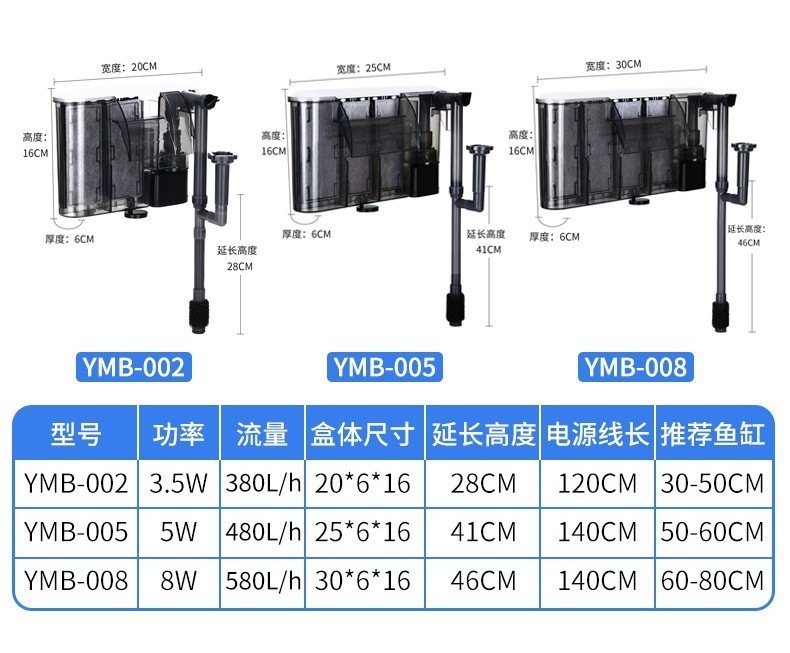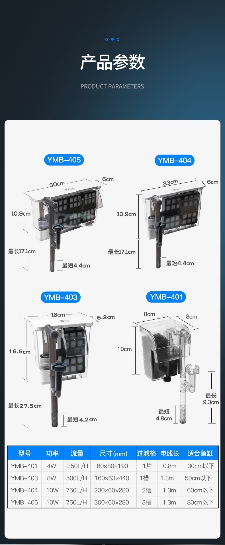 • 10W 확장 버전/강력한 여과/기름 제거 필름 모델/80cm 이하 수조에 적합 YMB-405