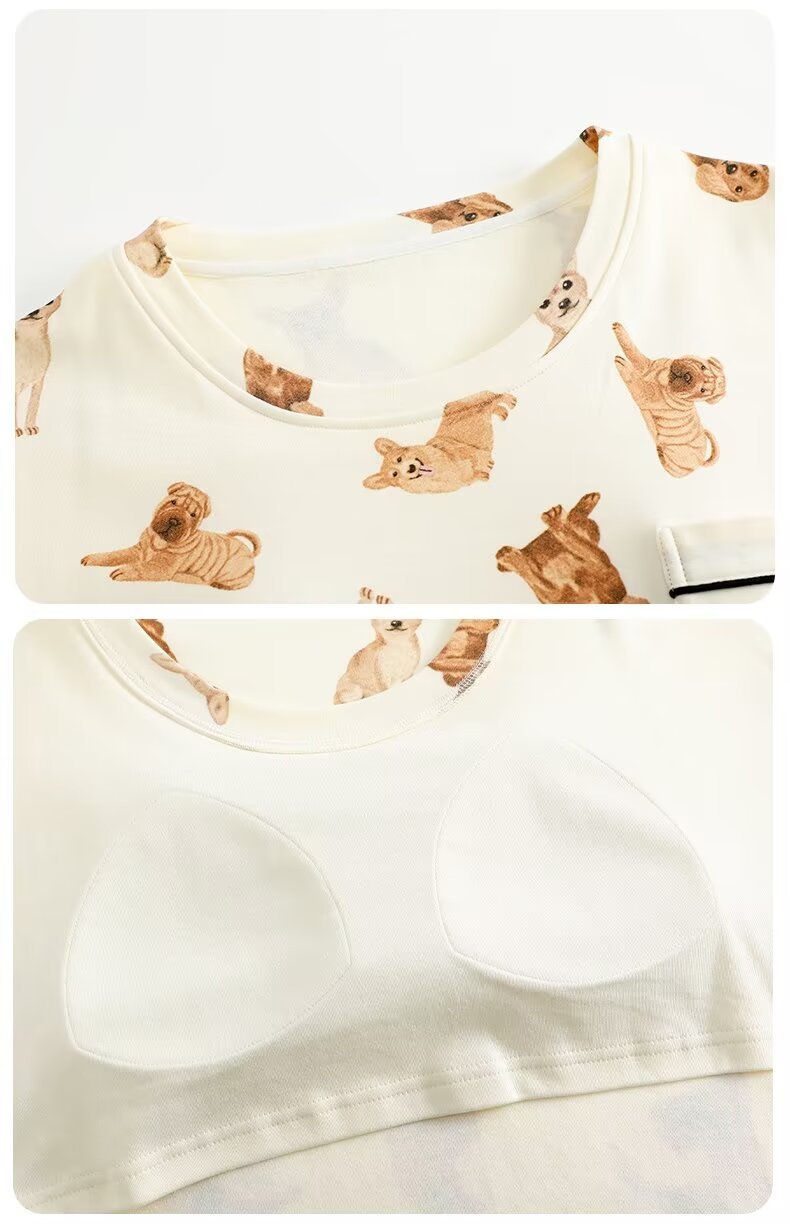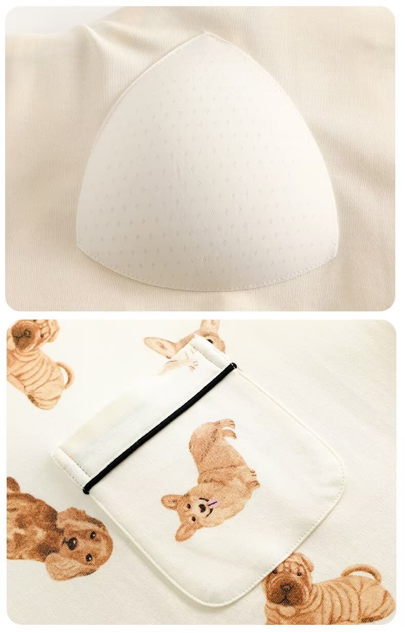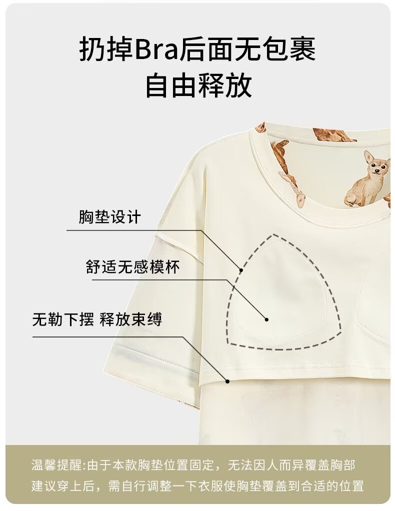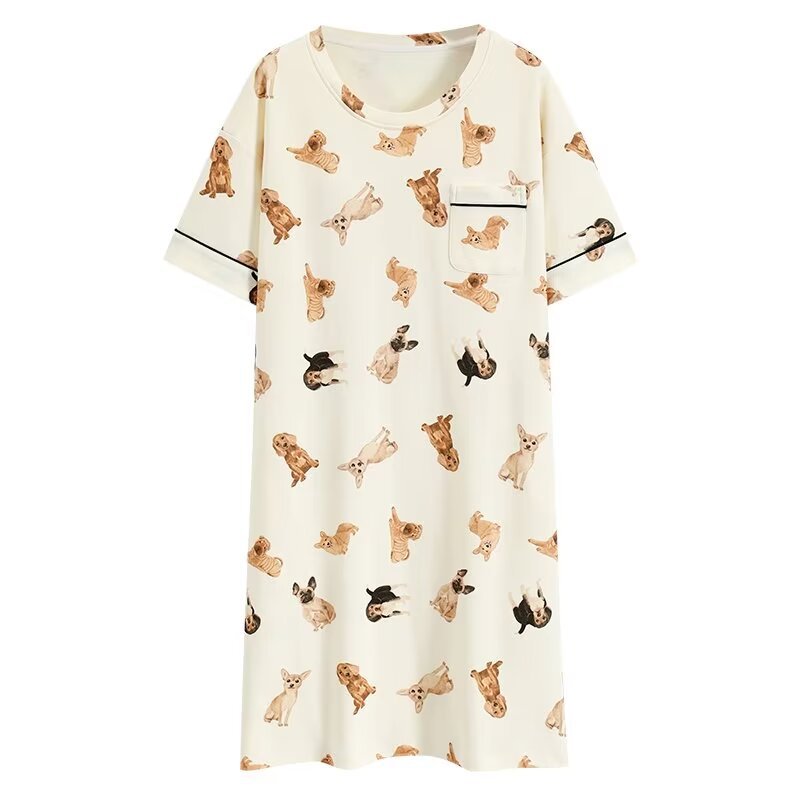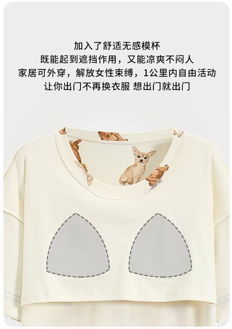 퓨어 코튼 여름 나이트 드레스 요정 스타일 중간 길이 간단한 얇은 브래지어 분리 가능한 만화 반팔 원피스 홈 의류스토어 가기