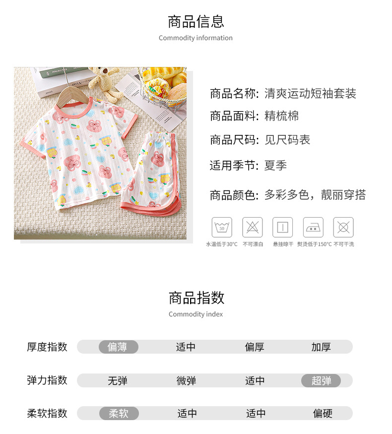 여름 어린이 반팔 반바지 정장 순수 코튼 티셔츠 남성과 여성 아기 얇은 아동 의류 새로운 2024 의류스토어 가기