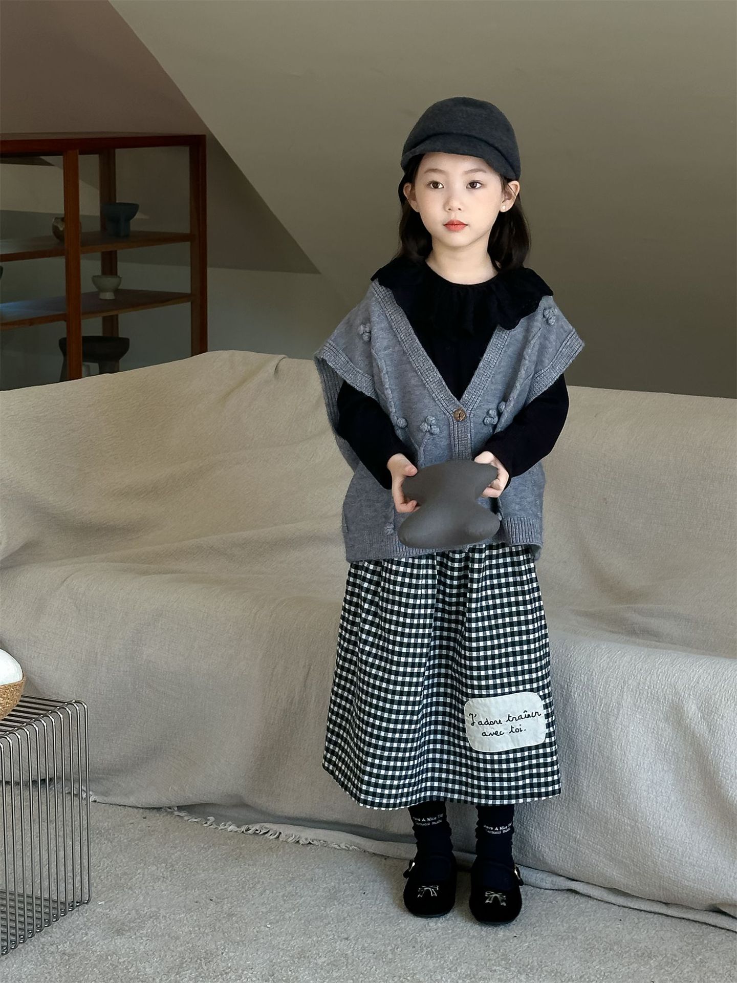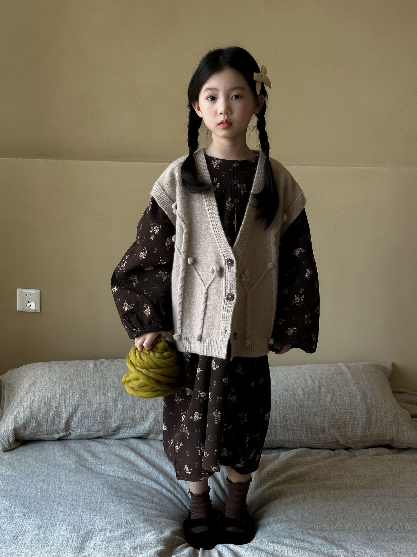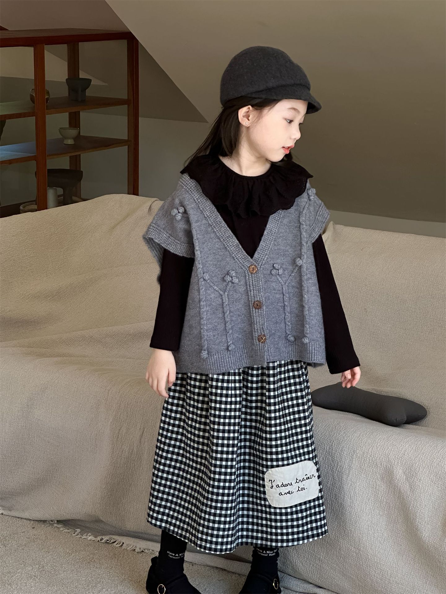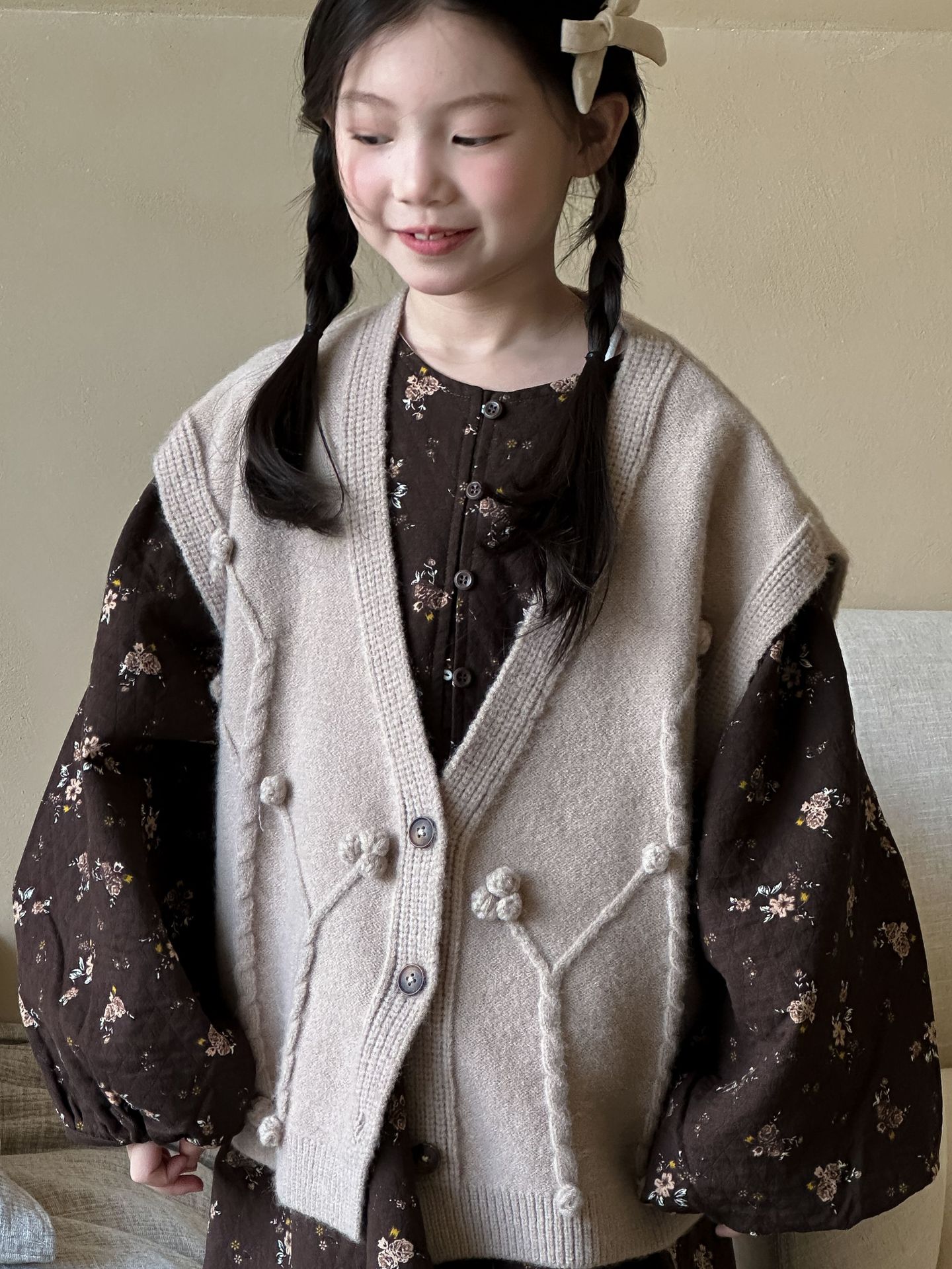 꽃과 추구 어린이 착용 소녀 니트 스웨터 2024 가을 새로운 스타일 유행 소녀의 가을과 겨울 착용 외부 착용 조끼스토어 가기