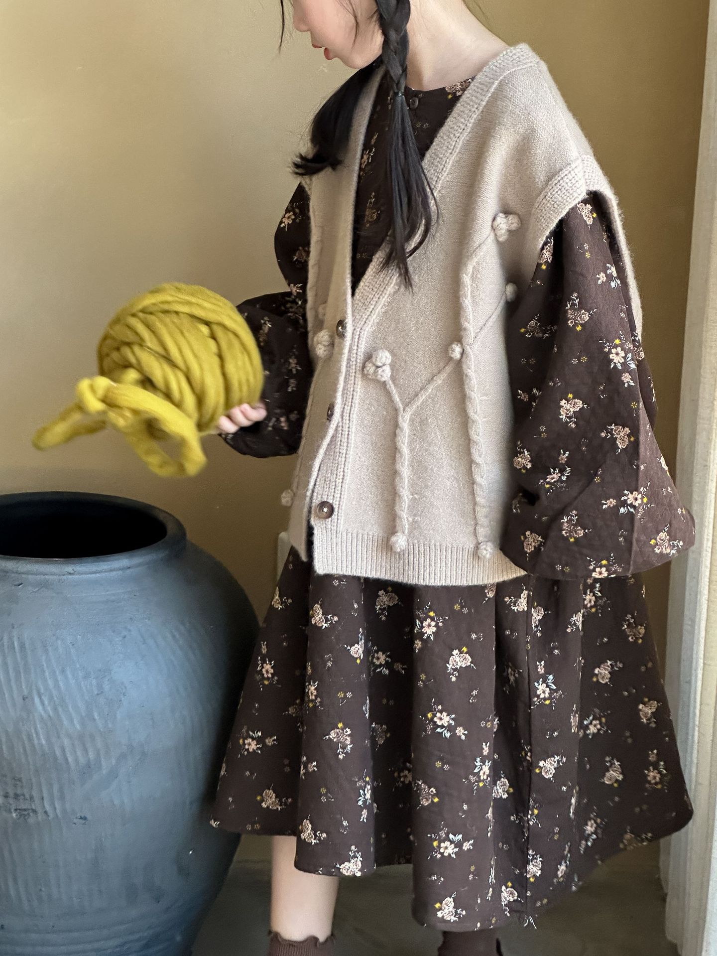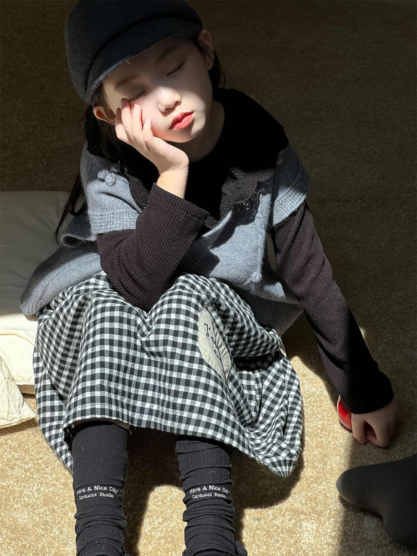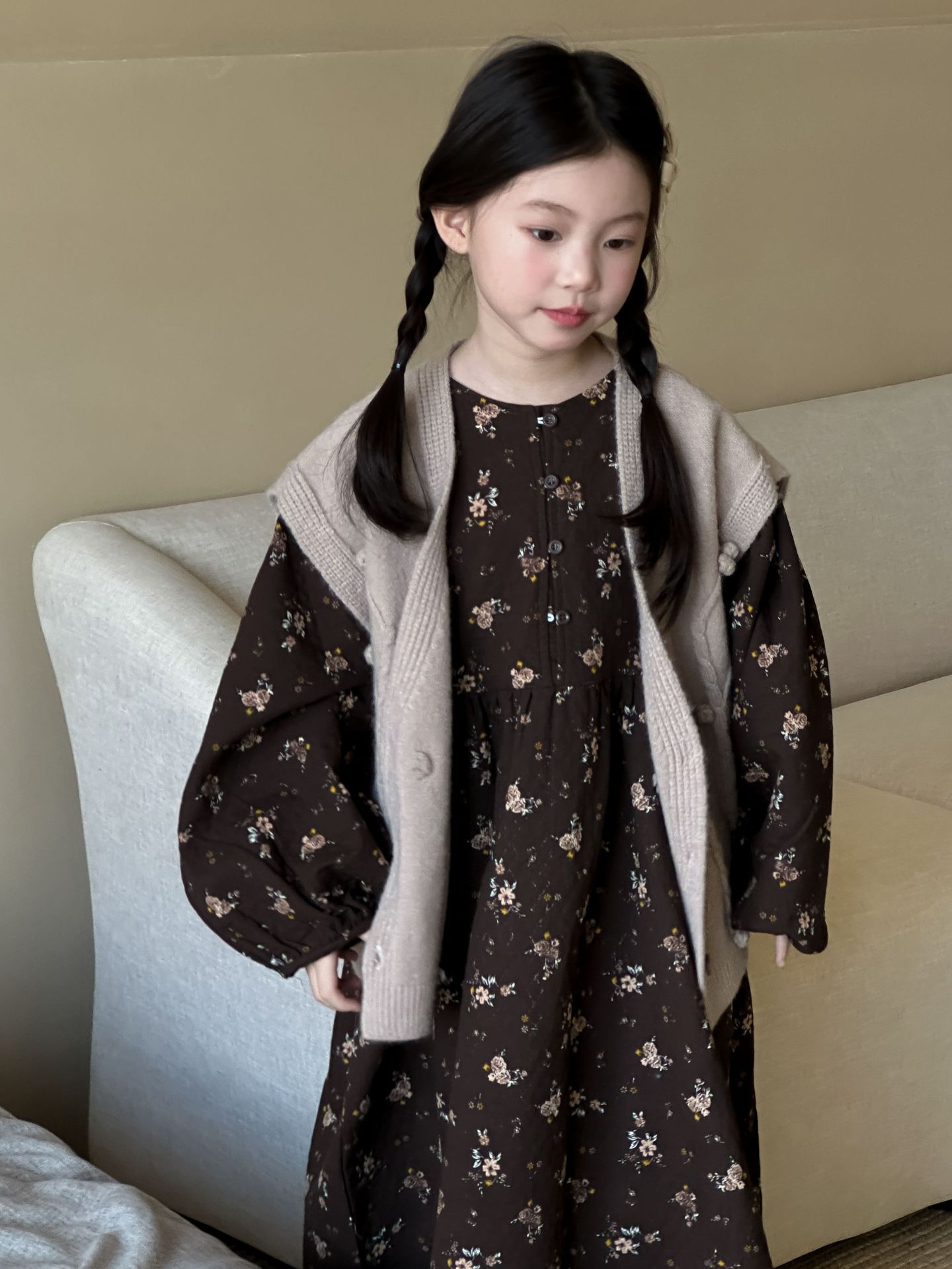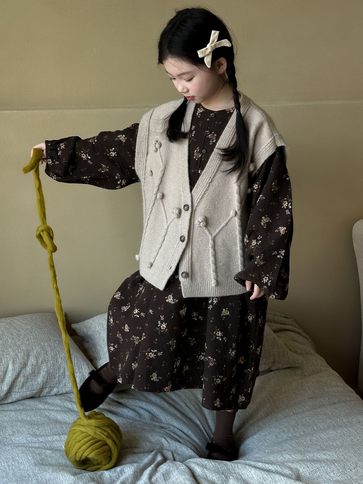 꽃과 추구 어린이 착용 소녀 니트 스웨터 2024 가을 새로운 스타일 유행 소녀의 가을과 겨울 착용 외부 착용 조끼스토어 가기