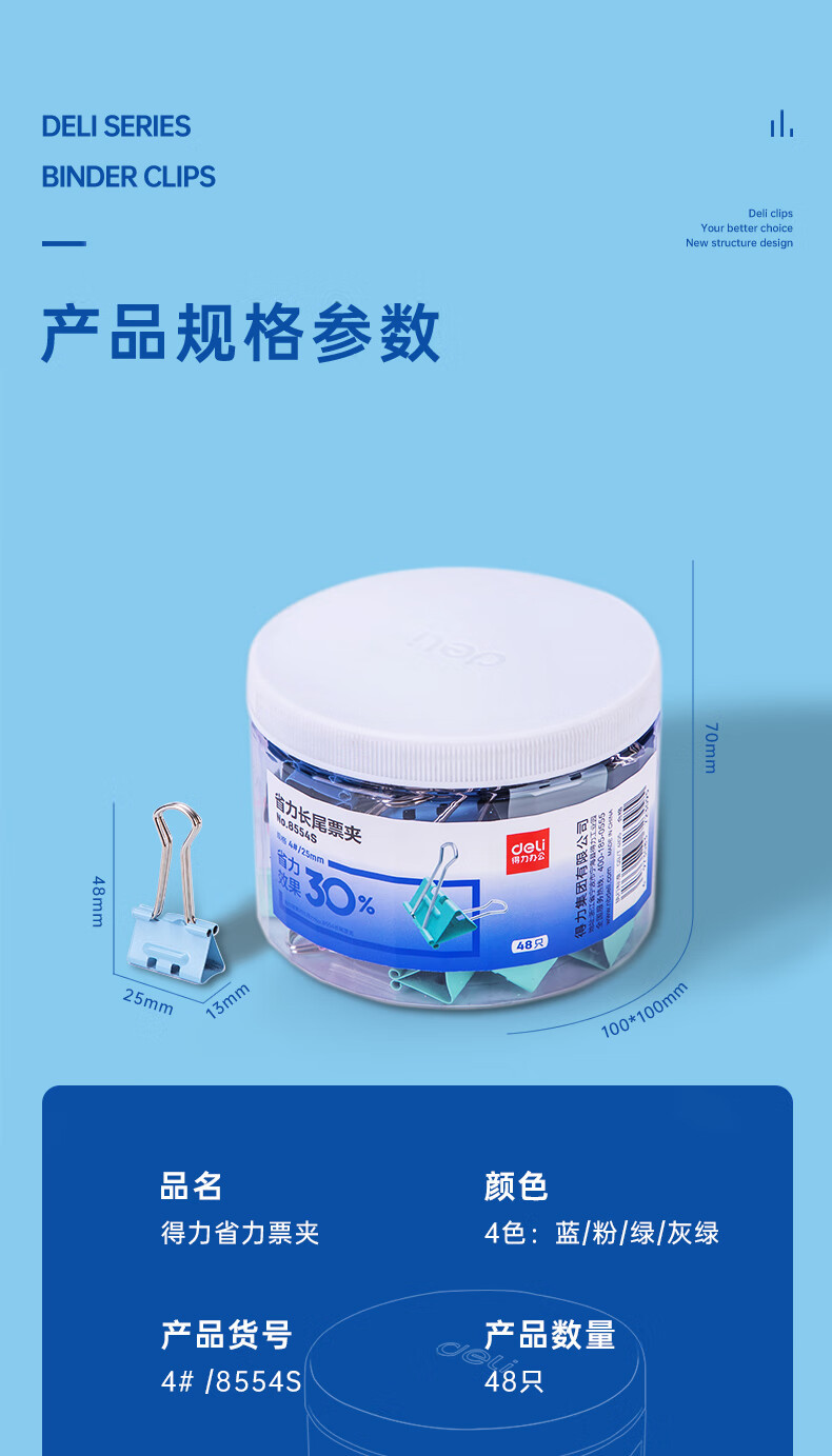델리 8554S 컬러 긴 꼬리 티켓 클립 노동 절약 4 # 중간 금속 더브 테일 클립 지폐 파일 클립 클립 48/튜브