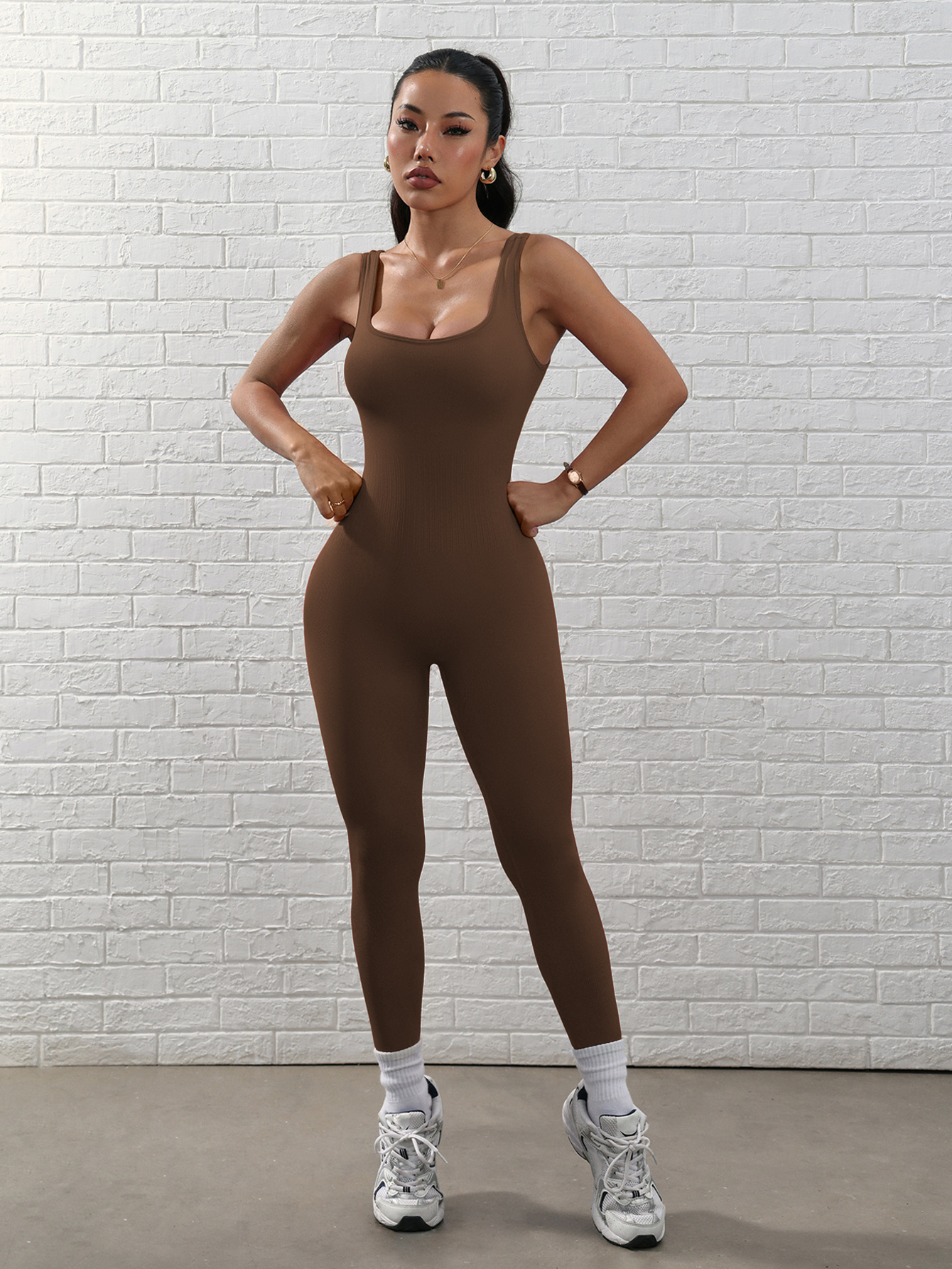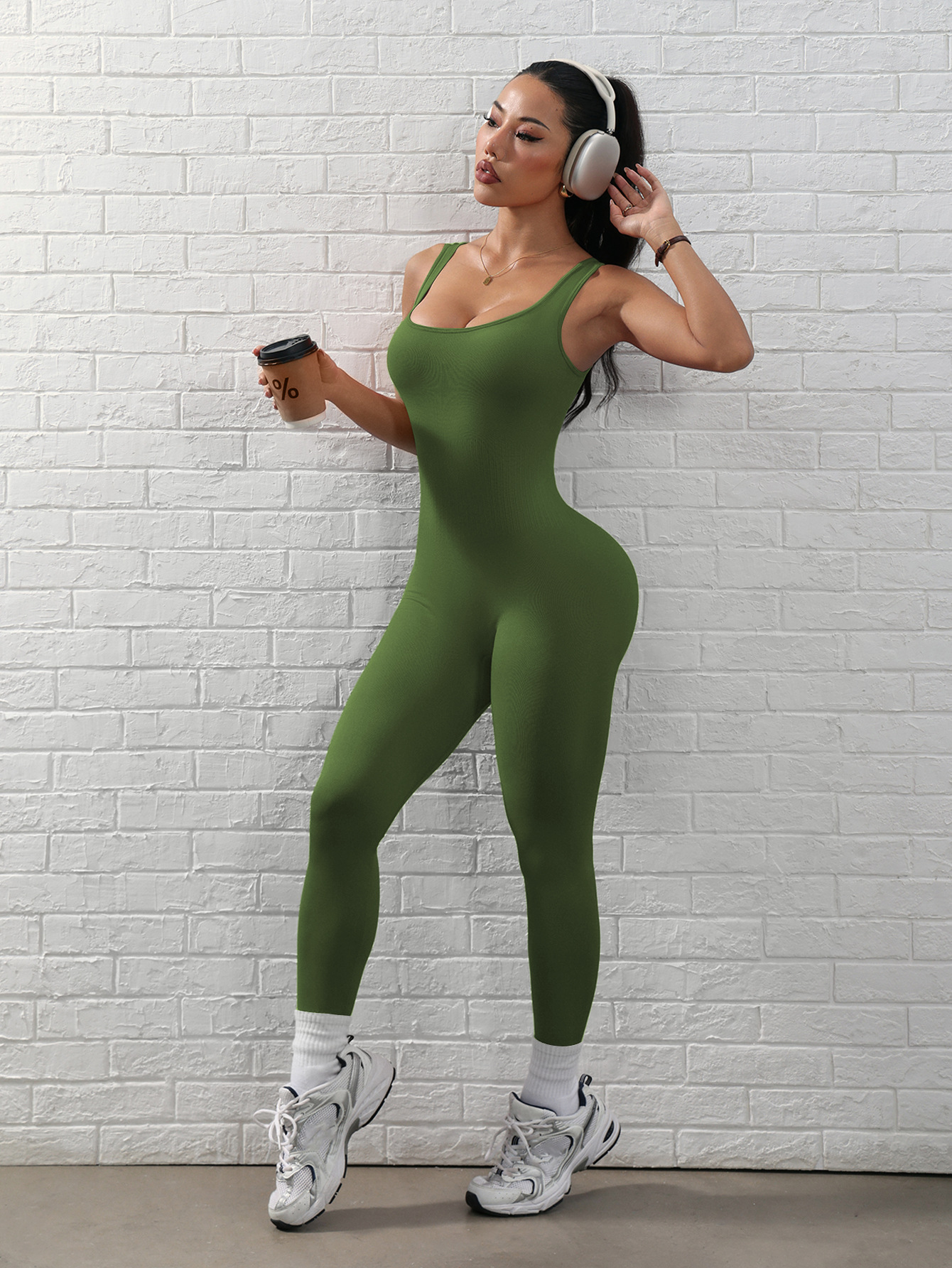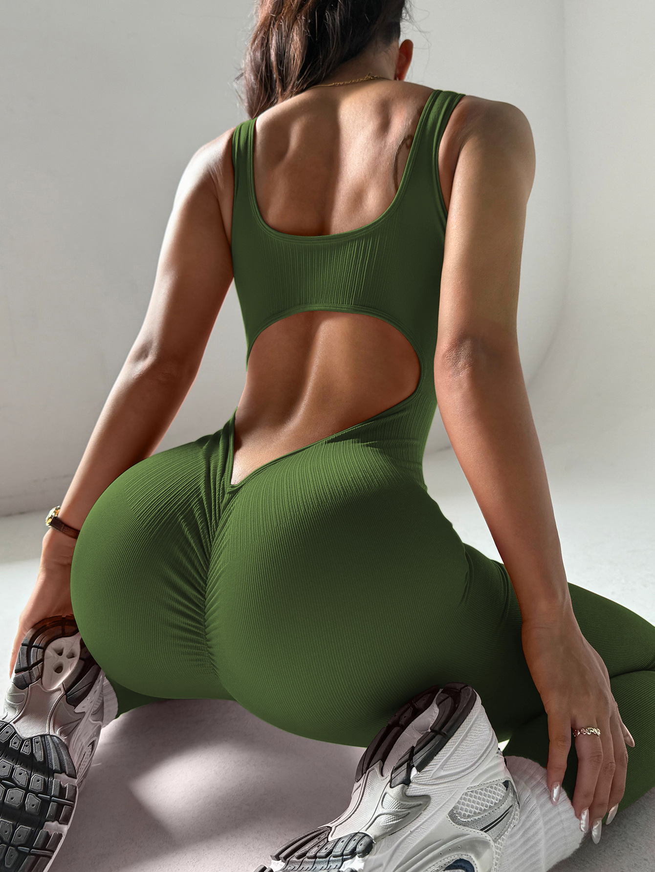 가슴 패드가 없는 크로스보더 타이트 원피스 요가복 여성용 고탄력 일체형 긴바지 요가복 여성용