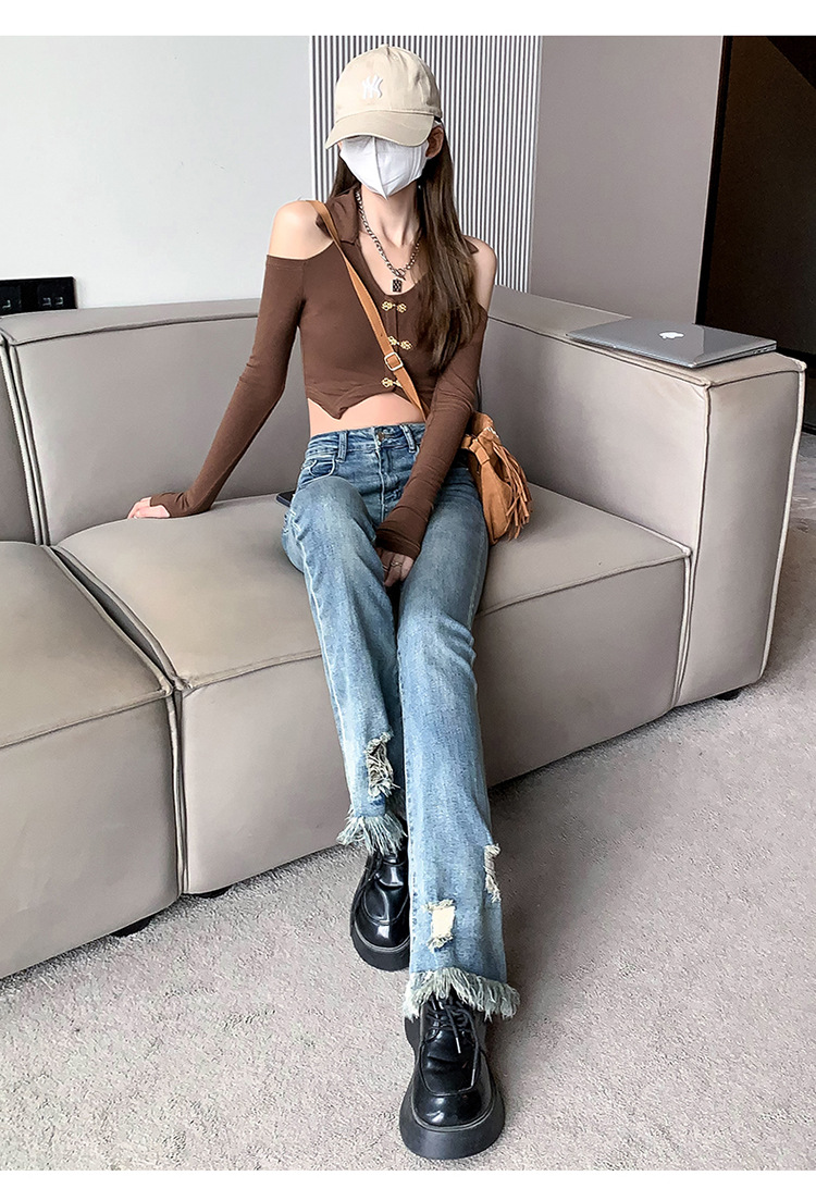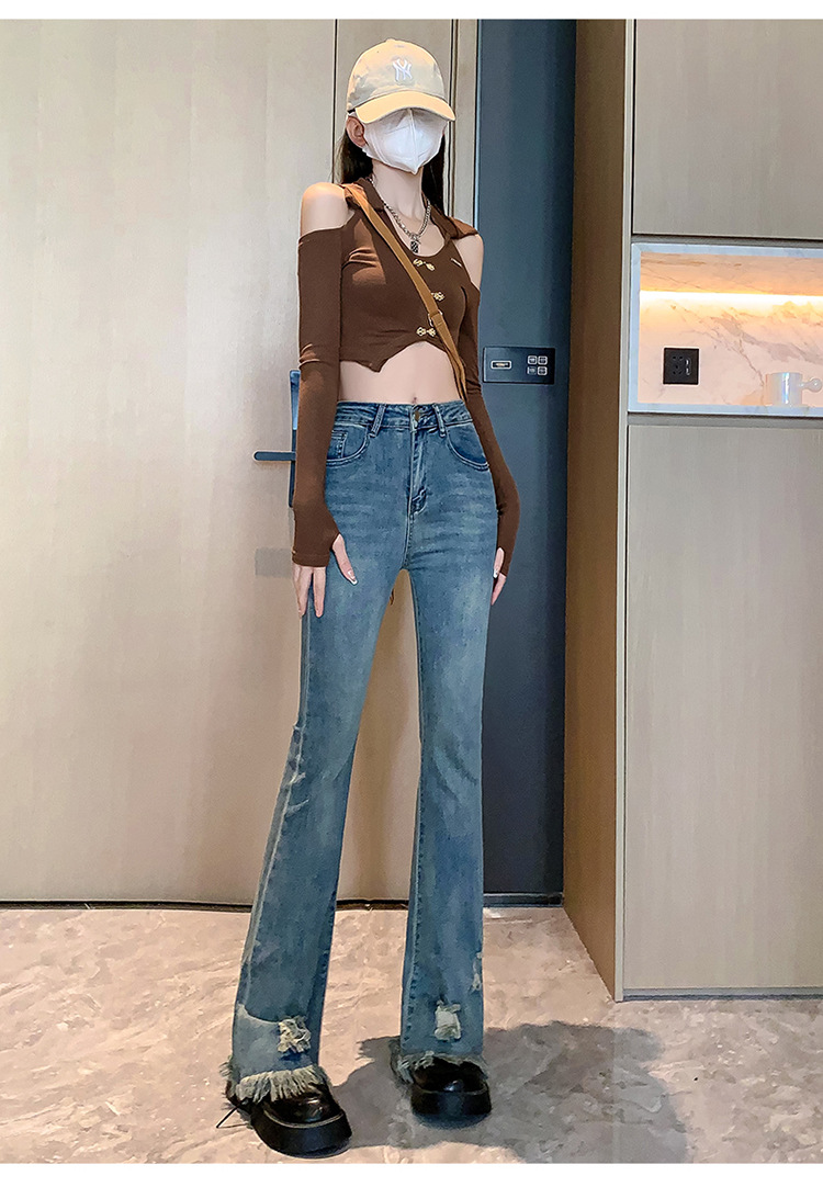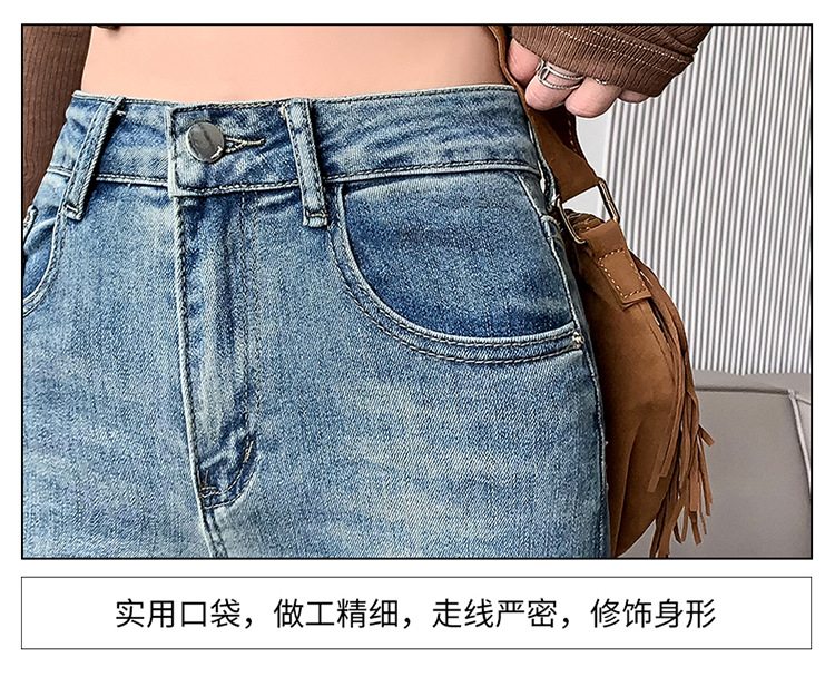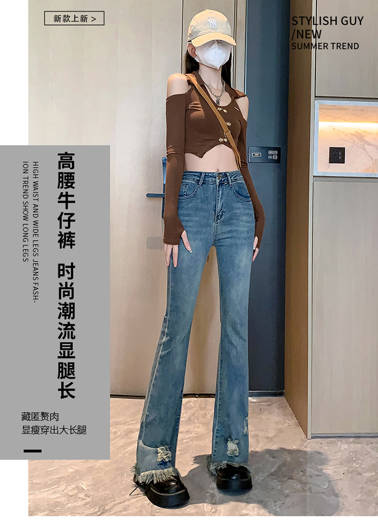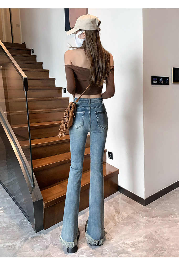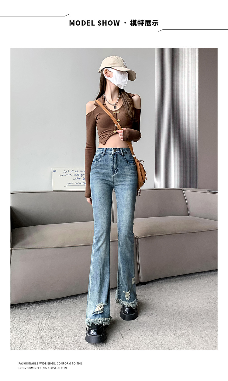 빈티지 향수 프린지 하이 허리 청바지 여성의 2024 가을 새로운 슬림 핏 슬리밍 리핑 마이크로 팬츠스토어 가기
