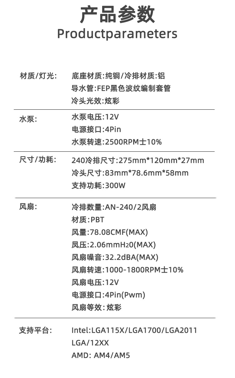 TEUCER Fengshen AF-S240/AF-S360 통합 CPU 수냉 라디에이터 PWM 온도 제어 1700