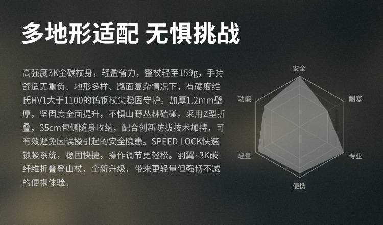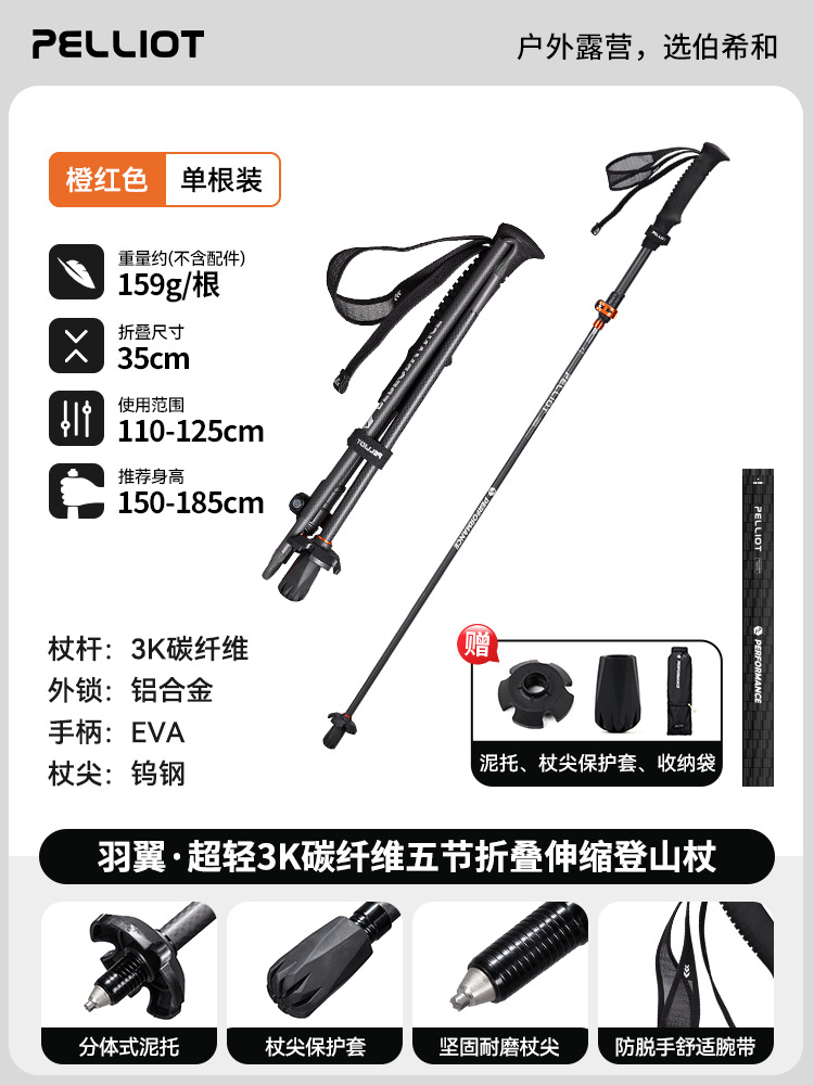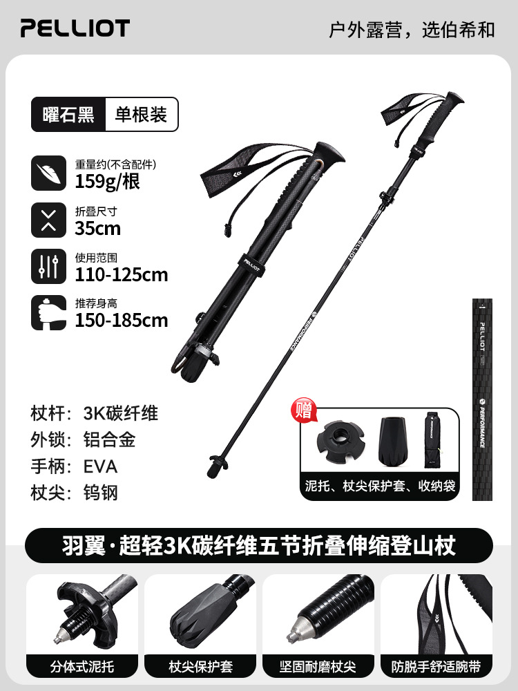 [날개] 베티와 야외 하이킹 스틱 3k 탄소 섬유 목발 접히는 초경량 워킹 스틱 전문 워킹 스틱스토어 가기