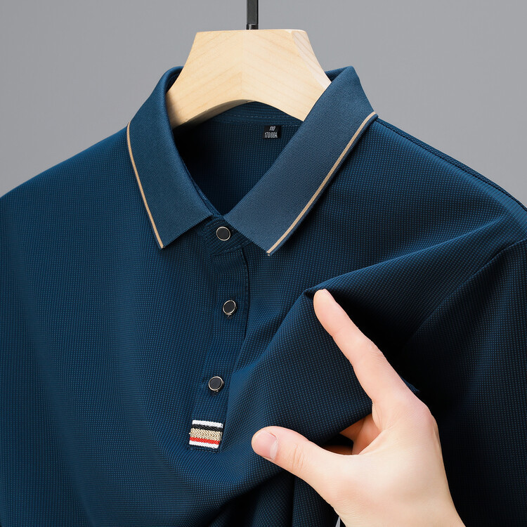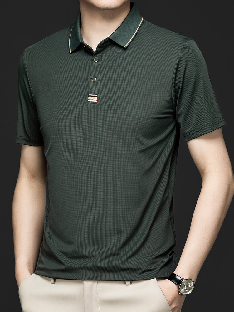 새로운 도착 2024 여름 비즈니스 신사 얇은 남자의 폴로 셔츠 줄무늬 짧은 소매 폴로 셔츠 남자의 티셔츠 탑