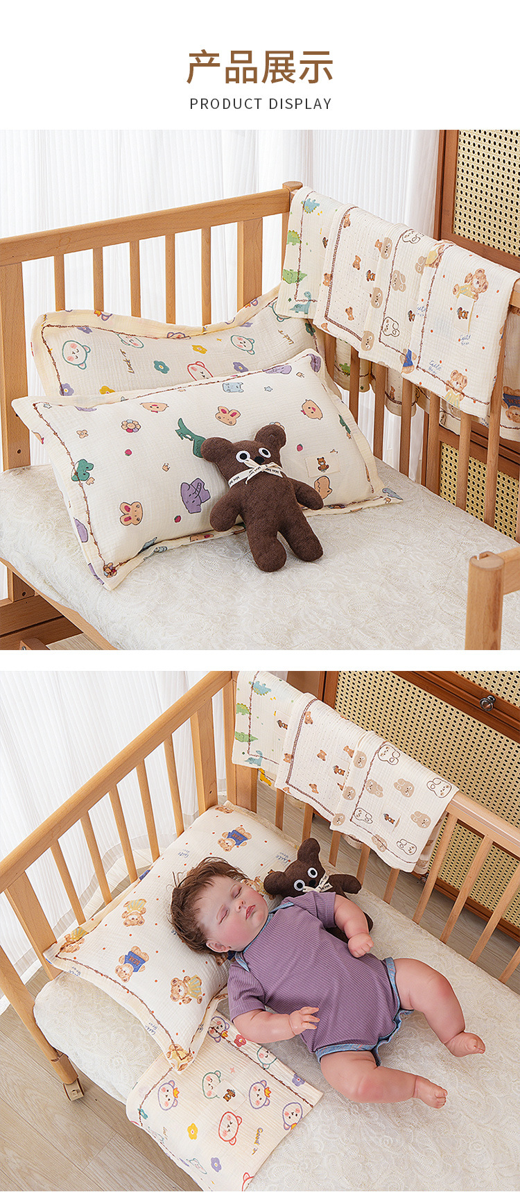 어린이 거즈 베개 아기 면 부드러운 흡수성 침대 베개 터번 유치원 용품 더블 거즈 베개스토어 가기
