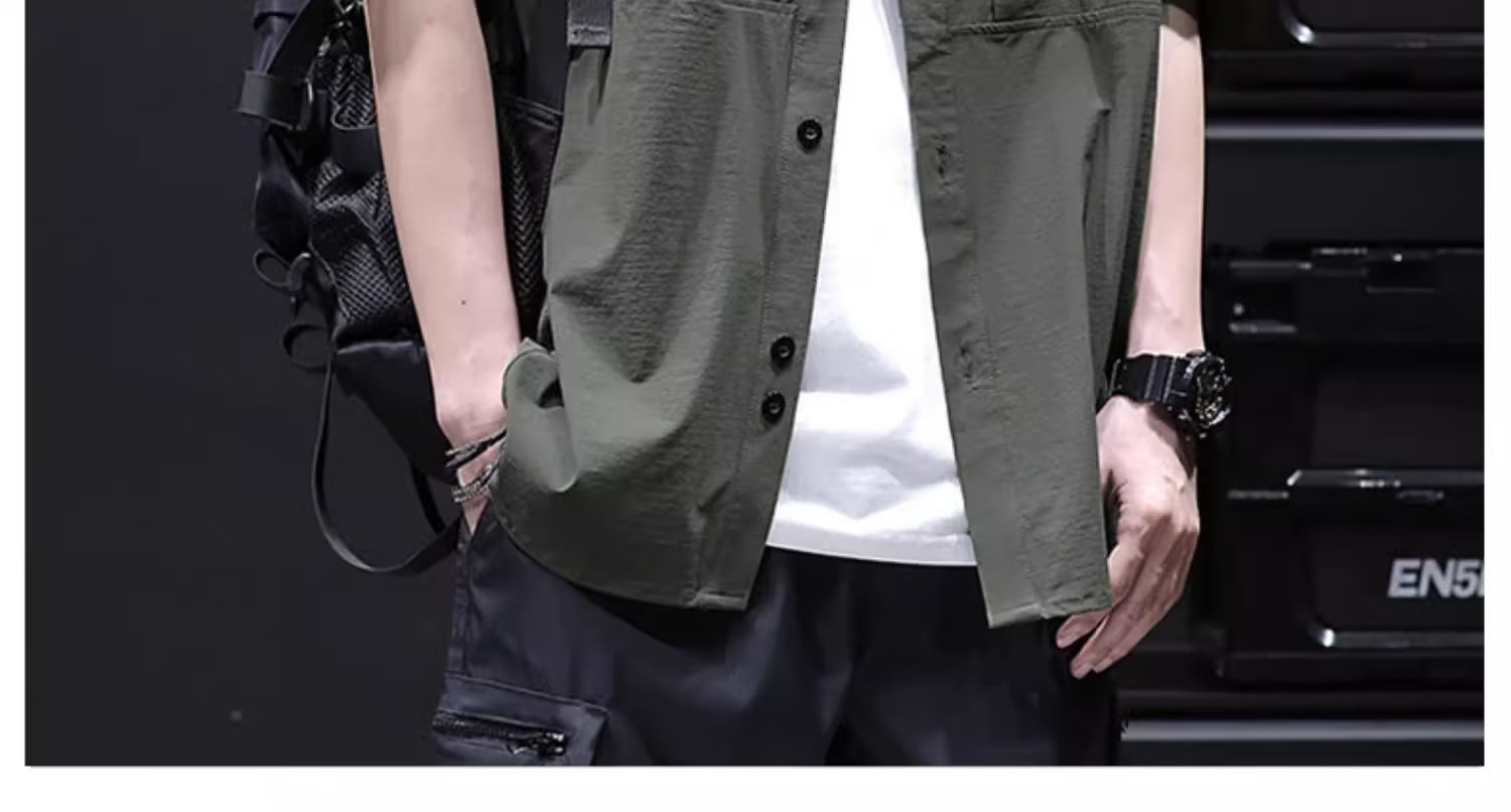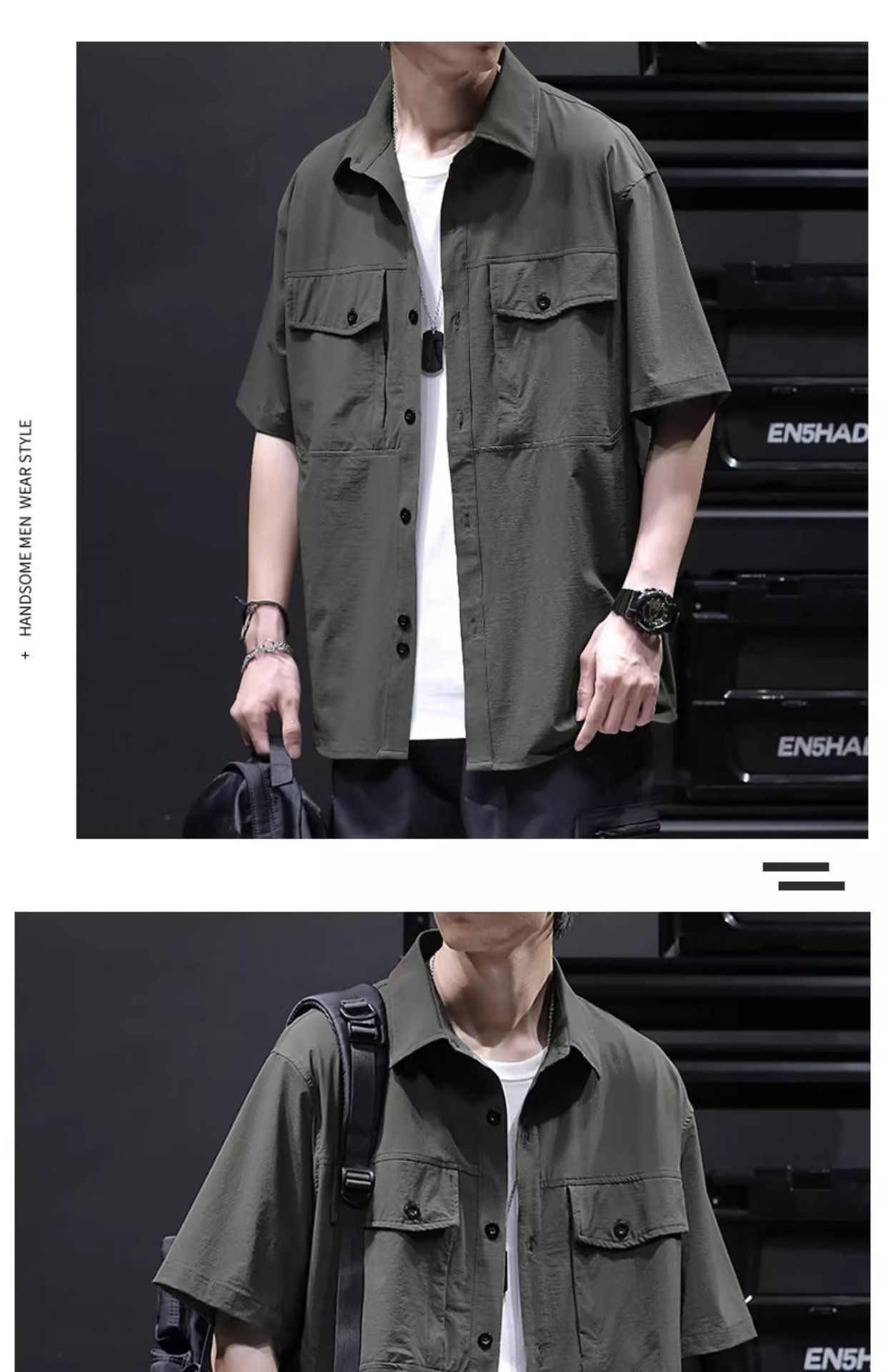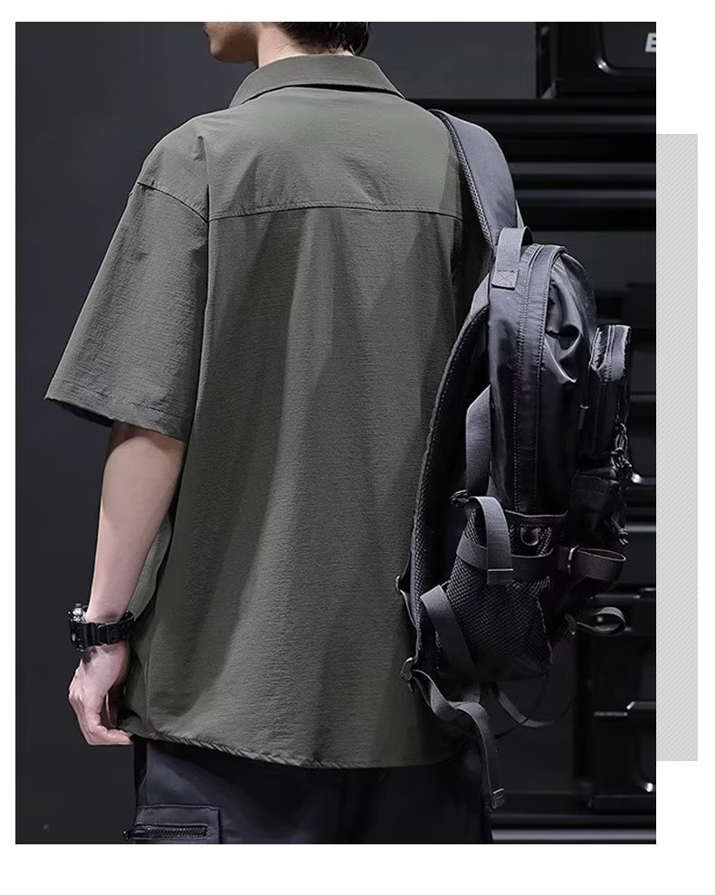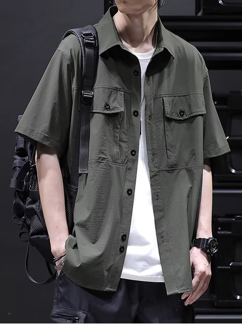 여름 아이스 실크 크록 셔츠 남자 반팔 느슨한 포켓 셔츠 남자 플러스 사이즈 트렌디 한 올매치 잘 생긴 얇은 코트스토어 가기