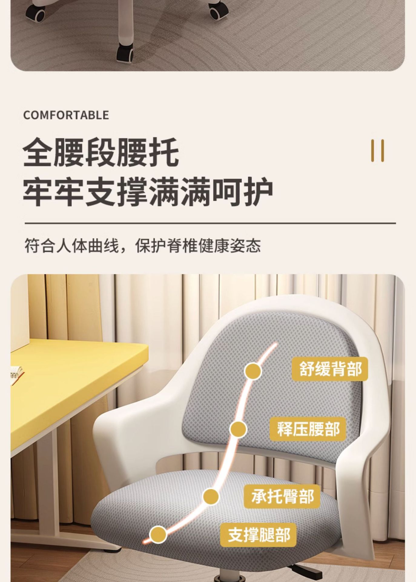 리프팅 가능한 컴퓨터 의자 홈 오피스 의자 중학교 학생 학습 의자 침실 좌초 백레스트 책 신제품
