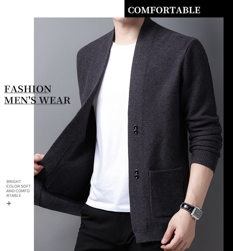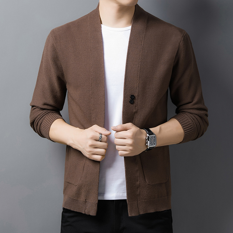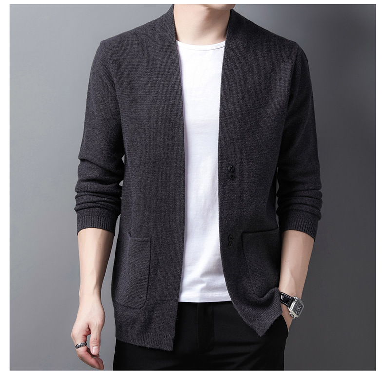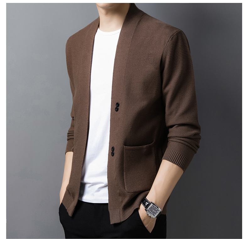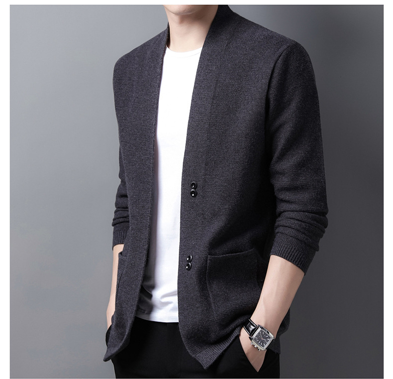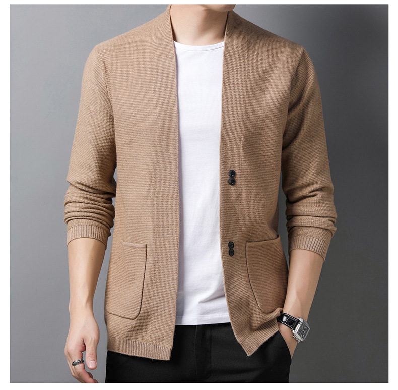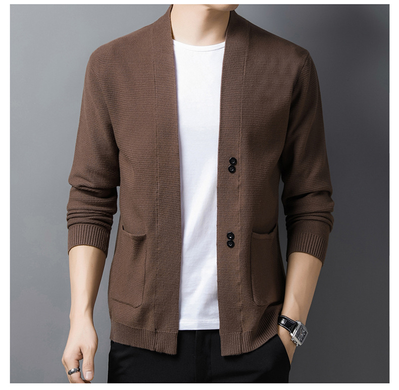 젊은 남성용 니트 스웨터, 트렌디한 브랜드, AliExpress, 대외 무역, 포켓 캐주얼 가디건, 울 니트 스웨터 재킷, 트렌디한 남성용