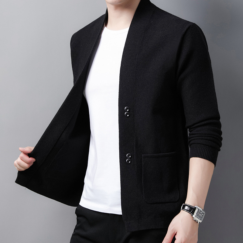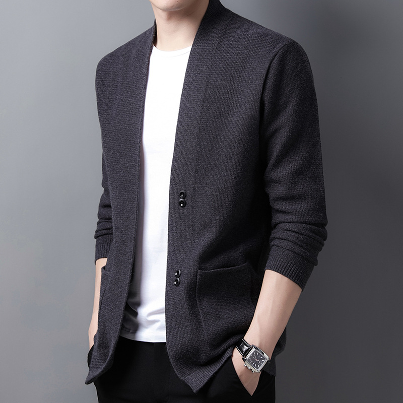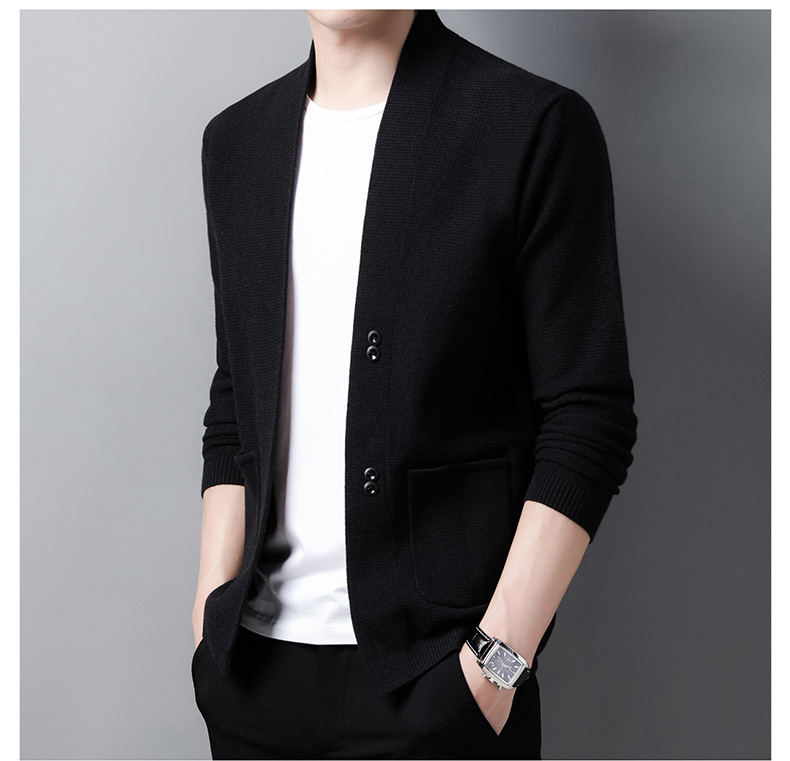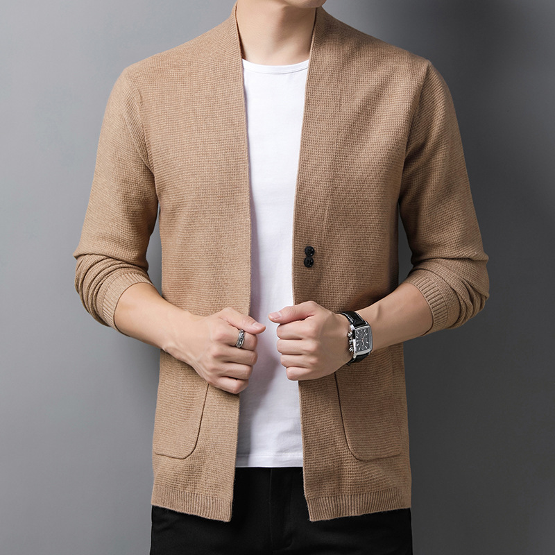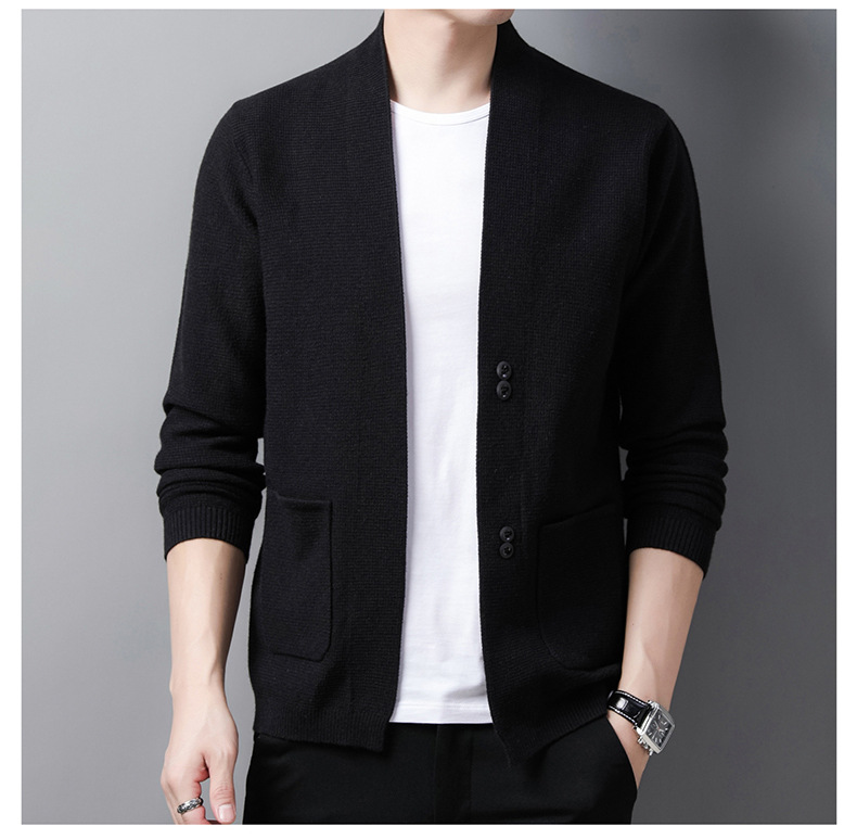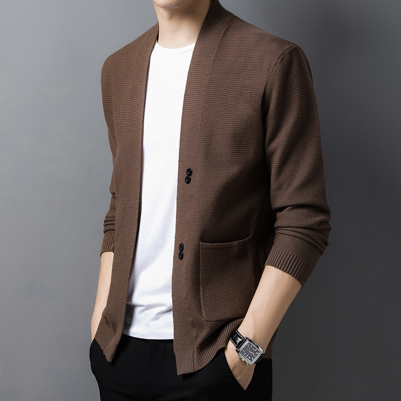 젊은 남성용 니트 스웨터, 트렌디한 브랜드, AliExpress, 대외 무역, 포켓 캐주얼 가디건, 울 니트 스웨터 재킷, 트렌디한 남성용
