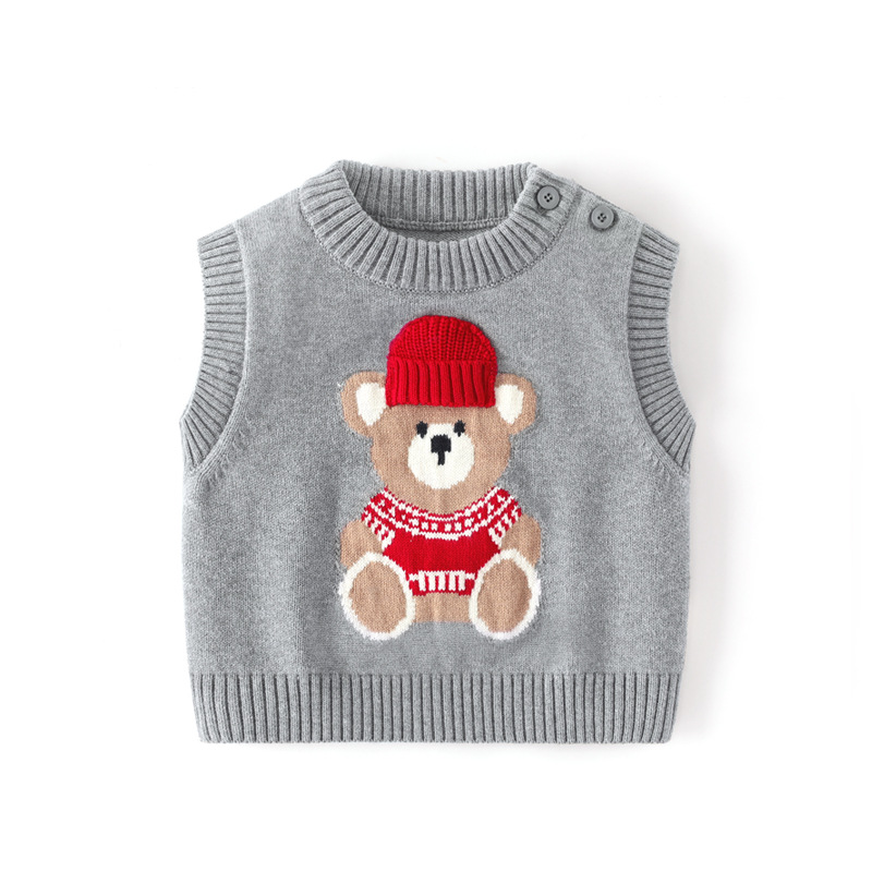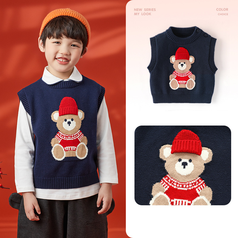 쿠와미 가을 겨울 신상품 한국 스타일 크리스마스 곰 조끼 라운드넥 니트 스웨터 남아 여아 조끼 스웨터