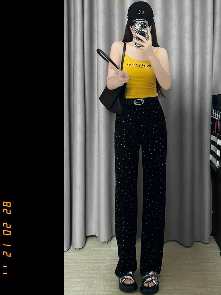 폴로도트 화이트 청바지 여성 여름 2024 여름 새로운 느슨한 직선 다리 바지 새로운 높은 허리 슬리밍 걸레 바지스토어 가기