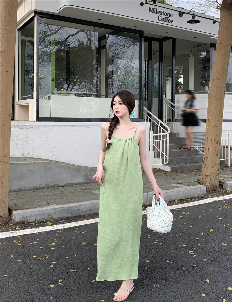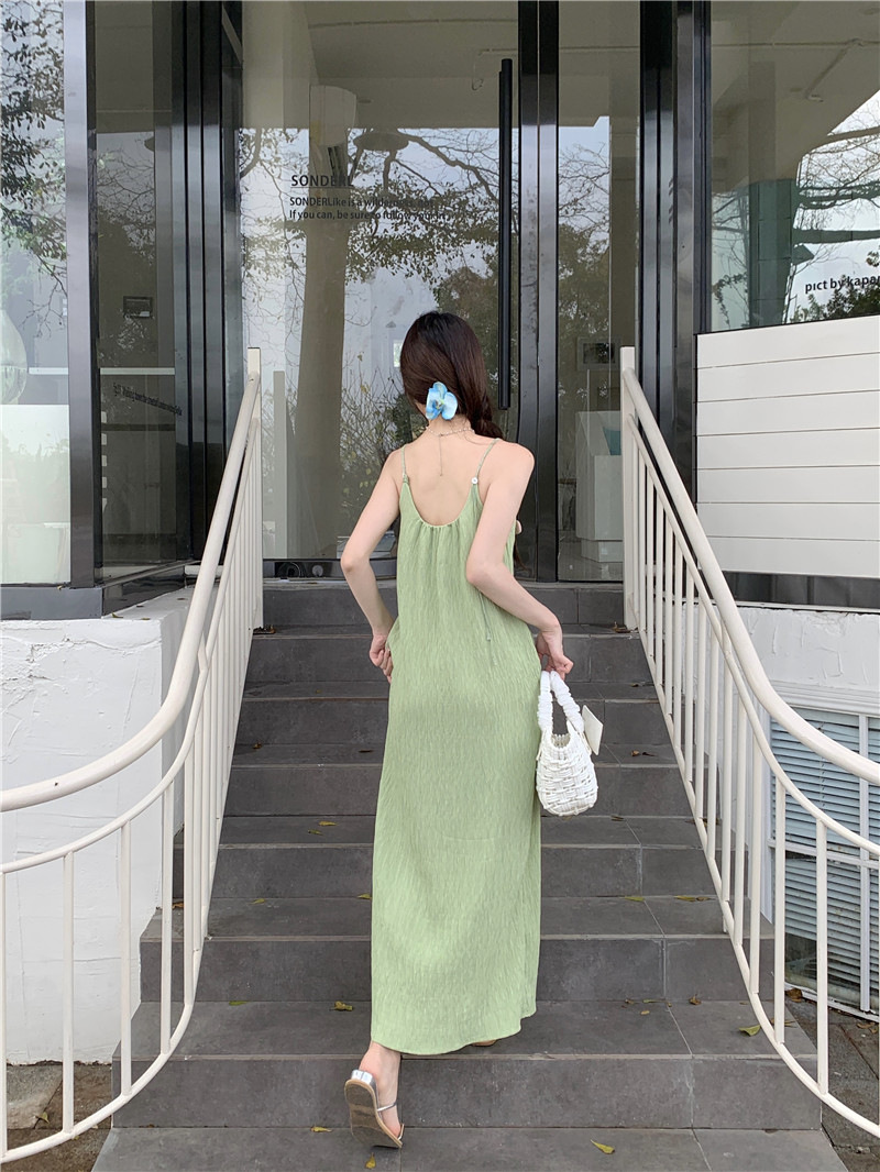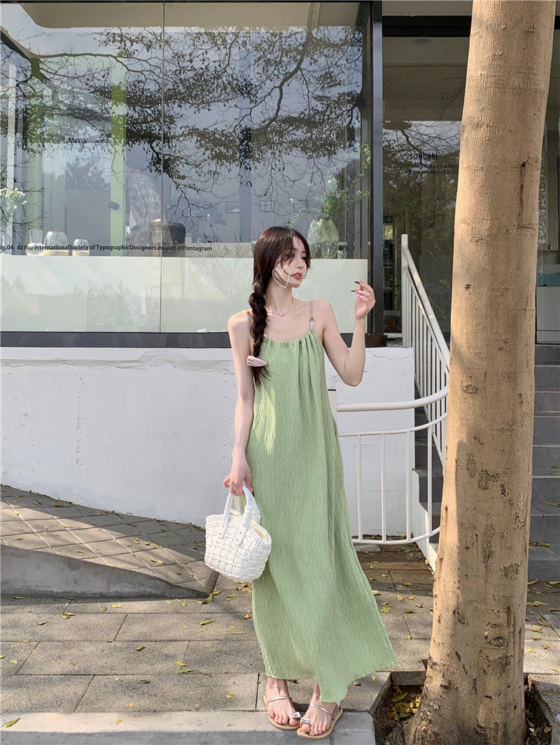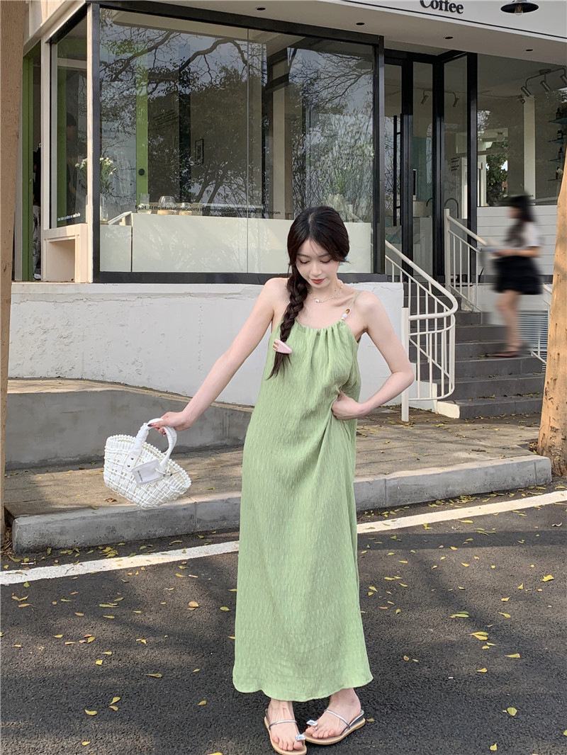 녹색 민소매 조끼 원피스 어린이 여름 2024 새로운 해변 휴가 프랑스 우아한 고급 원피스스토어 가기
