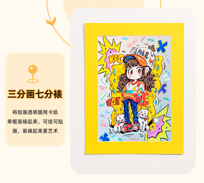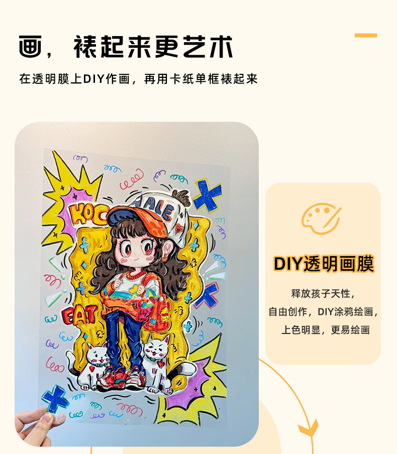어린이 그림 프레임 창조적 인 낙서 DIY 그림 투명 필름 골판지 사진 프레임 아트 룸 작품 장착 디스플레이 프레임