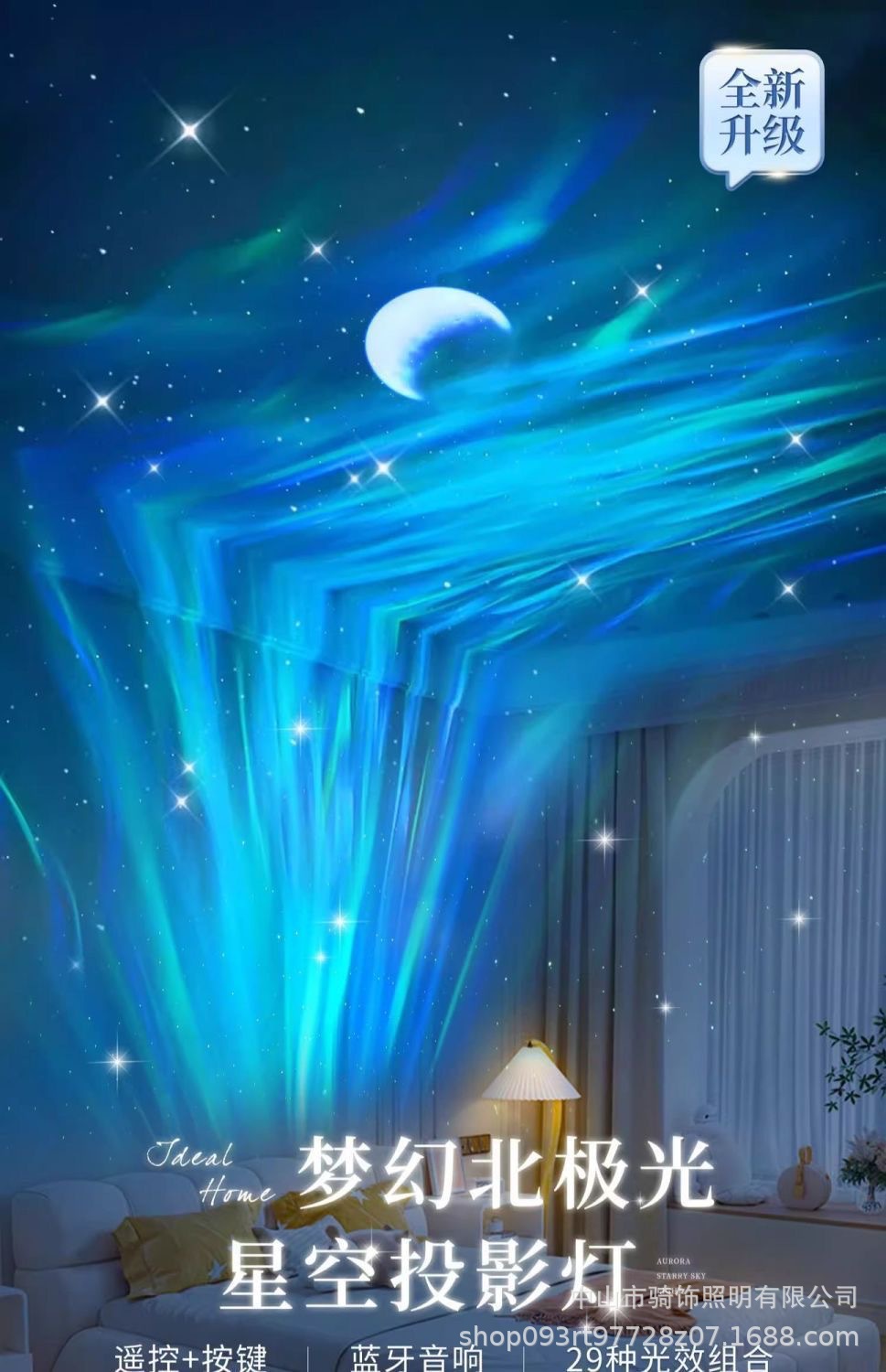 Aurora Borealis 스타 프로젝터 스카이 스타 룸 마스터 침실 로맨틱 감성 블루투스 사운드 분위기 야간 조명