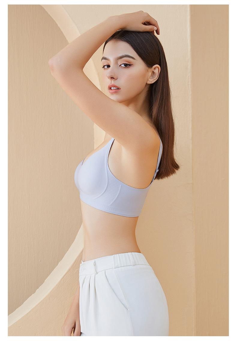 통기성 얇은 원활한 속옷 여성의 부드러운 지원 U 자형 아름다운 등 브래지어 스틸 링 고정 컵 작은 가슴 브래지어 코르셋