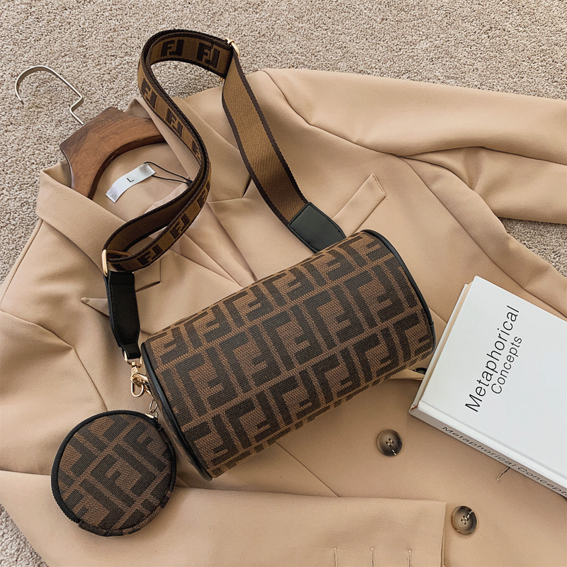 캔버스 라운드 간단한 가방 여성 가방 2024 새로운 패션 빈티지 인쇄 보스턴 가방 단일 어깨 크로스 바디 백 베개 가방