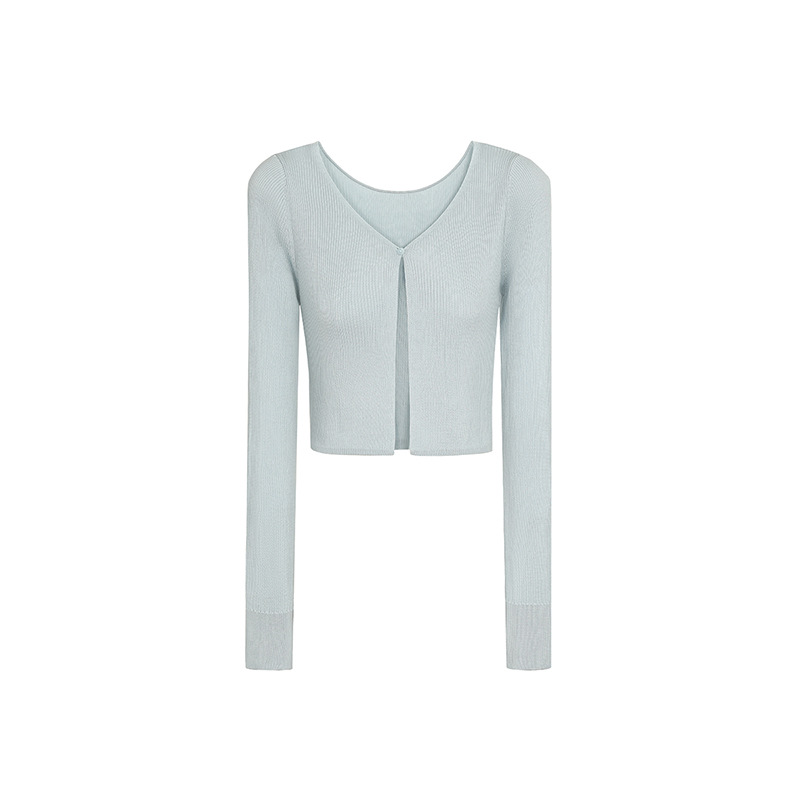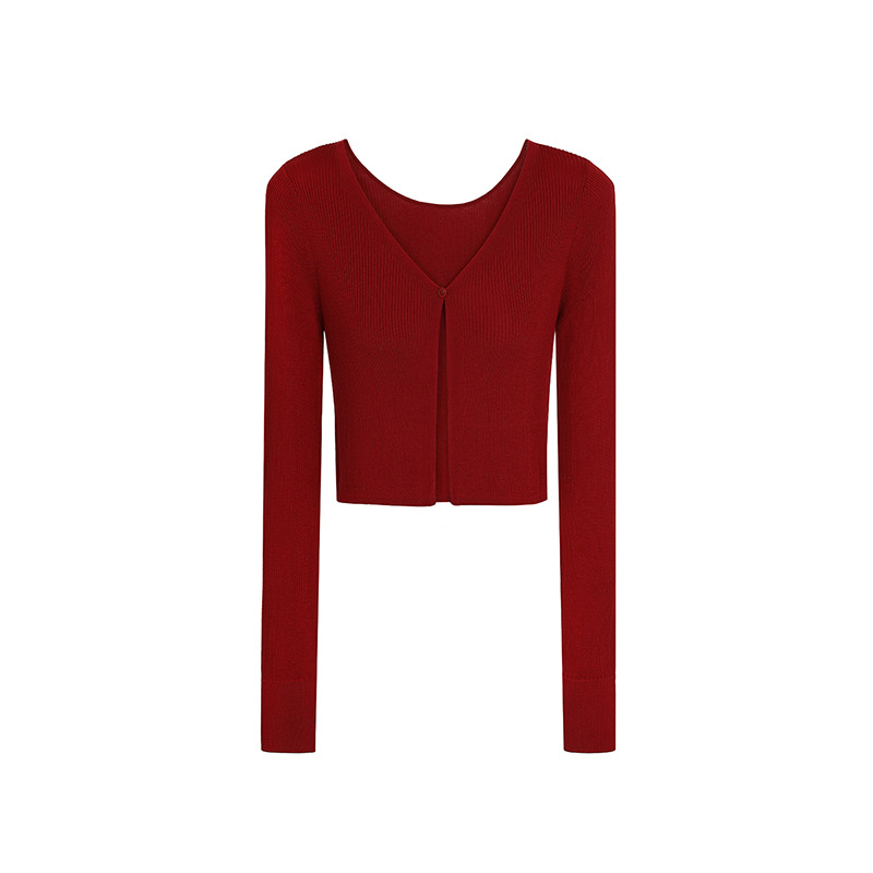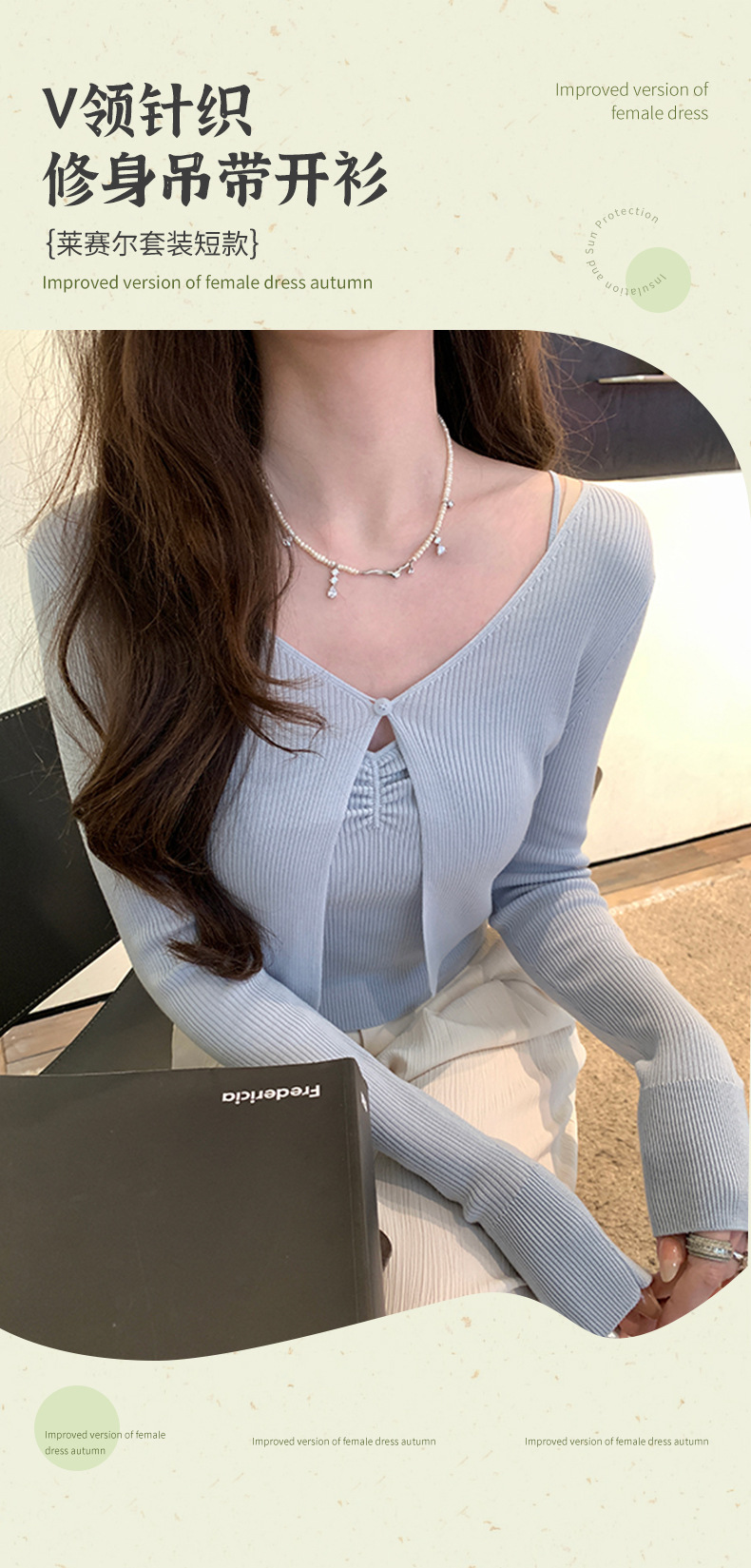 새로운 한국 스타일 부드러운 스타일 주름 내부 섹시한 캐미솔 짧은 v 넥 긴팔 카디건 재킷 니트 여성스토어 가기
