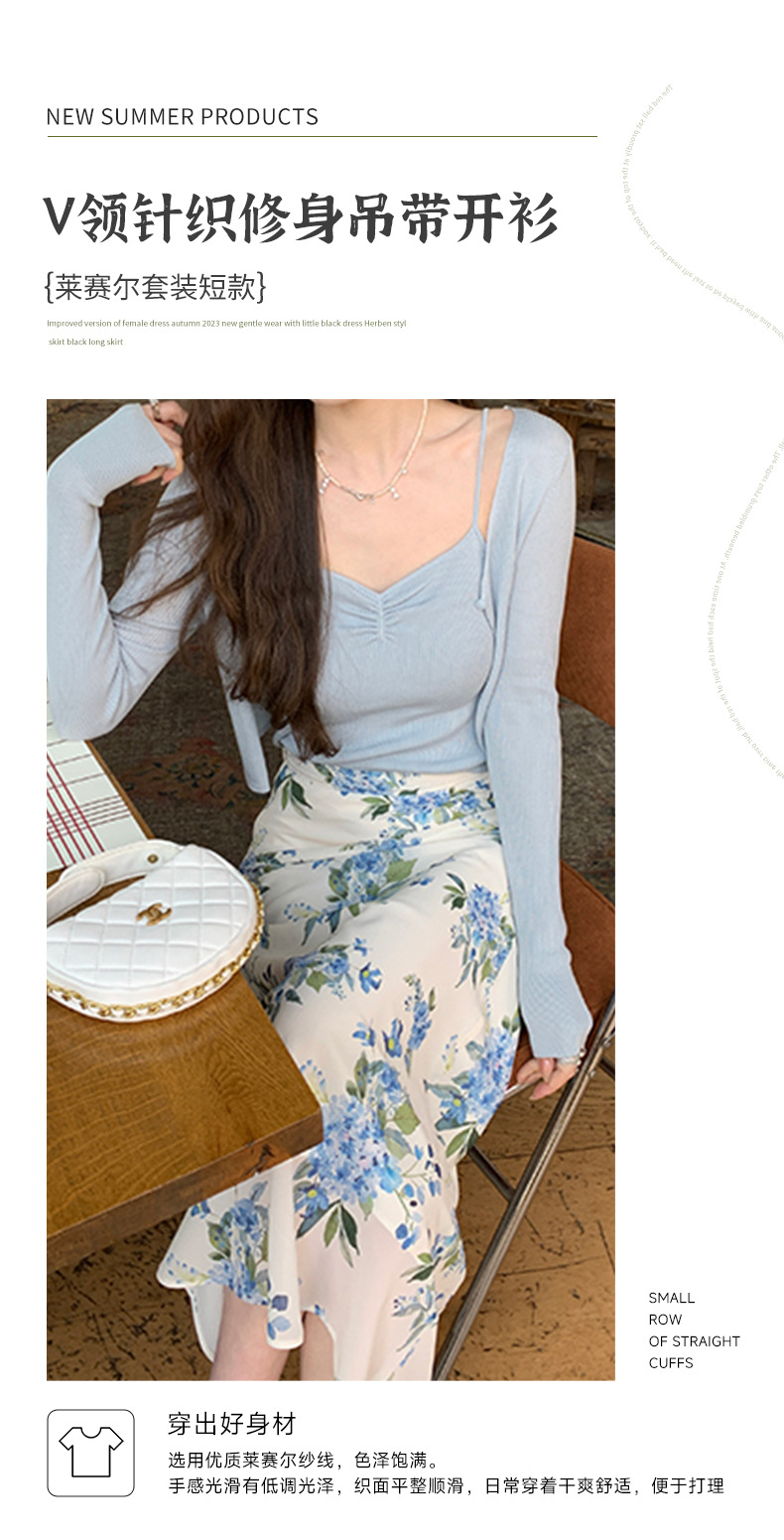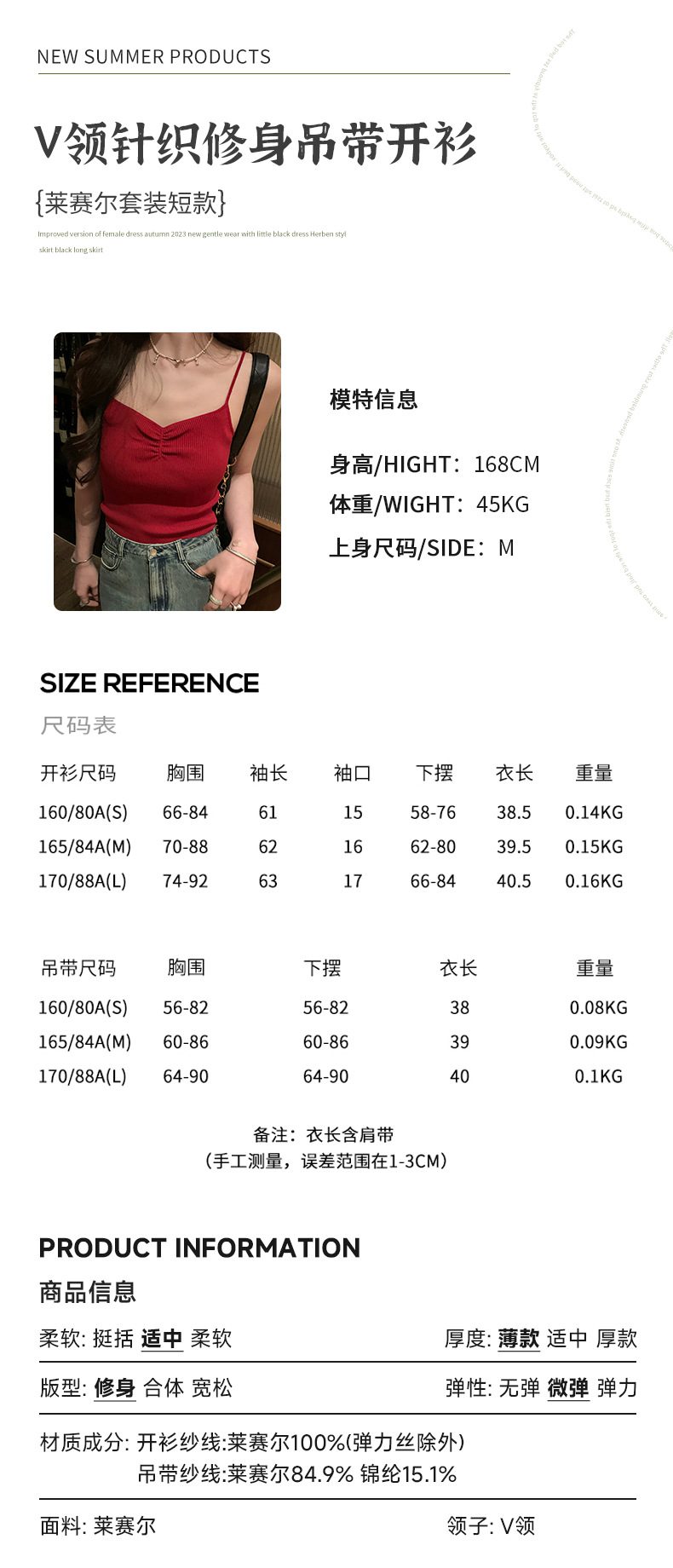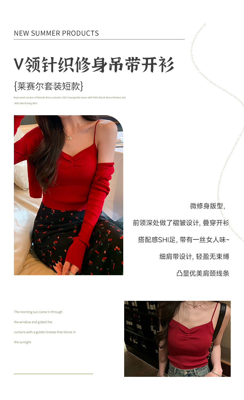 새로운 한국 스타일 부드러운 스타일 주름 내부 섹시한 캐미솔 짧은 v 넥 긴팔 카디건 재킷 니트 여성