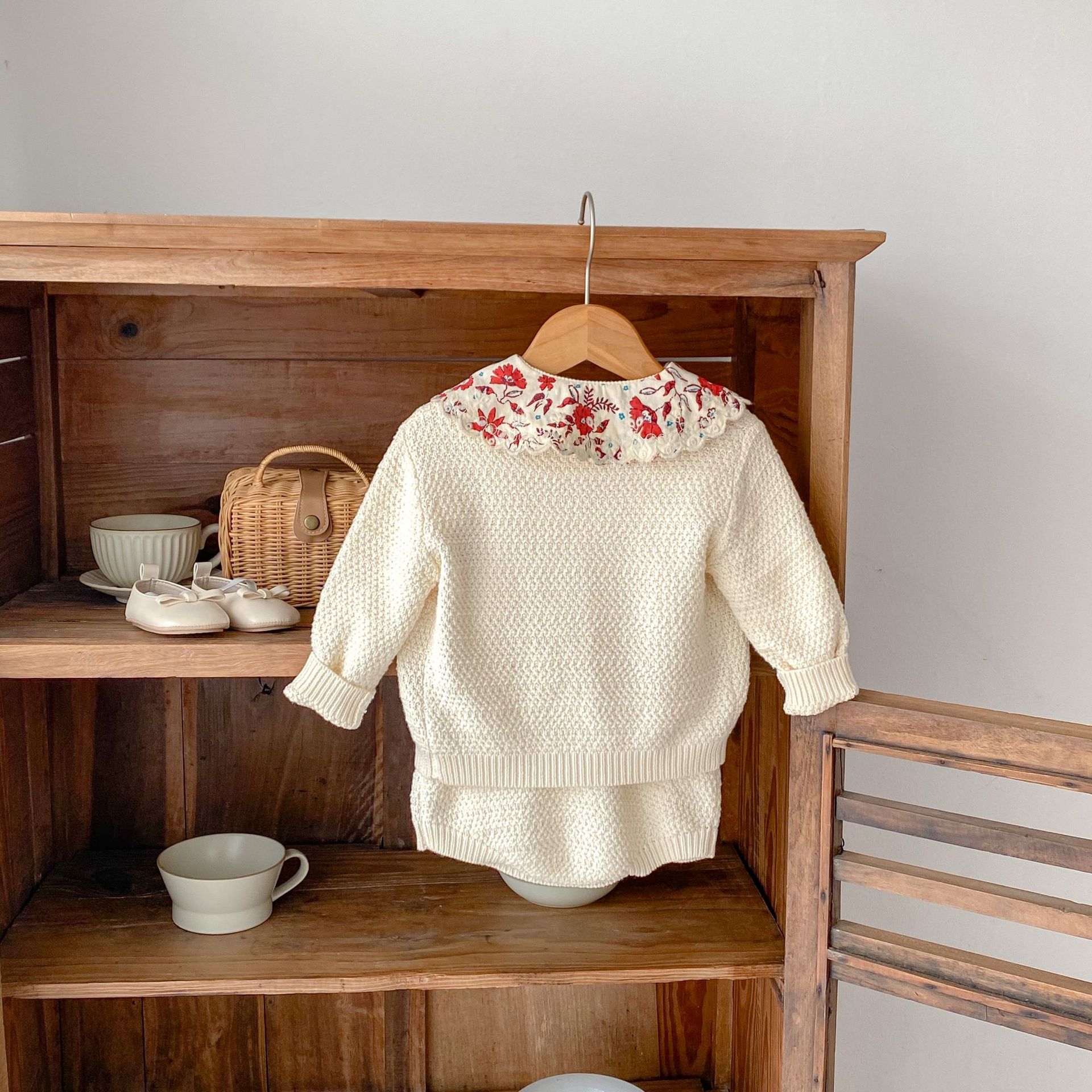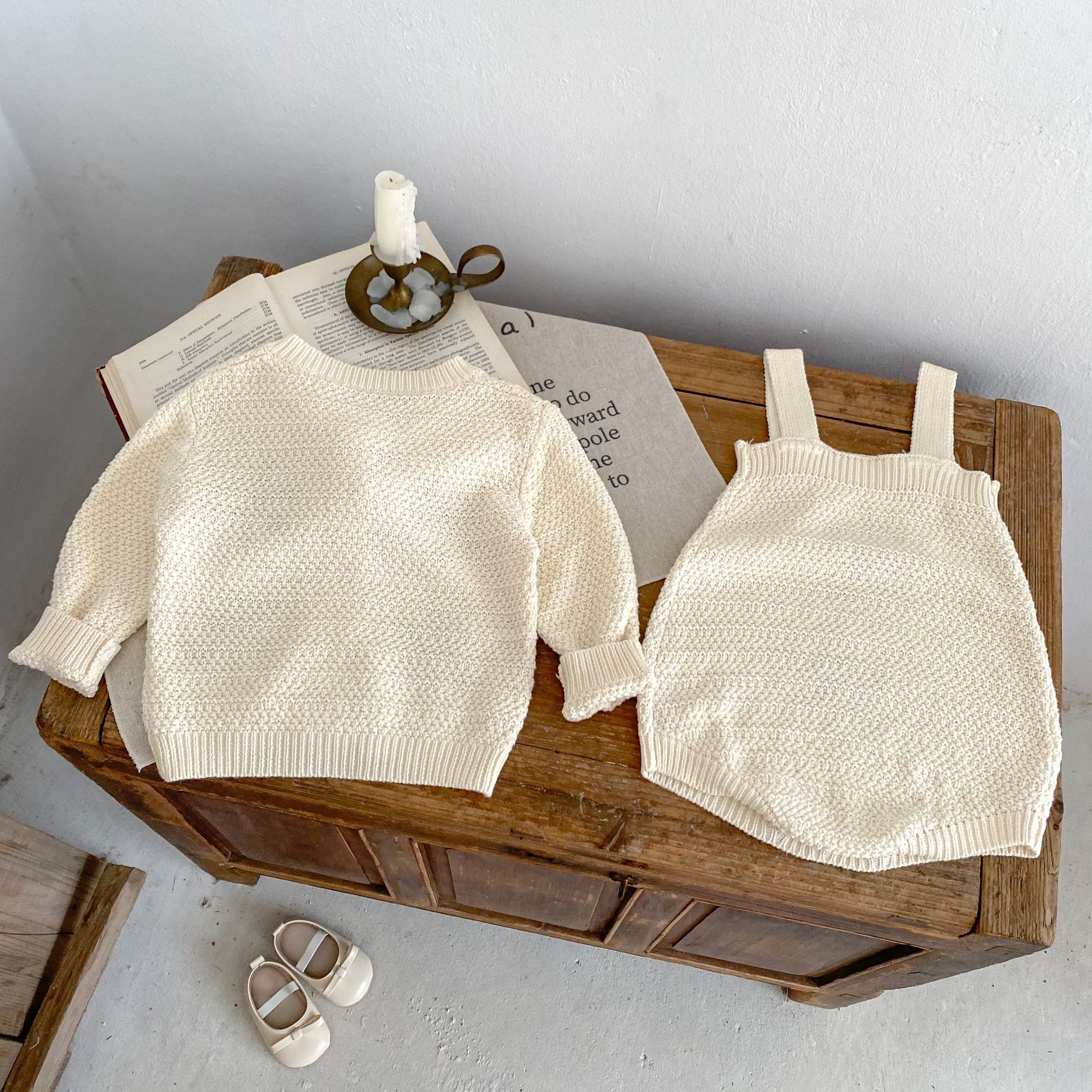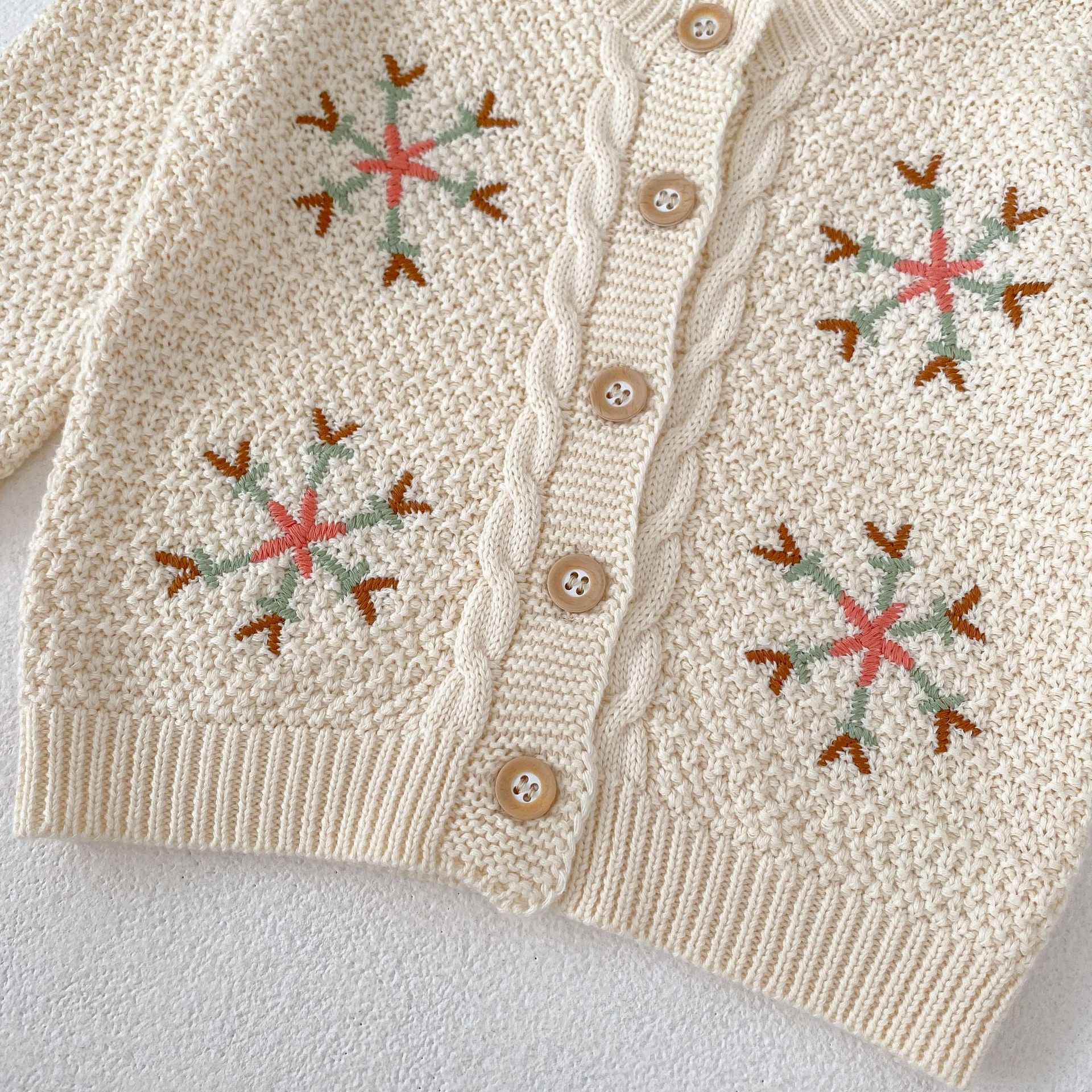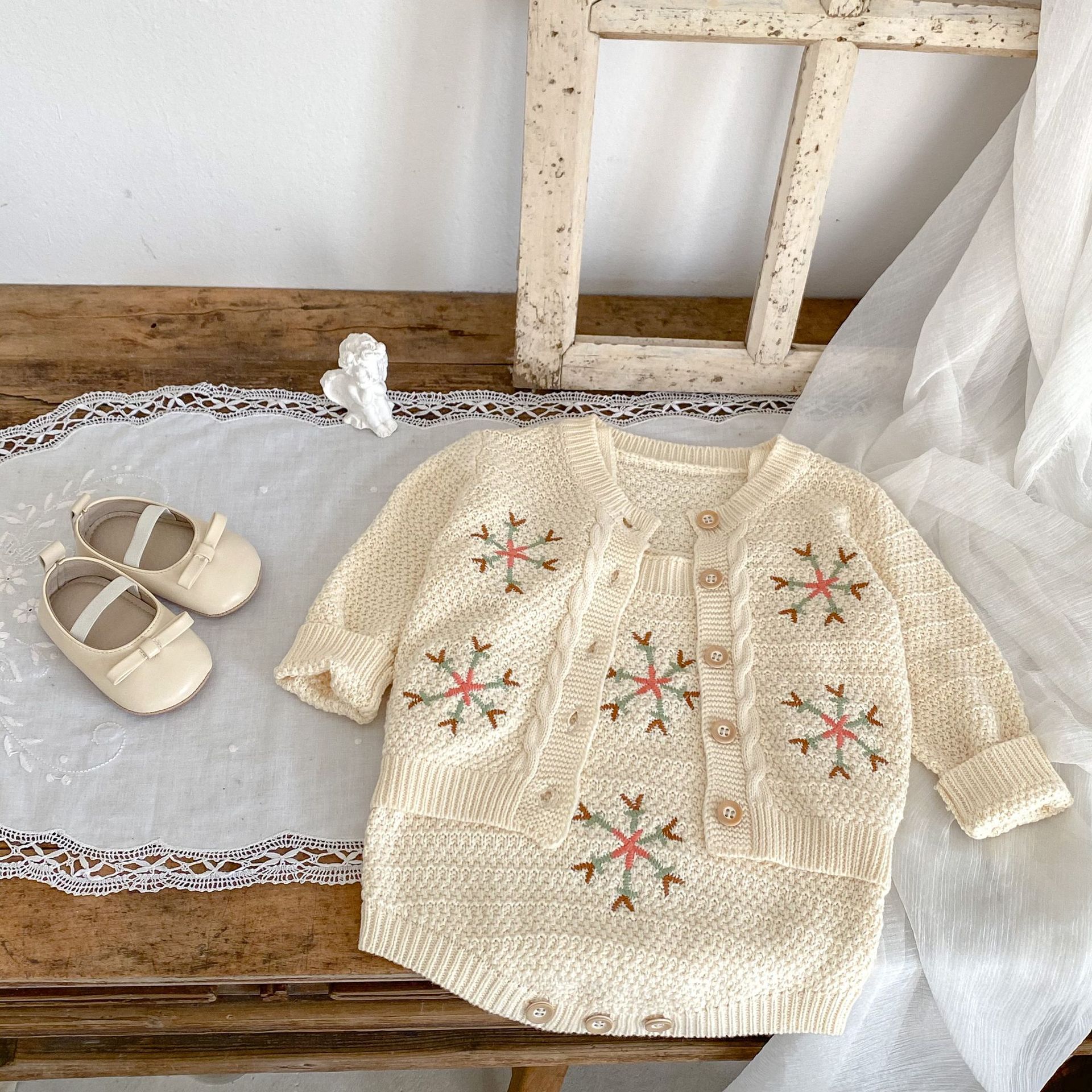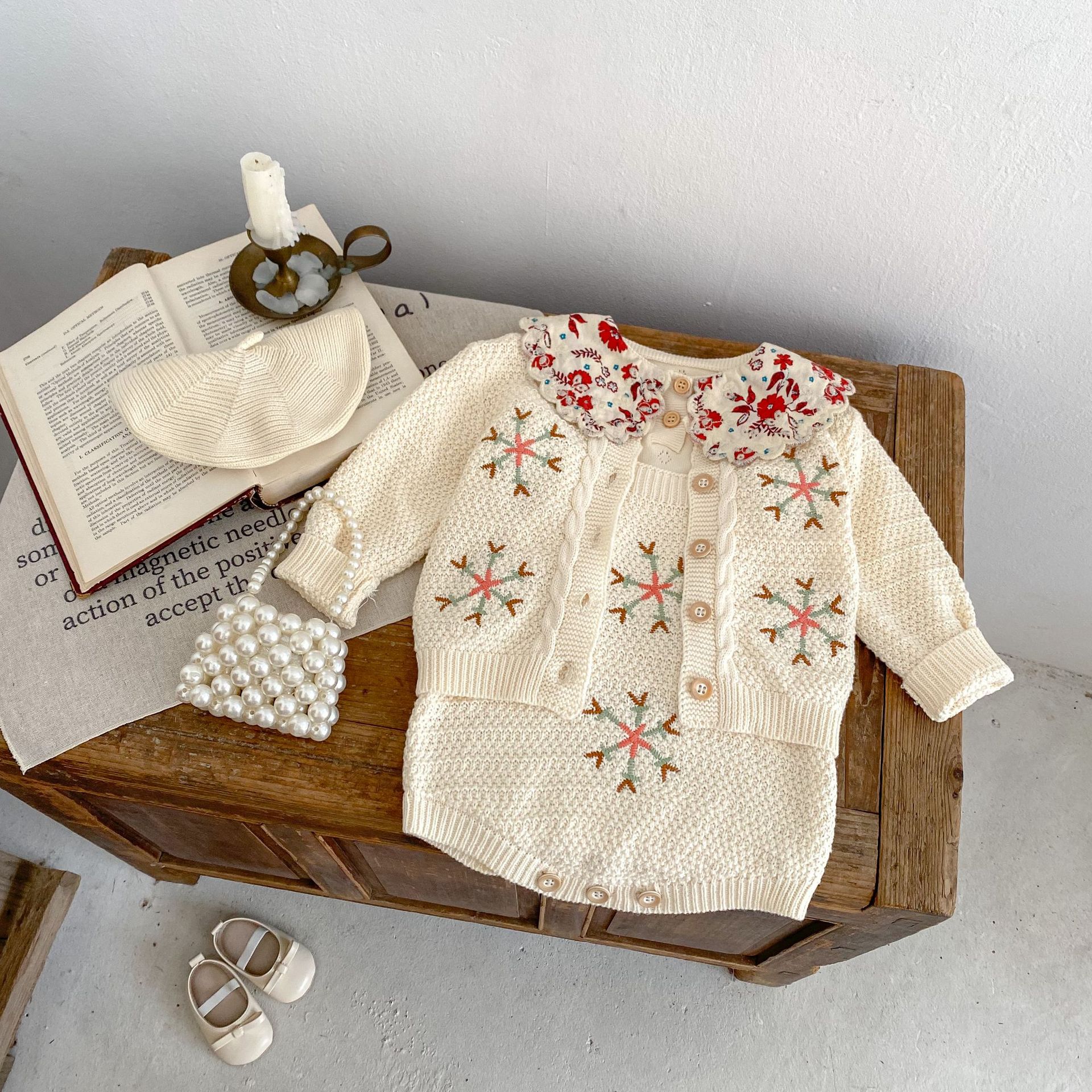 INS2025 가을 신상 남녀 아기용 컬러풀한 눈꽃 자수 니트 세트 긴팔 재킷+멜빵 바지스토어 가기