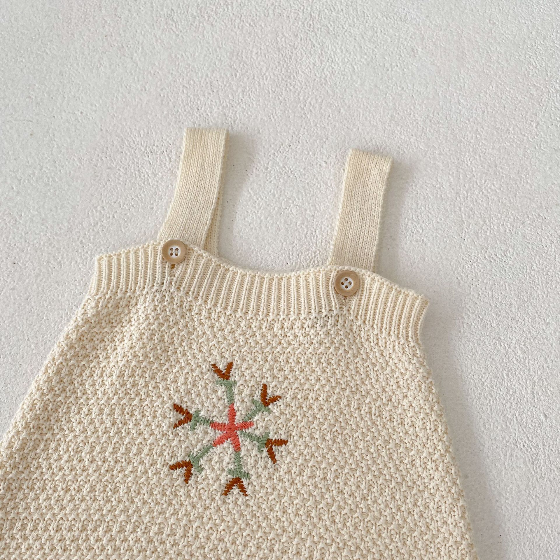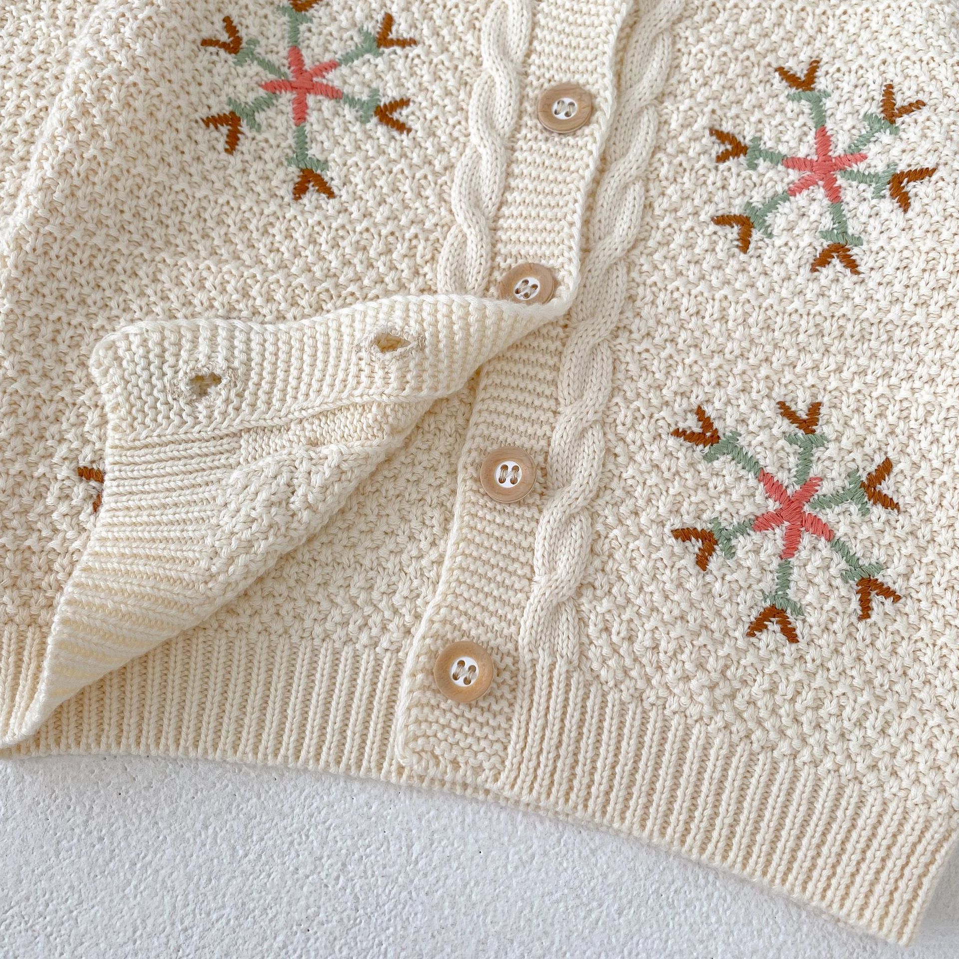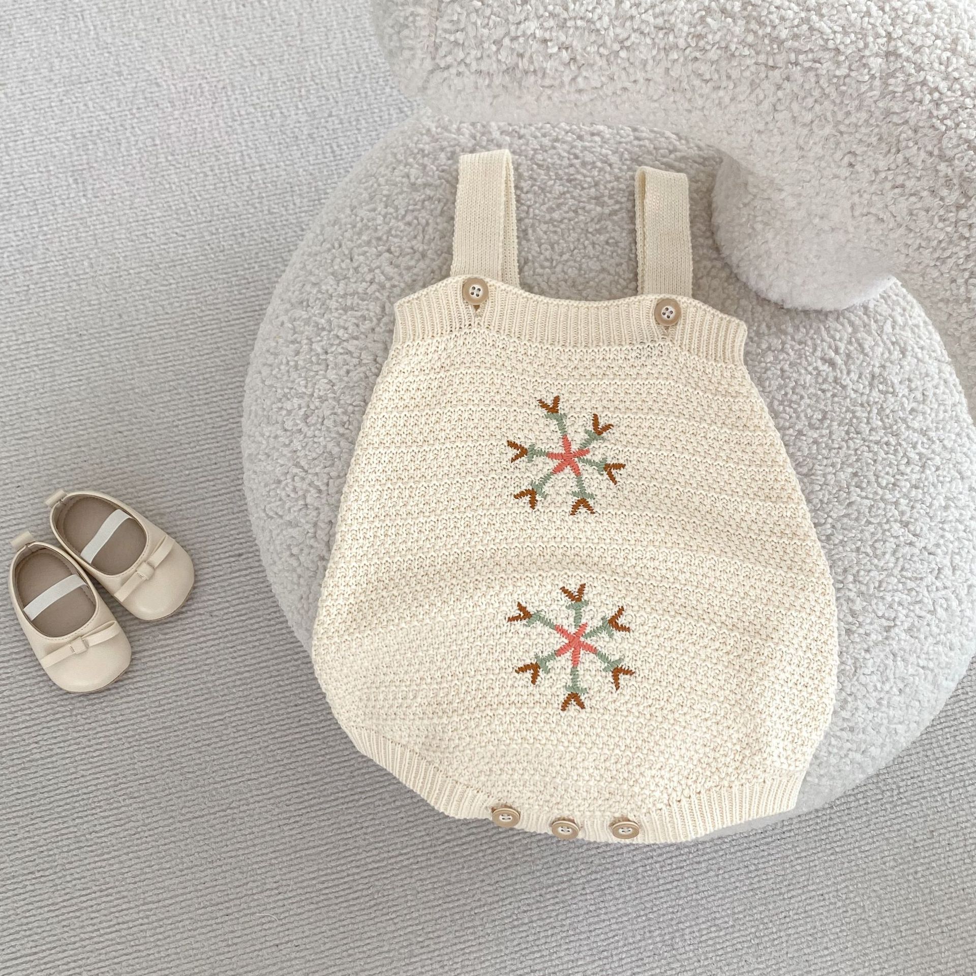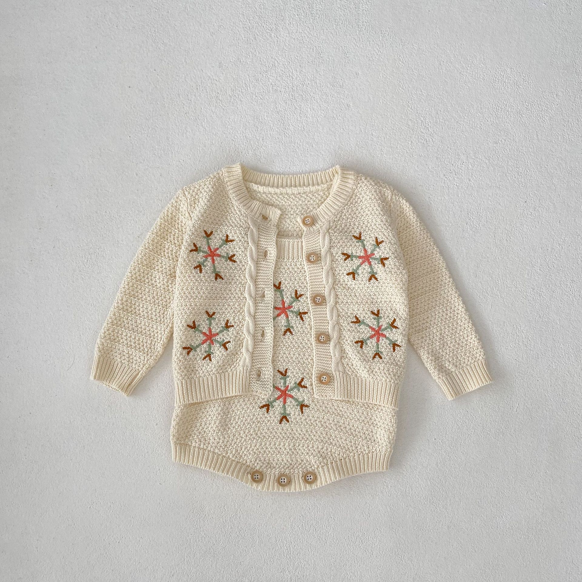 INS2025 가을 신상 남녀 아기용 컬러풀한 눈꽃 자수 니트 세트 긴팔 재킷+멜빵 바지