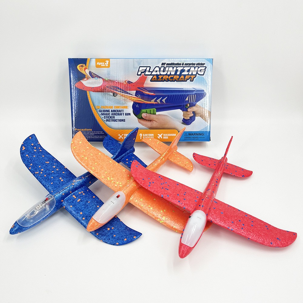 국경을 넘는 발사 비행기 어린이 실내외 스포츠 장난감 글라이딩 발사 비행기 반짝이 폼 도매