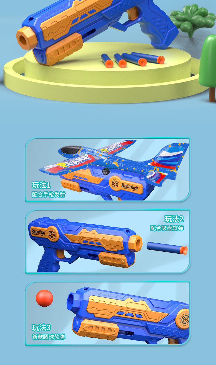 새로운 배출 부드러운 둥근 총알 항공기 거품 손을 던지는 항공기 부드러운 총알 총 야외 야외 어린이 장난감 공급 도매