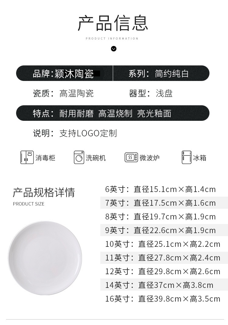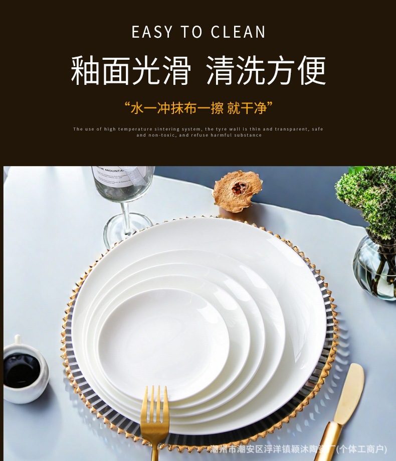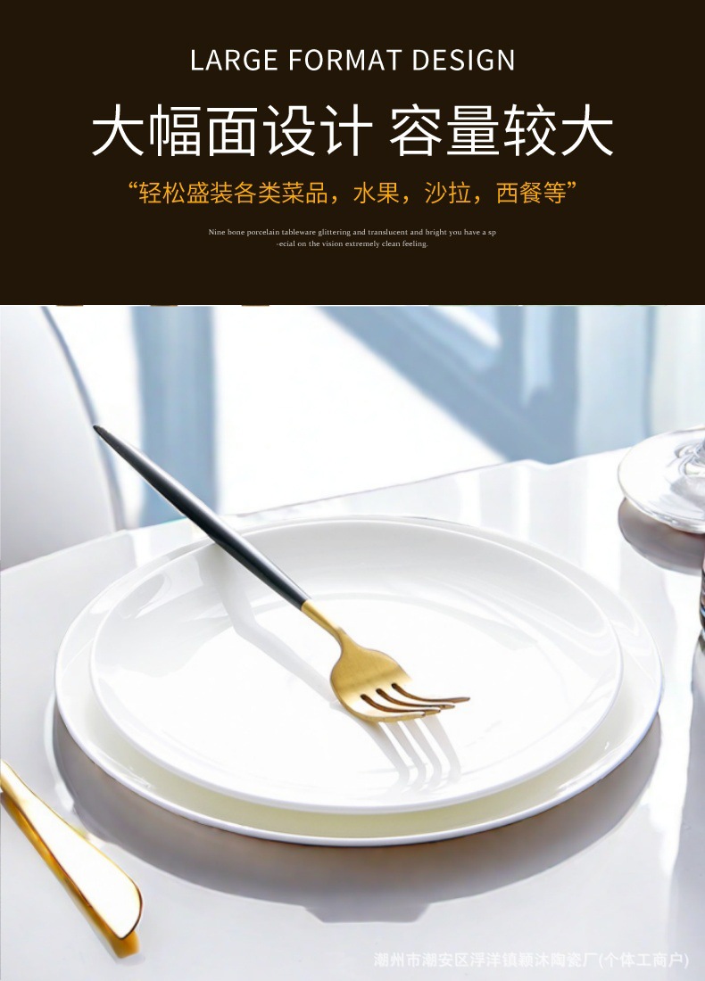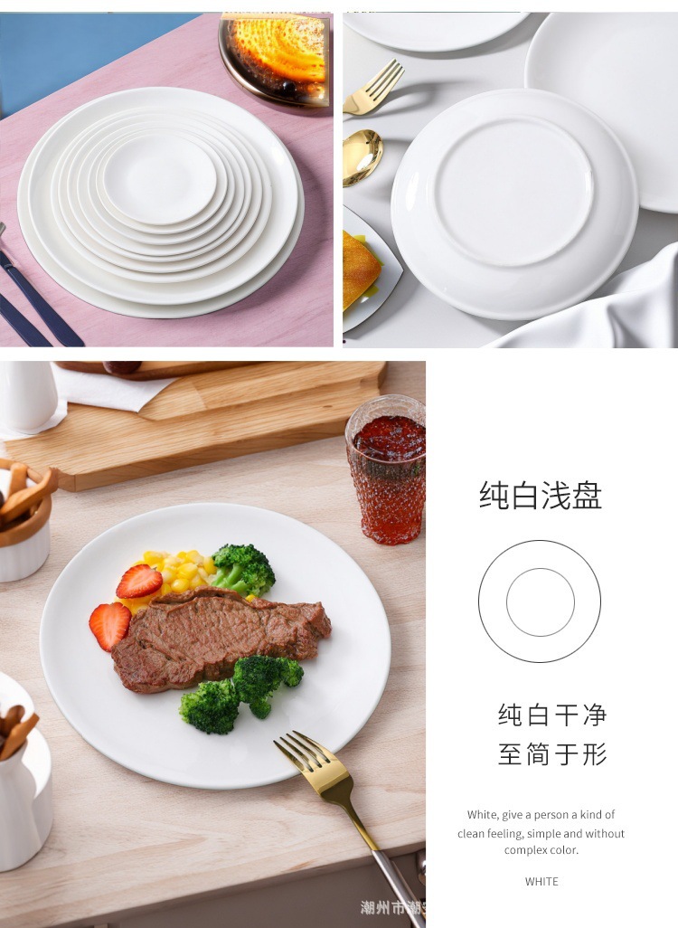 둥근 서양식 스테이크 접시 호텔 상업용 레스토랑 호텔 본차이나 세라믹 원형 접시 본 접시 전자 레인지 절묘한스토어 가기