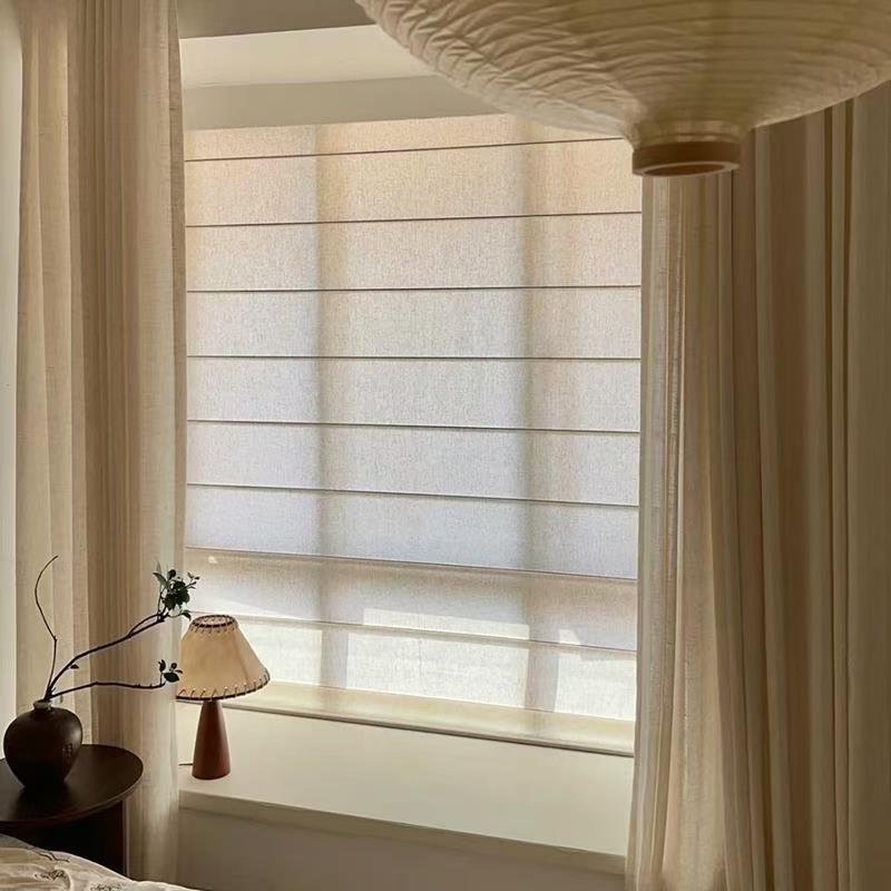 중국 반투명 아마사 롤업 로마 커튼 거실 침실 연구 어린이 방 롤업 재고