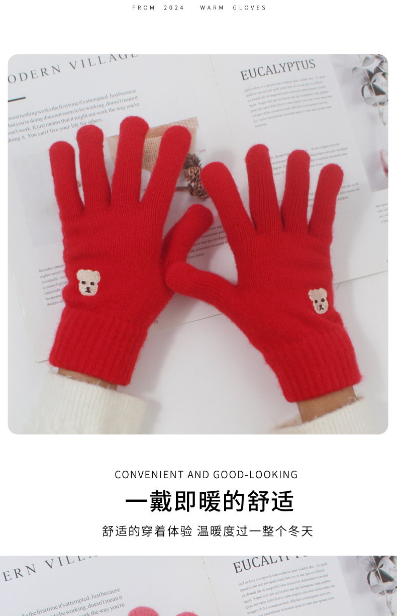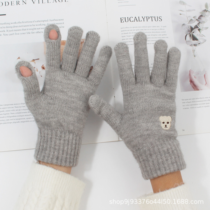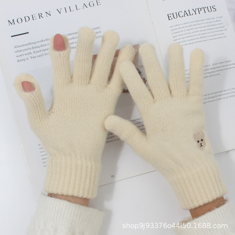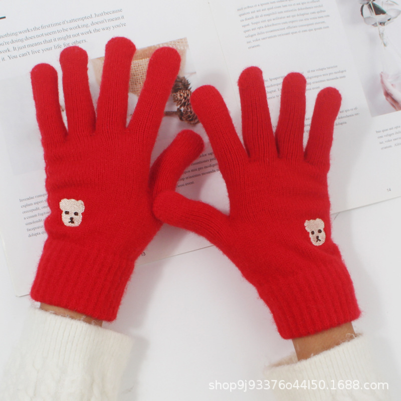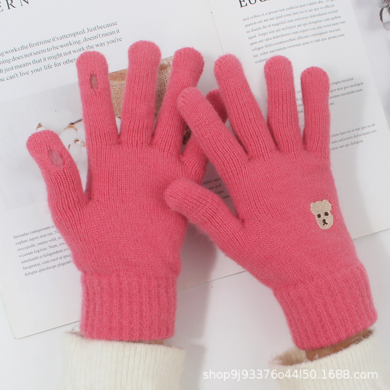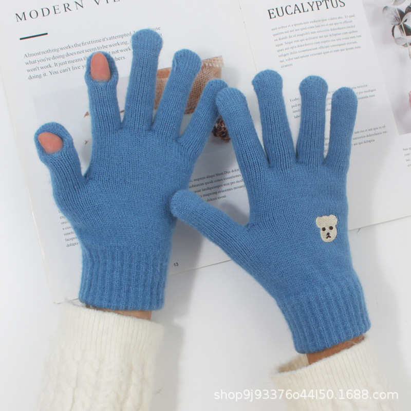 가을과 겨울 따뜻한 장갑 여성의 두꺼운 칫솔질 간단한 패션 냉장 야외 승마 니트 남성 커플 자수스토어 가기