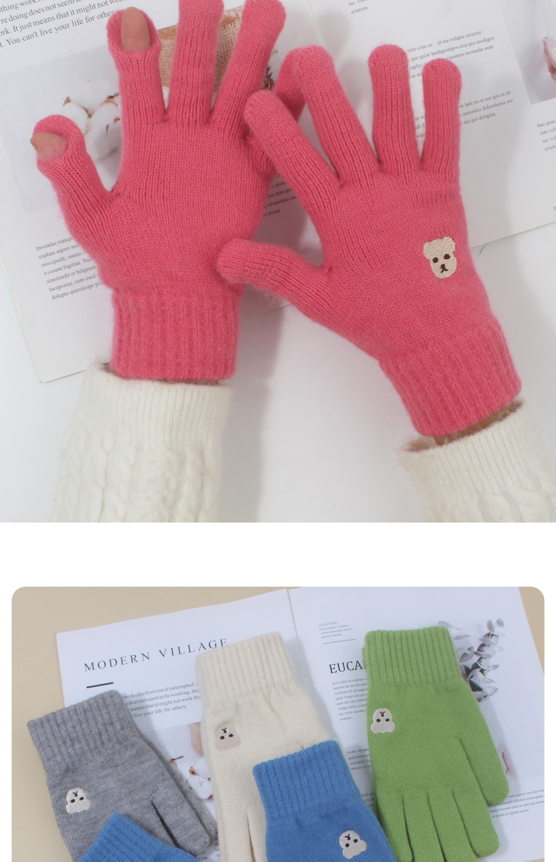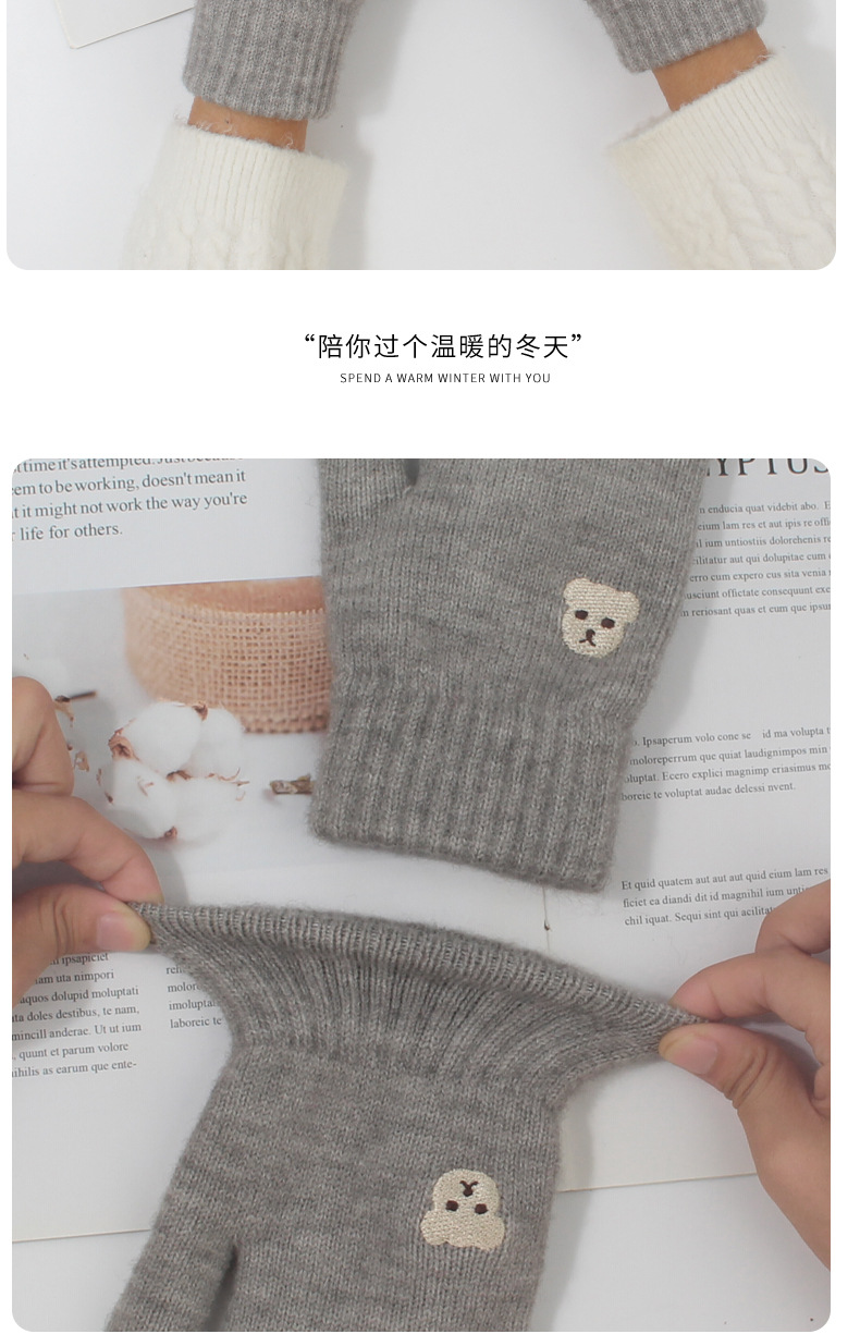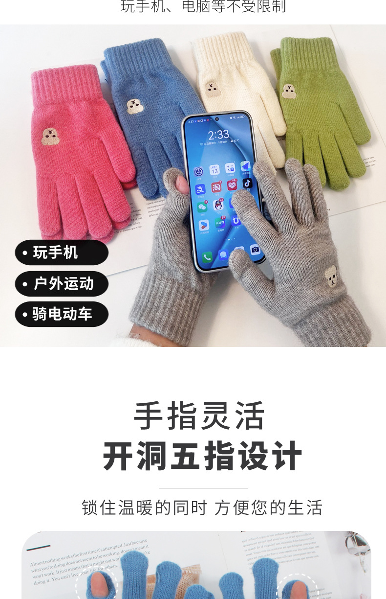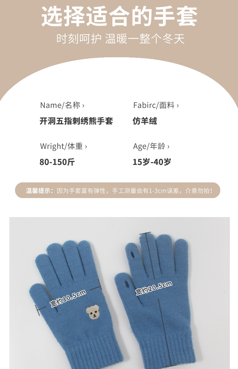 가을과 겨울 따뜻한 장갑 여성의 두꺼운 칫솔질 간단한 패션 냉장 야외 승마 니트 남성 커플 자수스토어 가기
